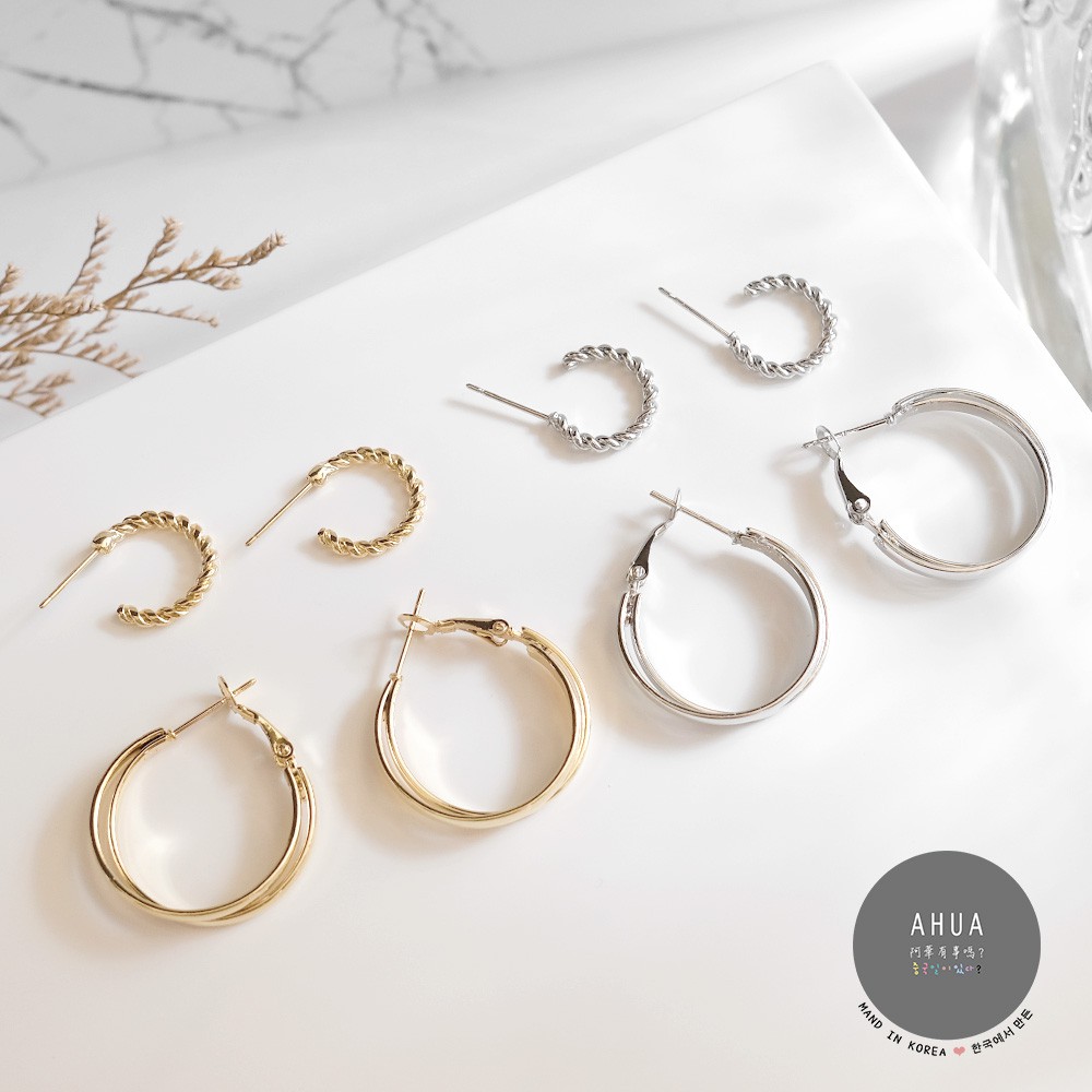 阿華有事嗎AHUA 韓國飾品 麻花捲圈圈耳環四入組 A0151 Ins風 氣質百搭 韓系耳環 韓妞必備耳環
