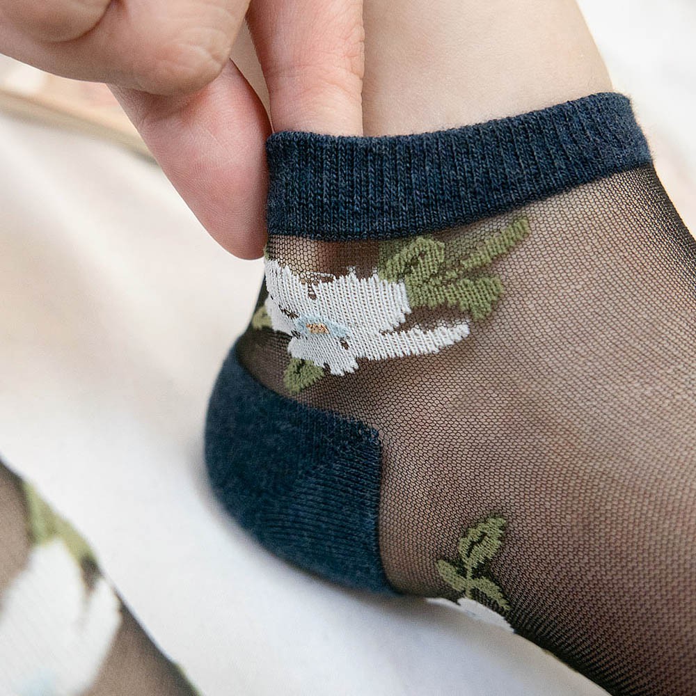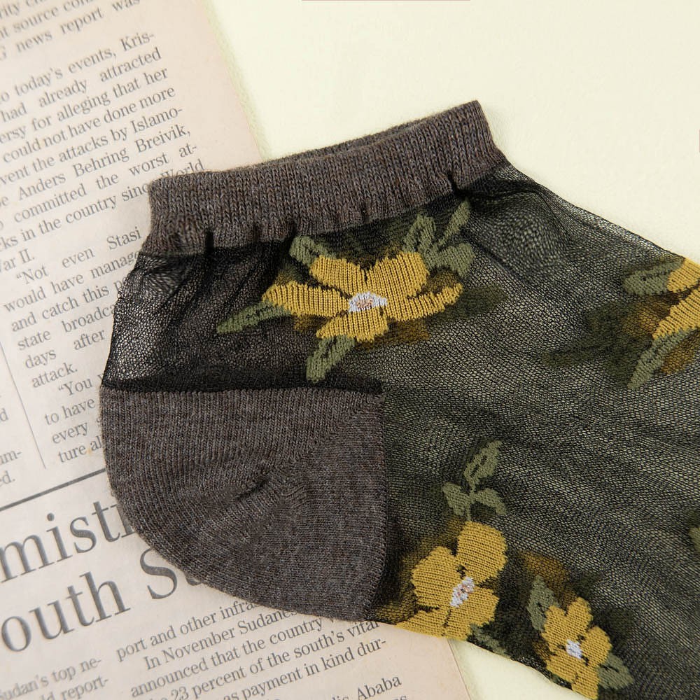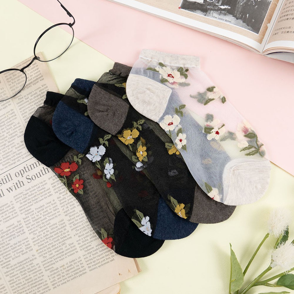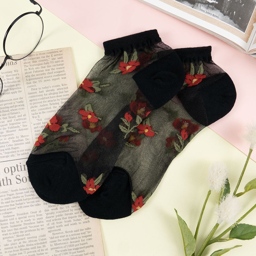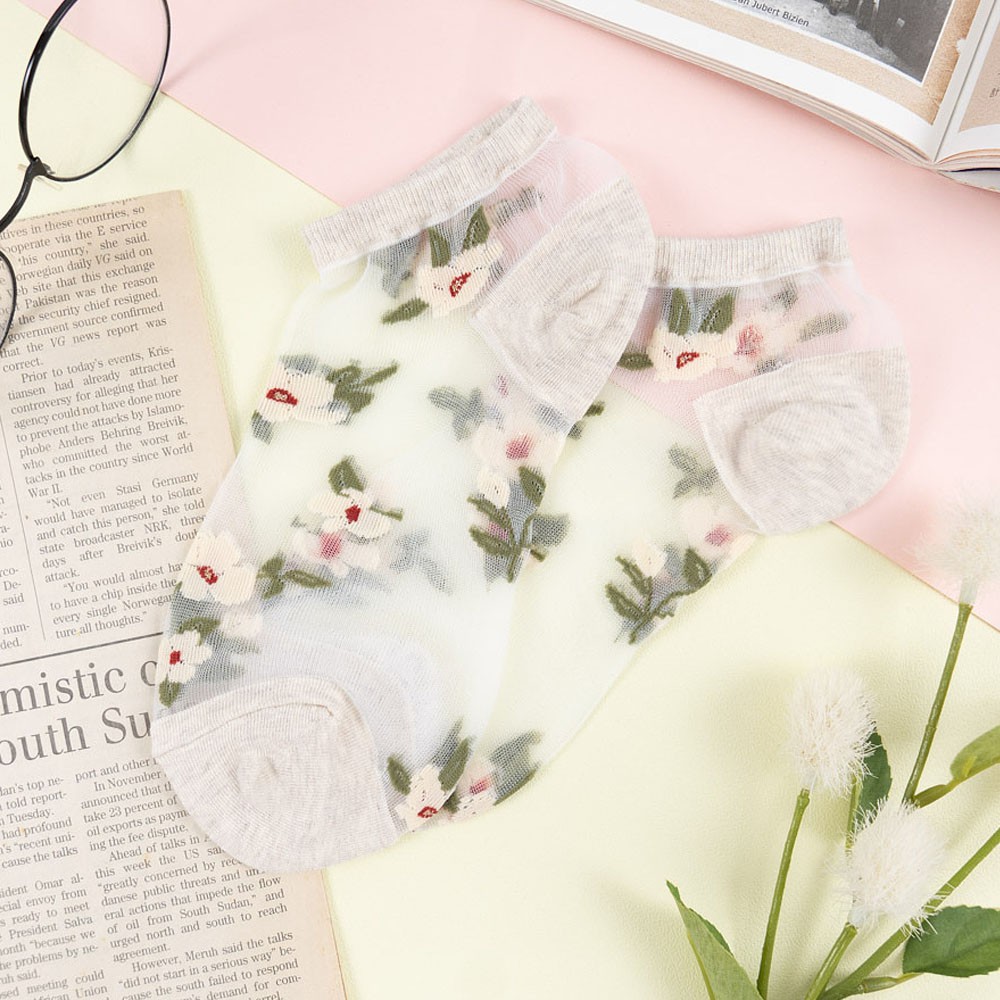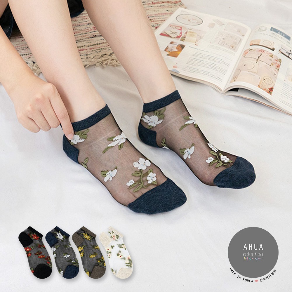 阿華有事嗎AUHA 韓國襪子 透膚滿版花朵氣質短襪【K1178】 少女襪 韓妞必備長襪 百搭純棉襪