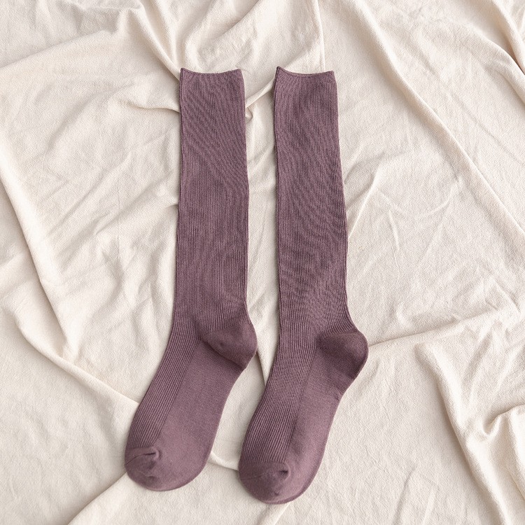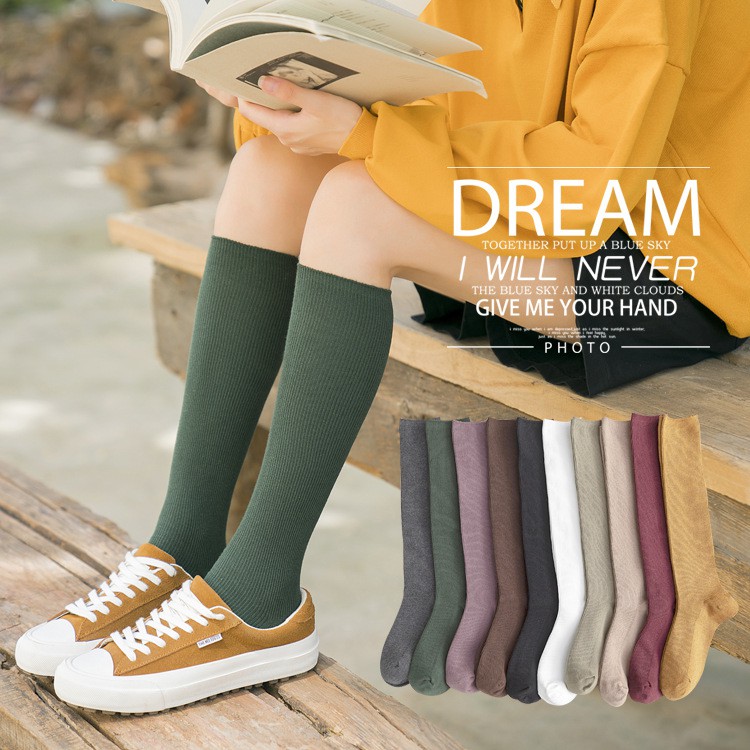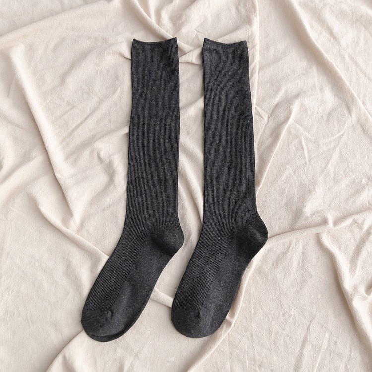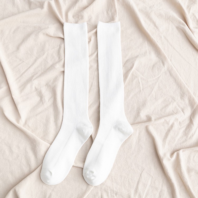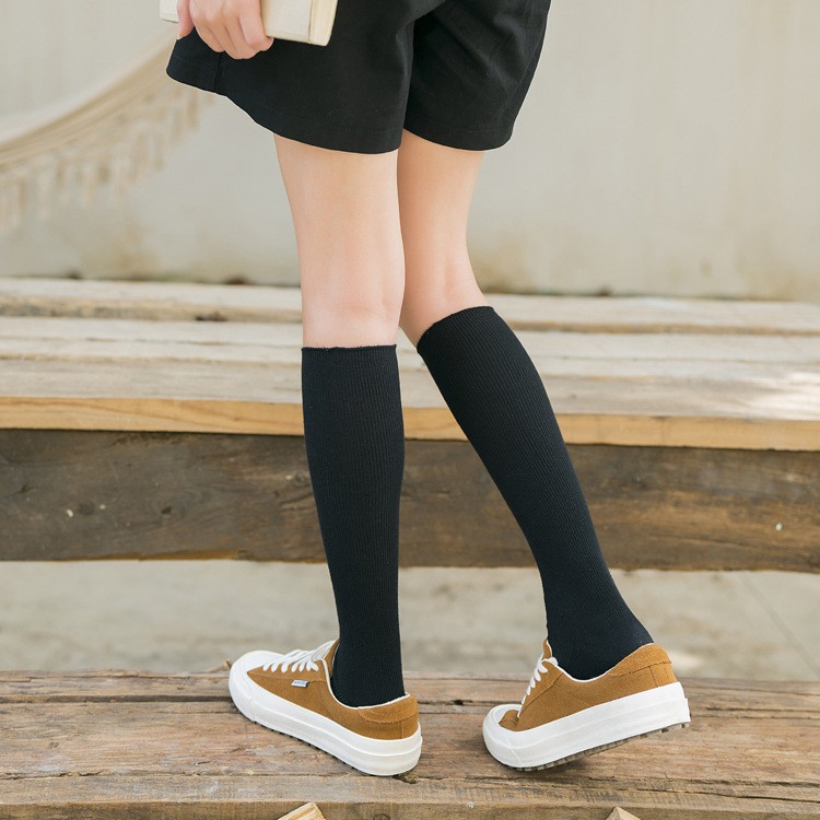 AHUA 日系襪子 純色百搭條紋膝下襪 S0331 長筒襪 女襪 女生襪子 學生襪 及膝襪 襪子推薦 阿華有事嗎