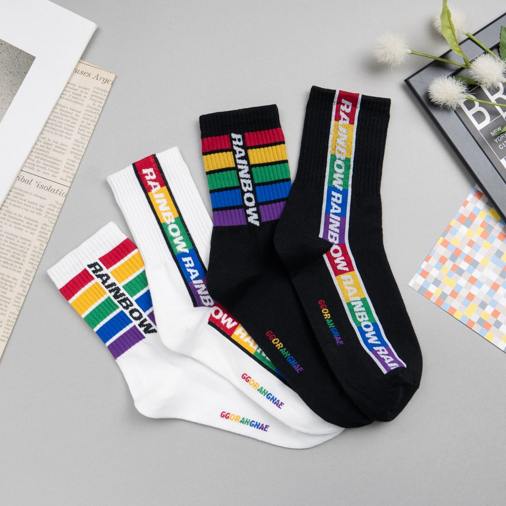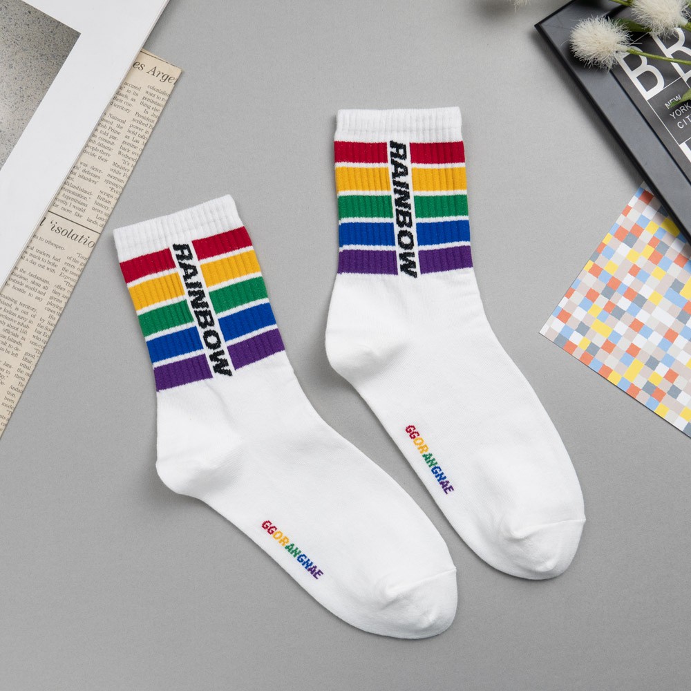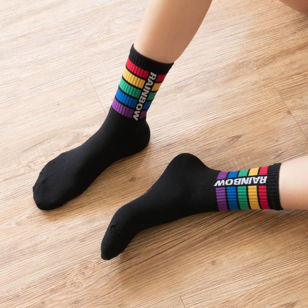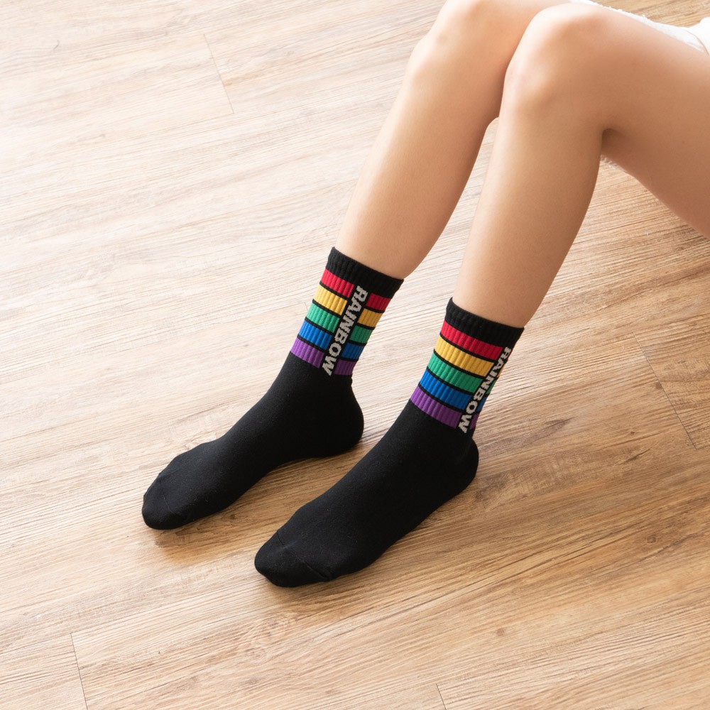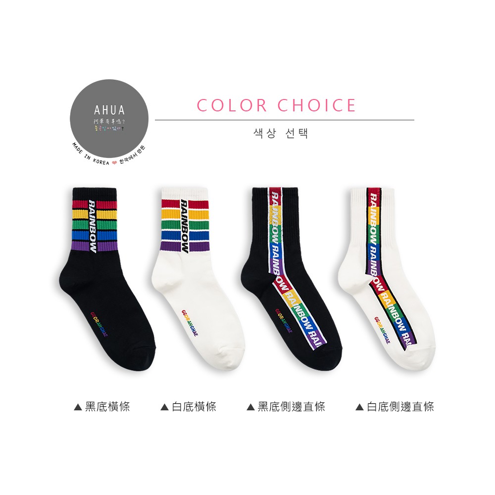 AHUA阿華有事嗎 韓國襪子 RAINBOW彩虹條紋中筒襪 K0848 正韓少女襪 韓妞必備長襪 百搭純棉襪 素色襪子