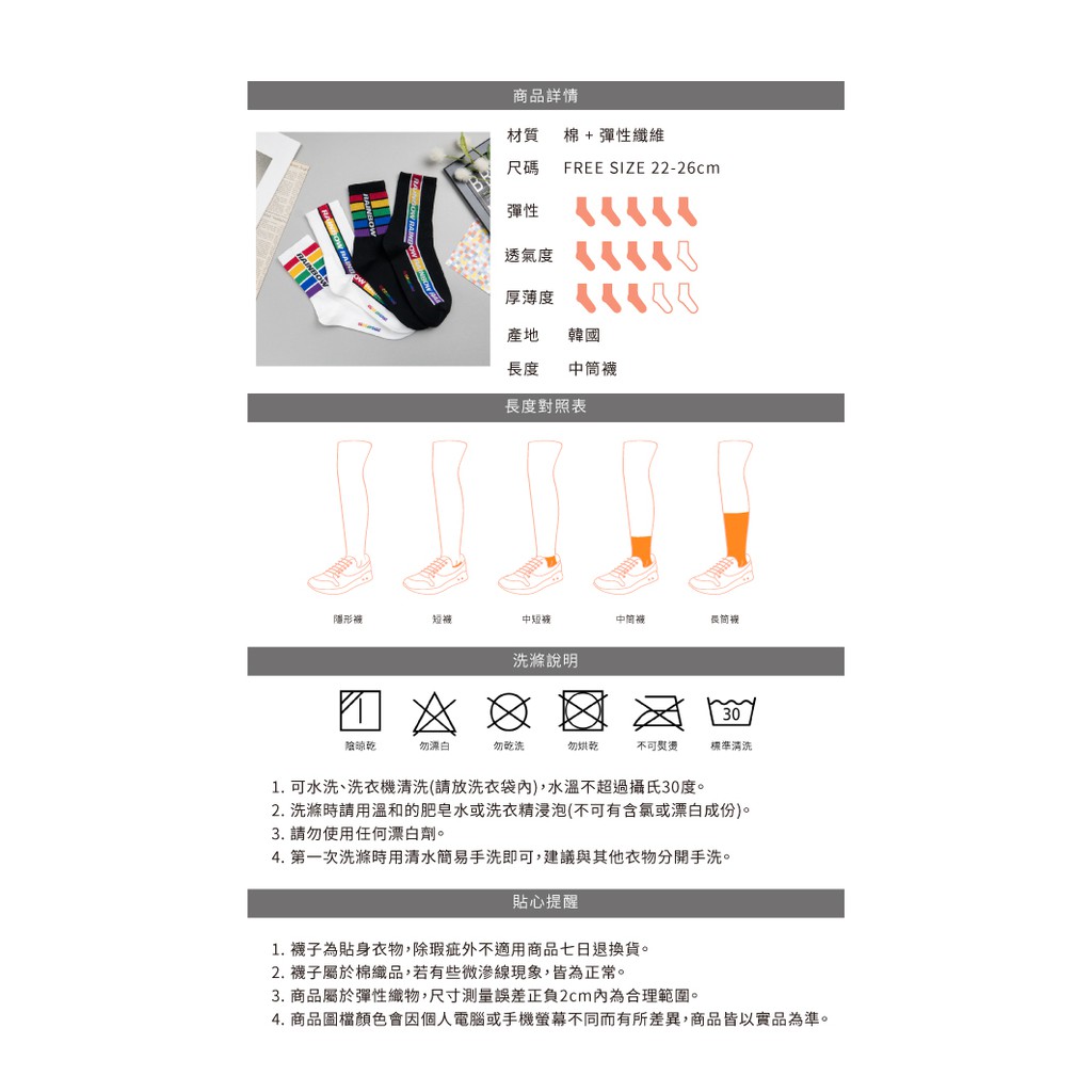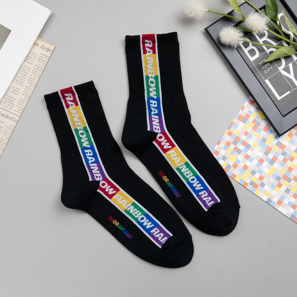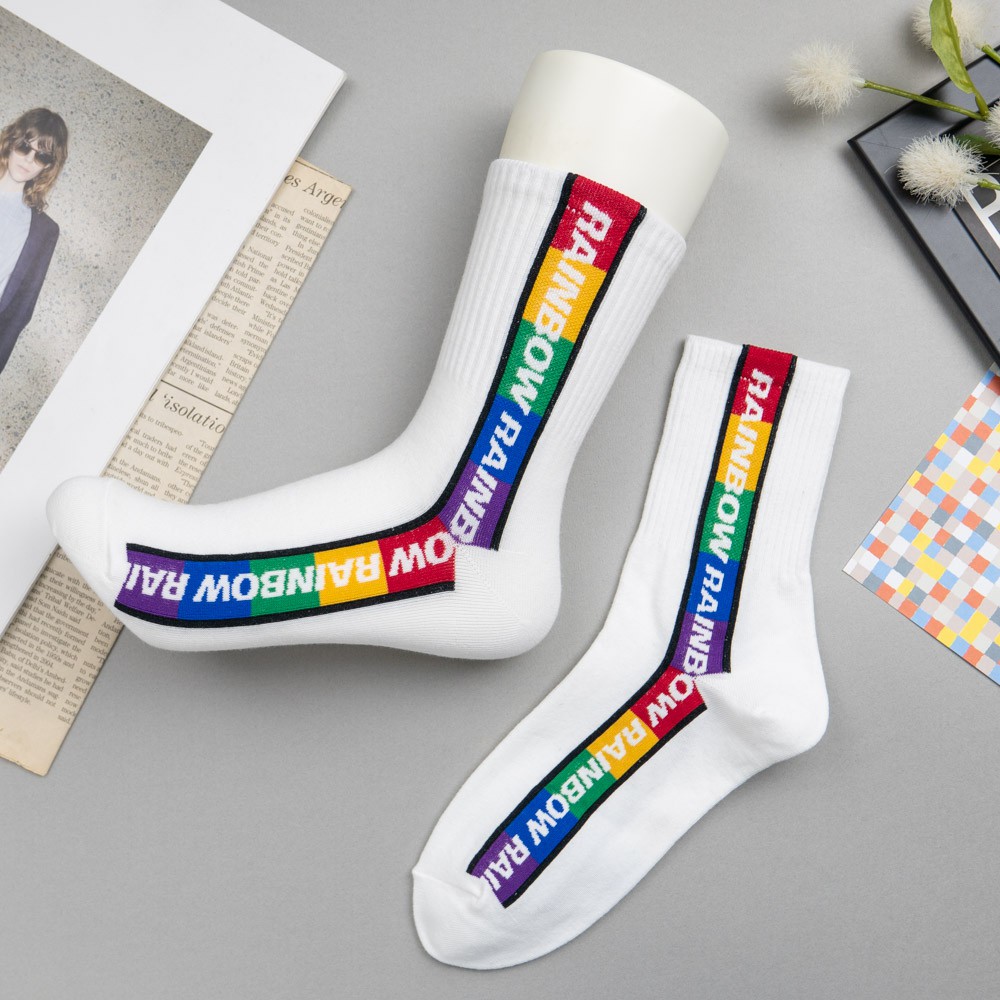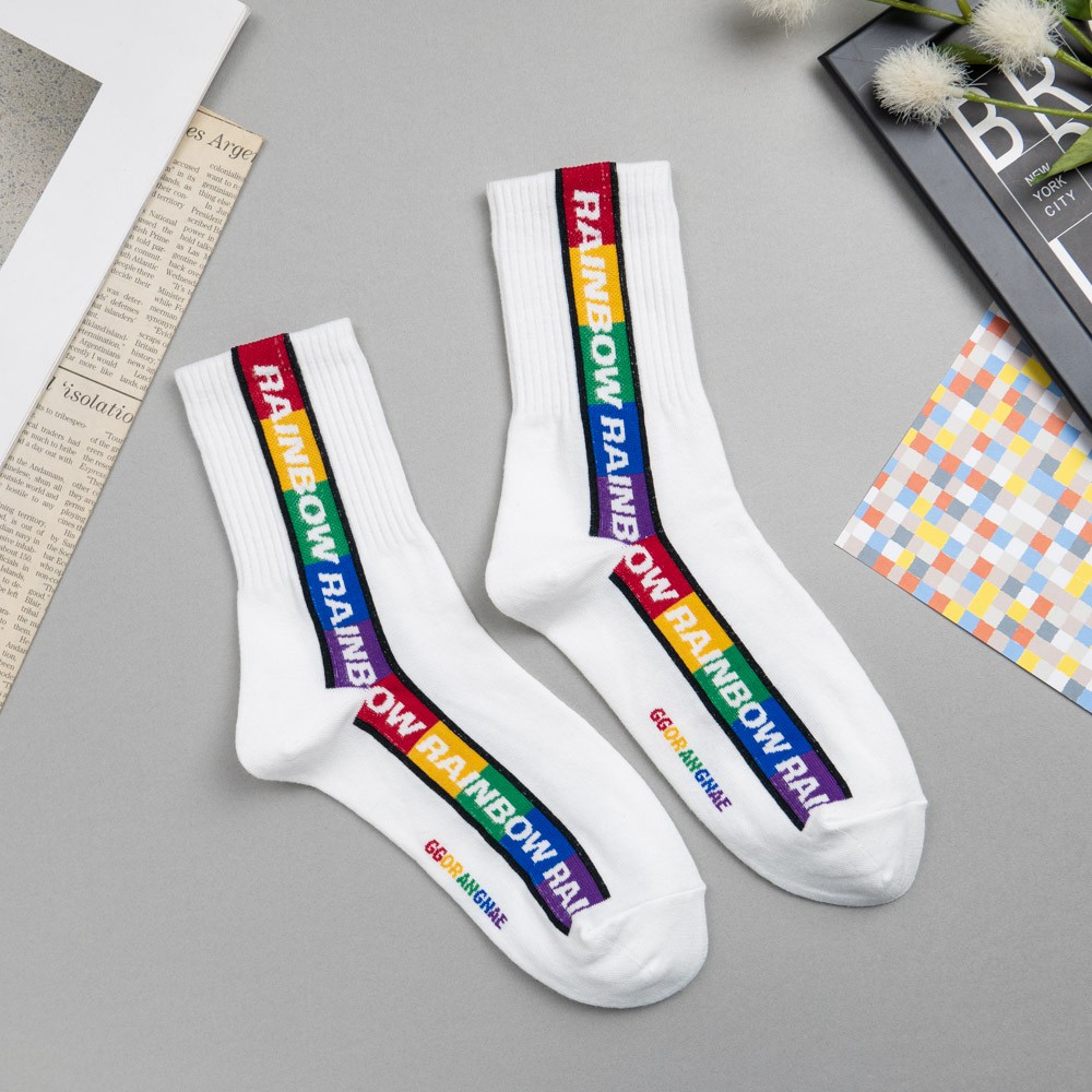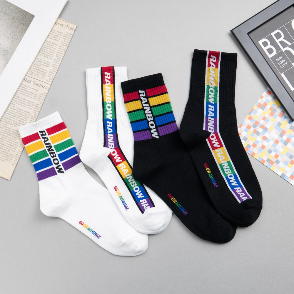 AHUA阿華有事嗎 韓國襪子 RAINBOW彩虹條紋中筒襪 K0848 正韓少女襪 韓妞必備長襪 百搭純棉襪 素色襪子