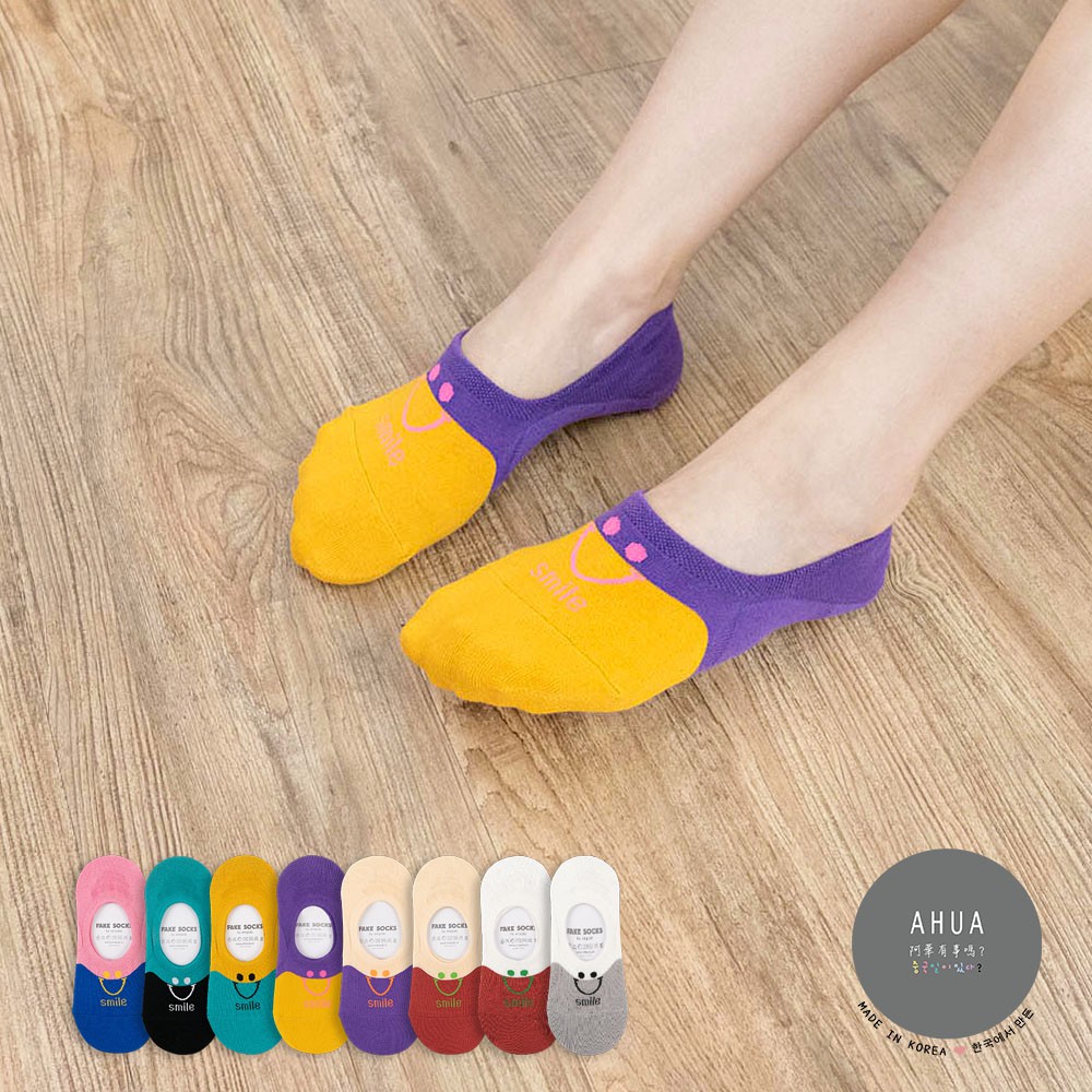 阿華有事嗎AUHA 韓國襪子 拼接撞色smile微笑隱形襪 K1055 少女襪 韓妞必備長襪 百搭純棉襪