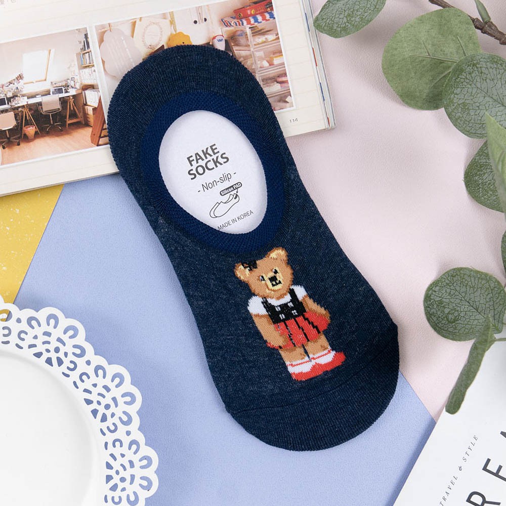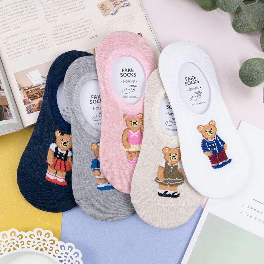 阿華有事嗎AUHA 韓國襪子 全身穿衣泰迪熊熊隱形襪【K1120】 少女襪 韓妞必備長襪 百搭純棉襪