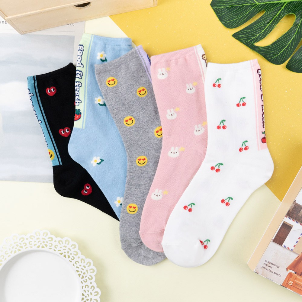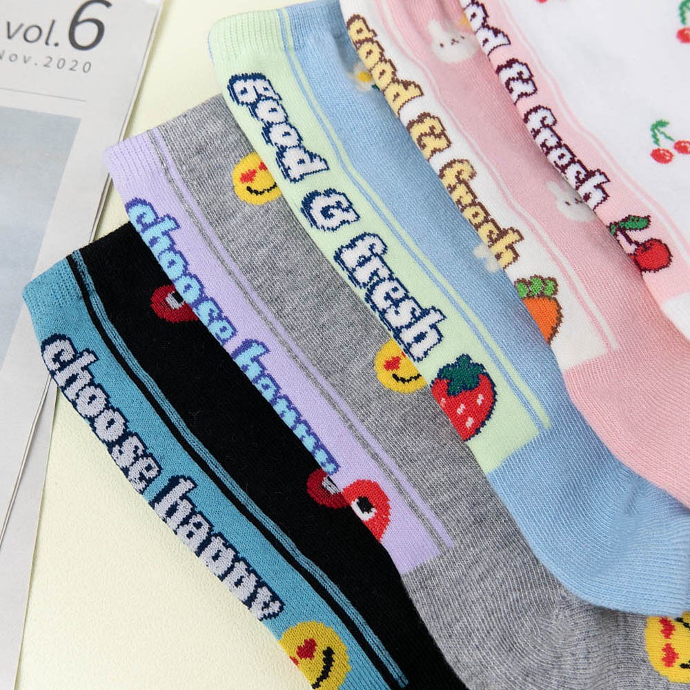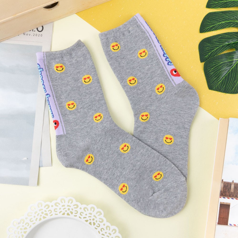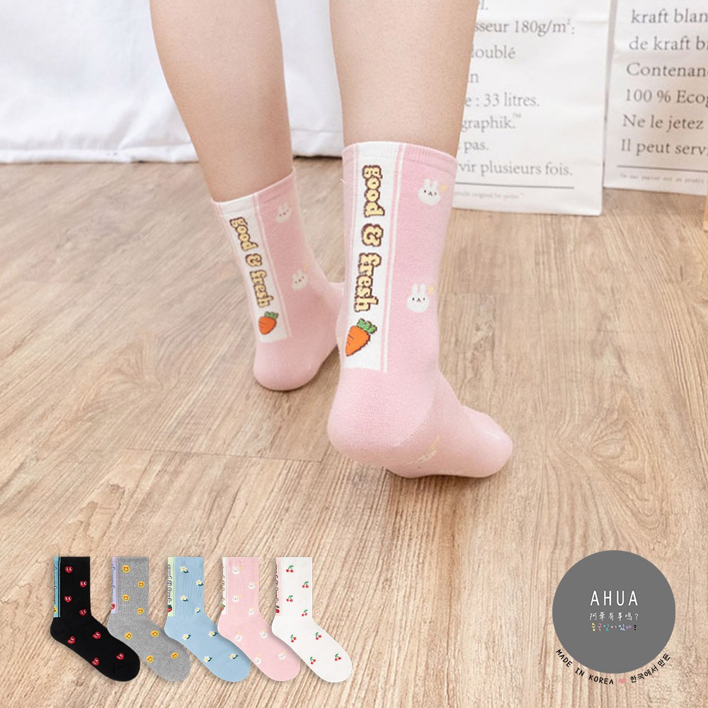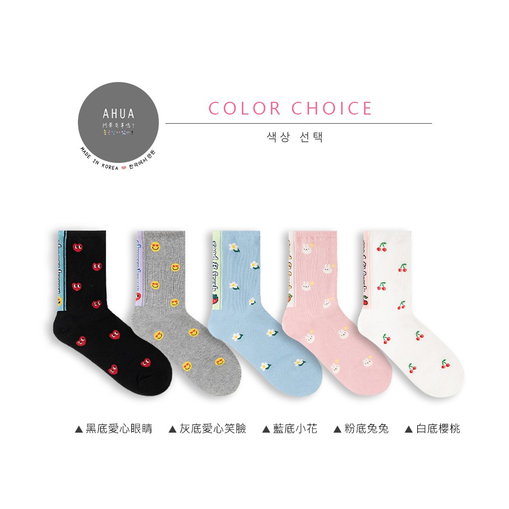 阿華有事嗎AUHA 韓國襪子 後腳跟英文滿版小圖中筒襪 K1051 少女襪 韓妞必備長襪 百搭純棉襪