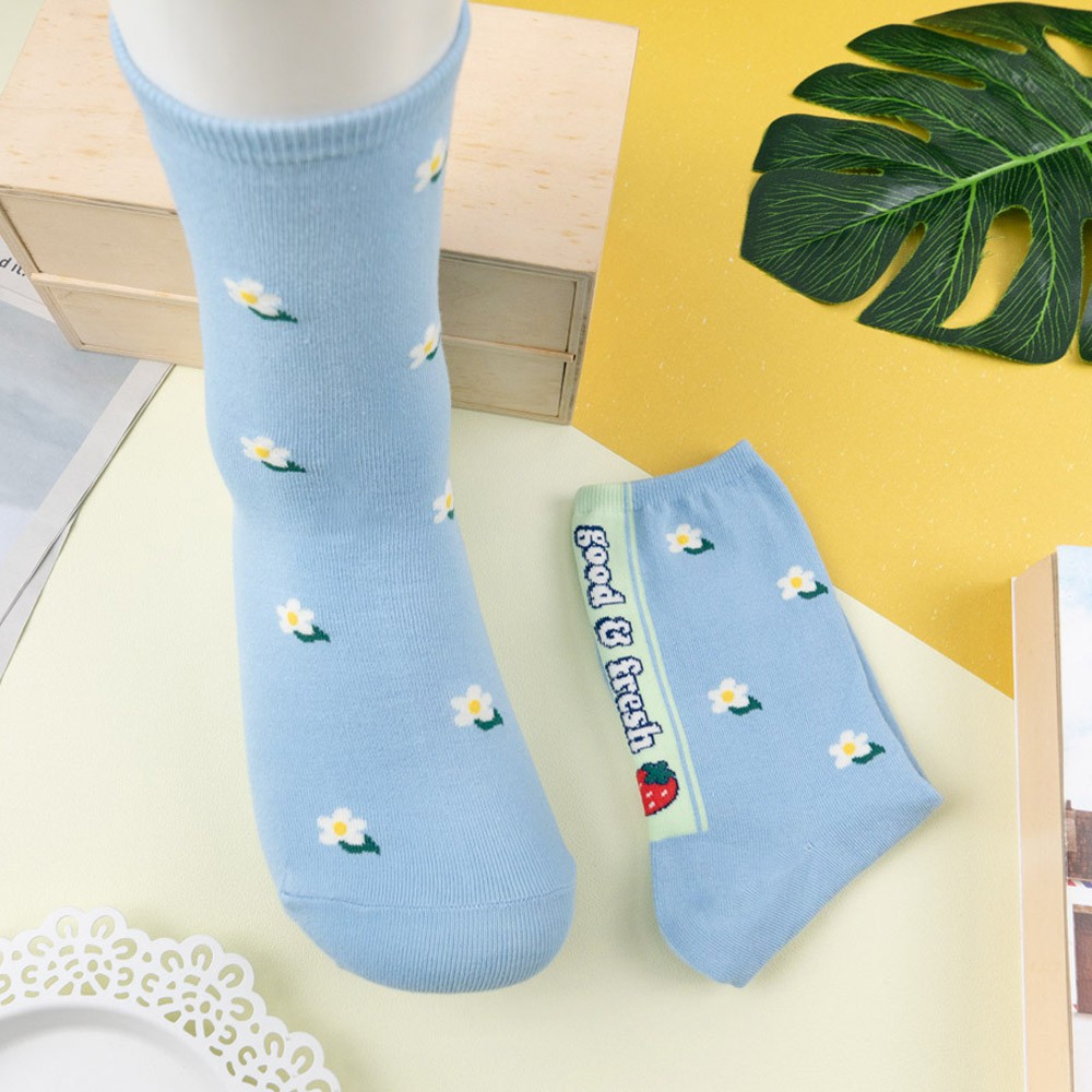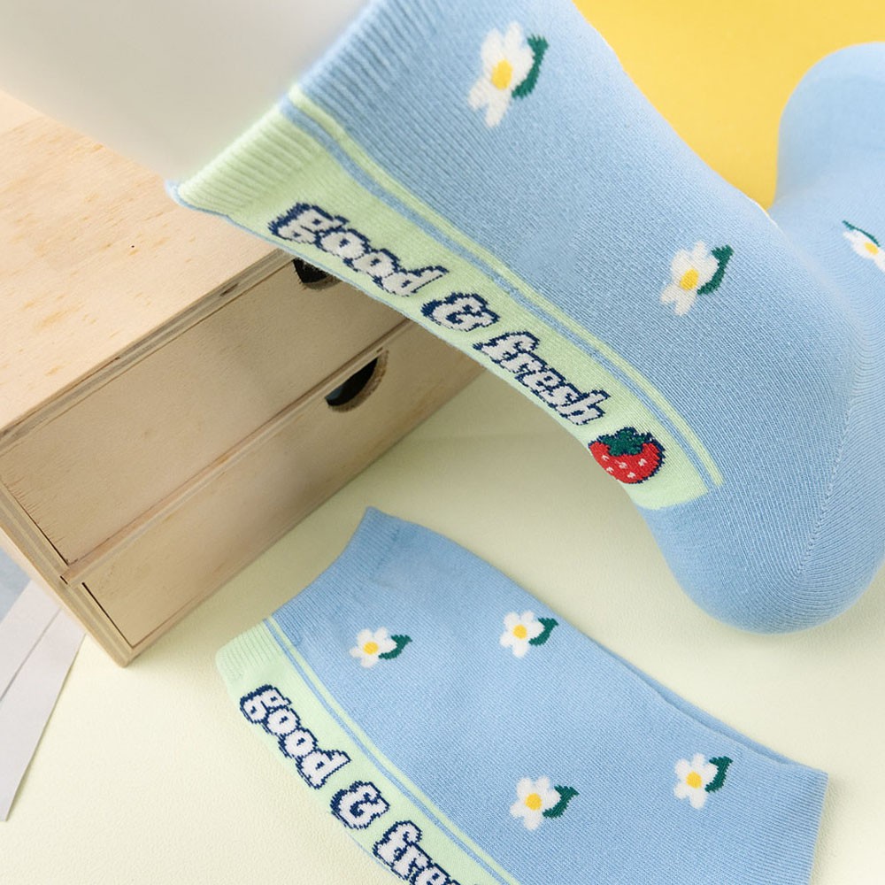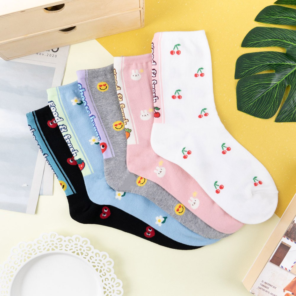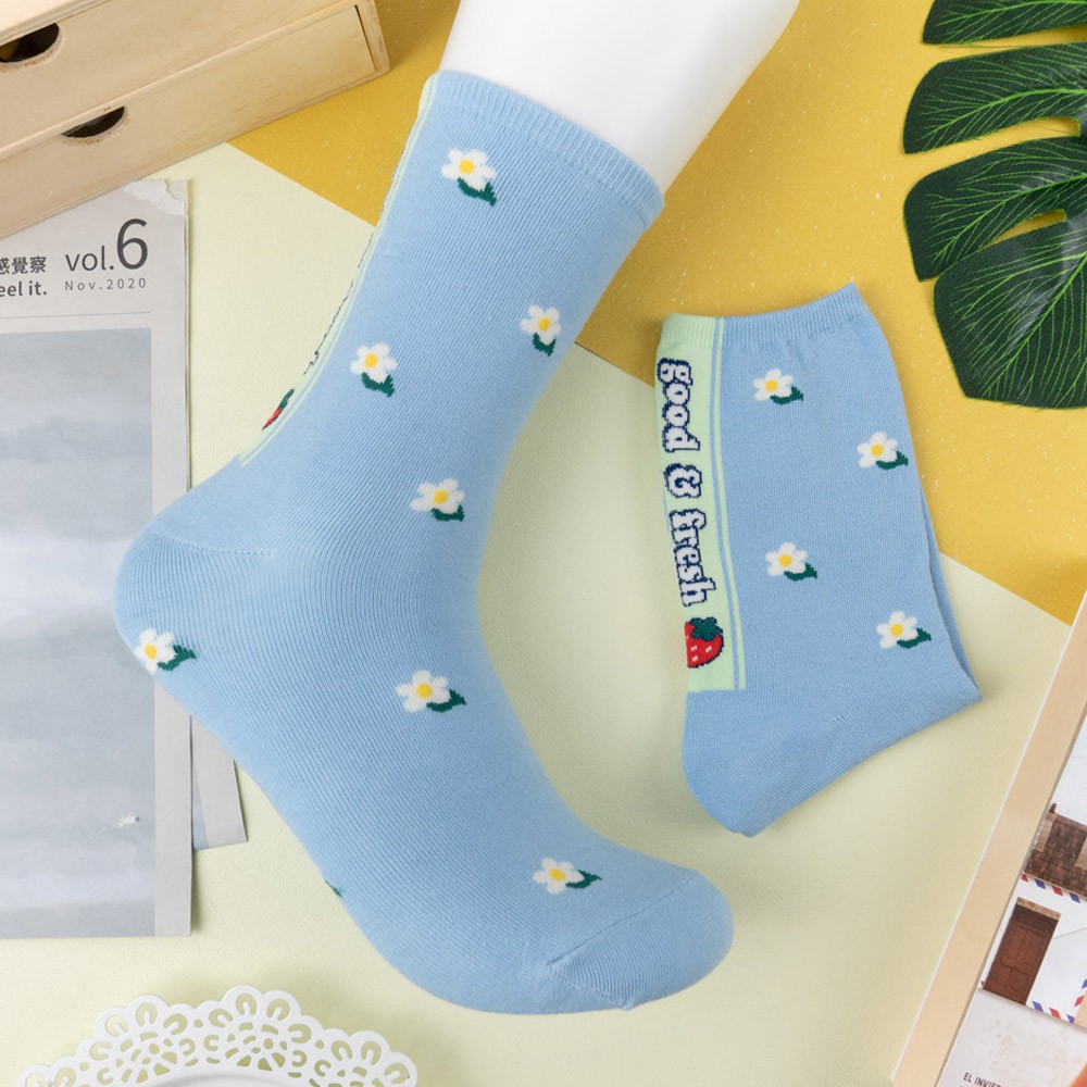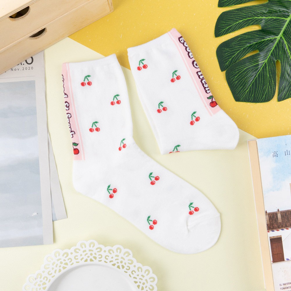阿華有事嗎AUHA 韓國襪子 後腳跟英文滿版小圖中筒襪 K1051 少女襪 韓妞必備長襪 百搭純棉襪