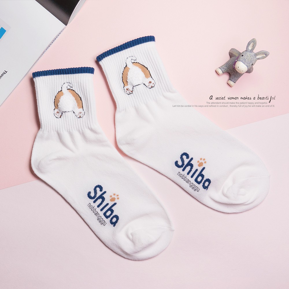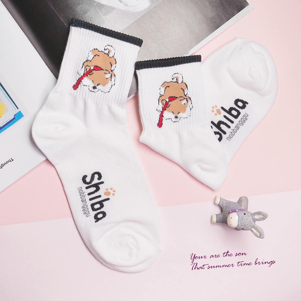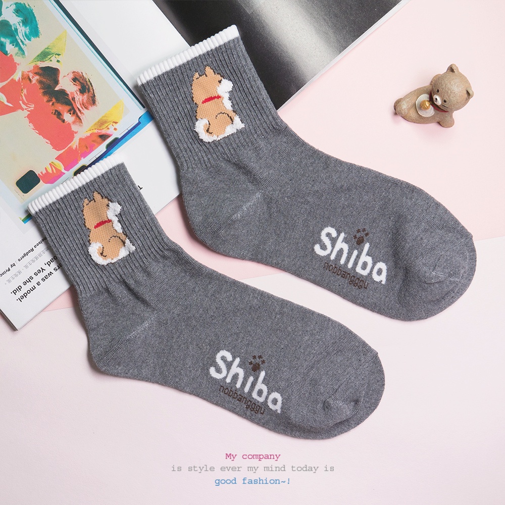 AHUA阿華有事嗎 韓國襪子 柴犬日常系列中筒襪 K0241 正韓少女襪 韓妞必備長襪 百搭熱賣款 韓系穿搭