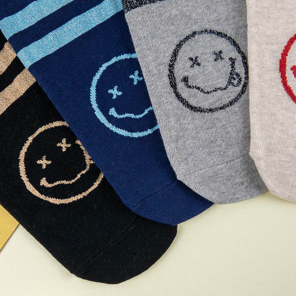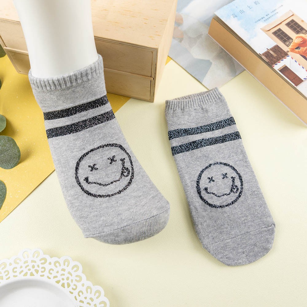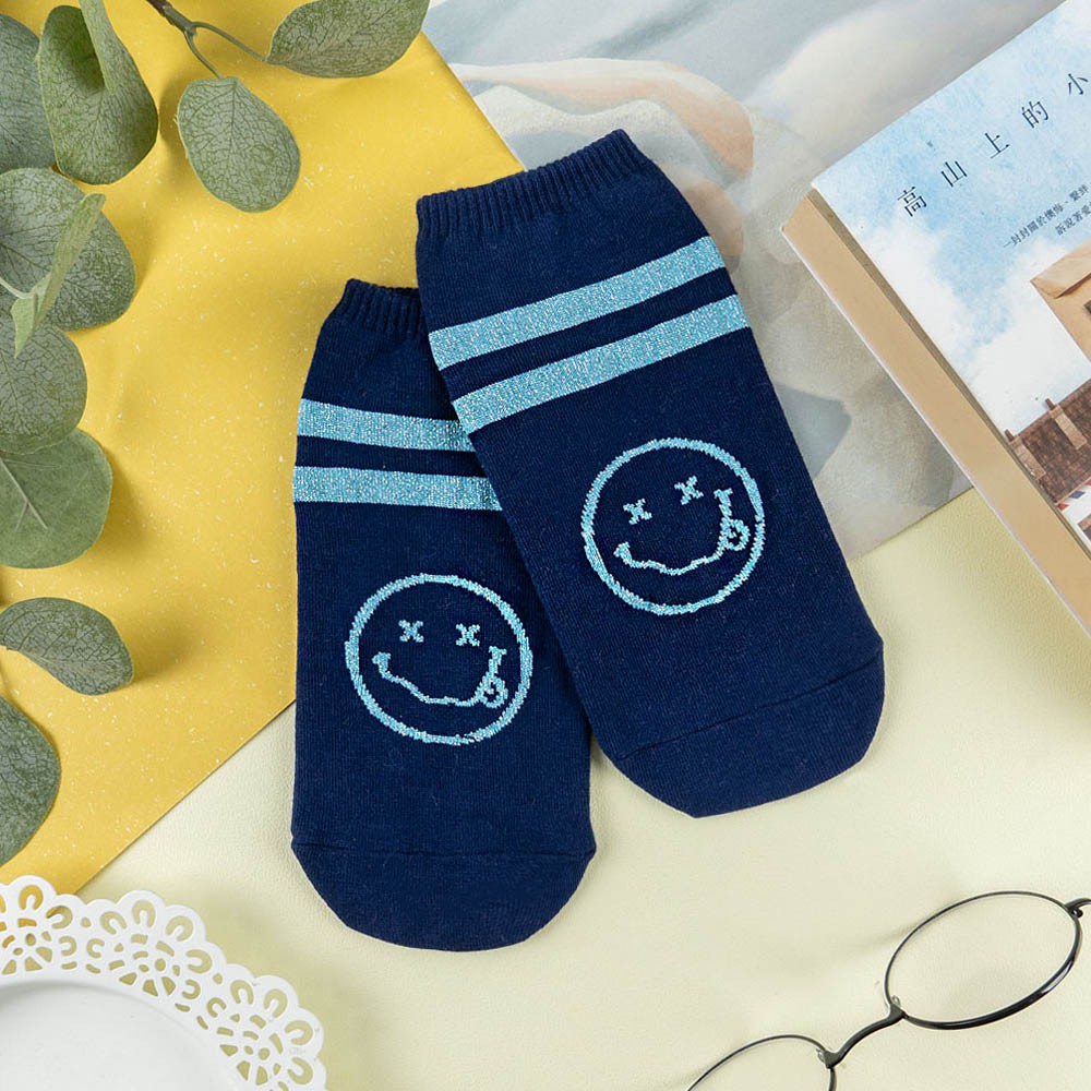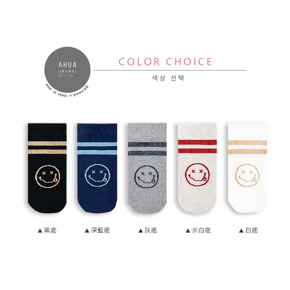 阿華有事嗎AUHA 韓國襪子 雙條紋叉叉笑臉金蔥短襪 K1084 少女襪 韓妞必備長襪 百搭純棉襪