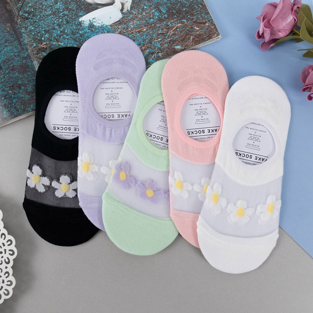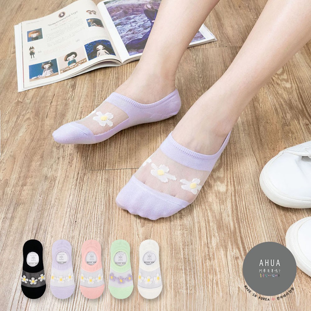 AUHA阿華有事嗎 韓國襪子 透膚三朵小花隱形襪【K1206】隱形襪 少女襪 韓妞必備 百搭純棉襪
