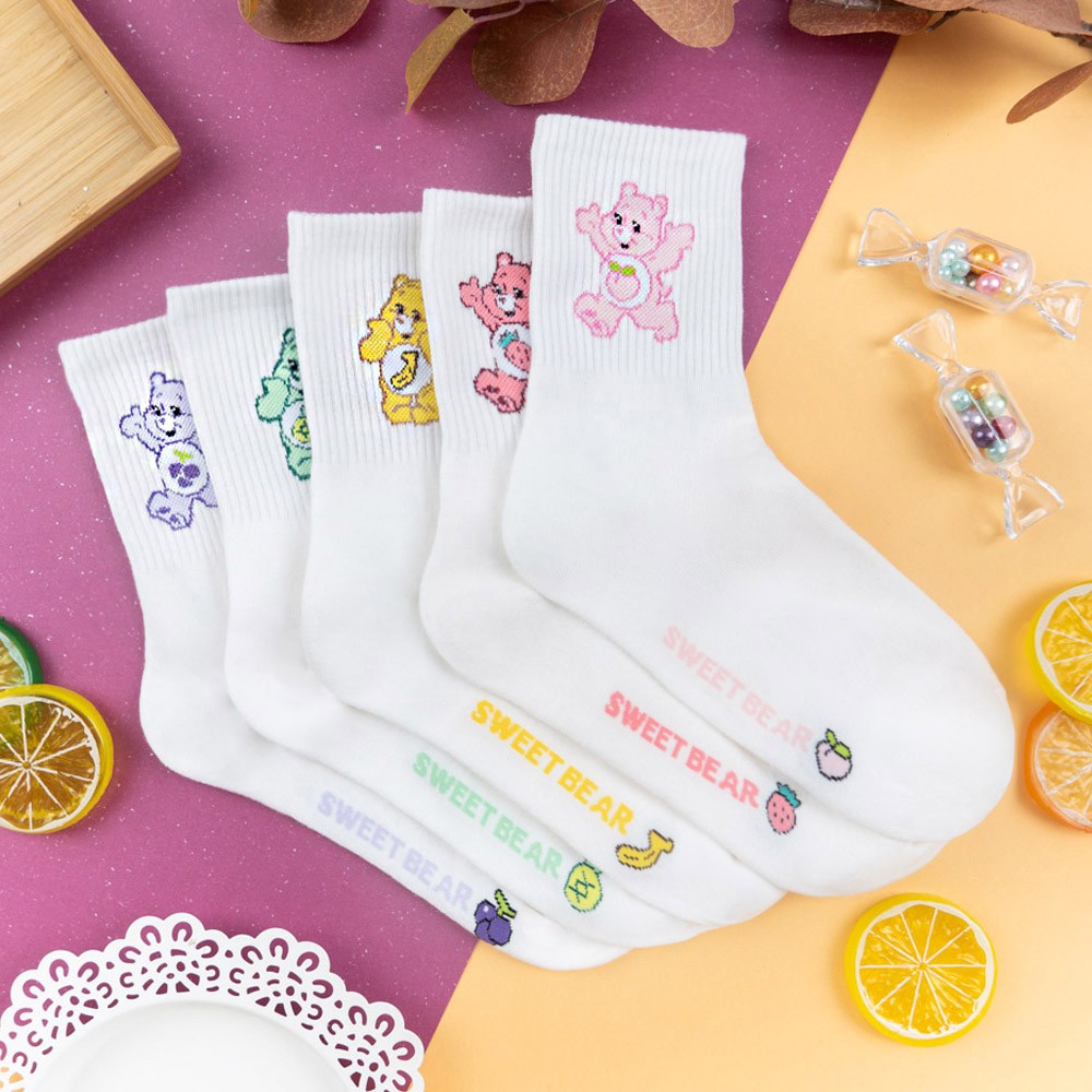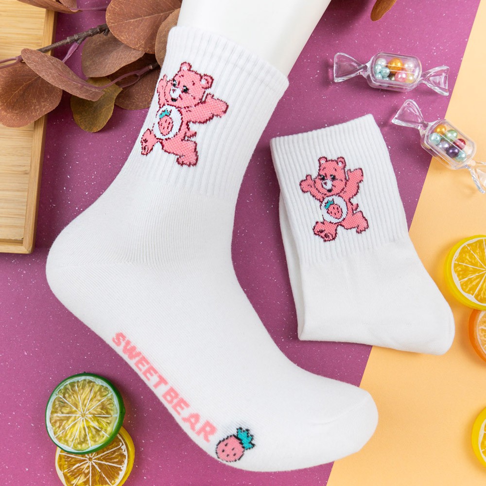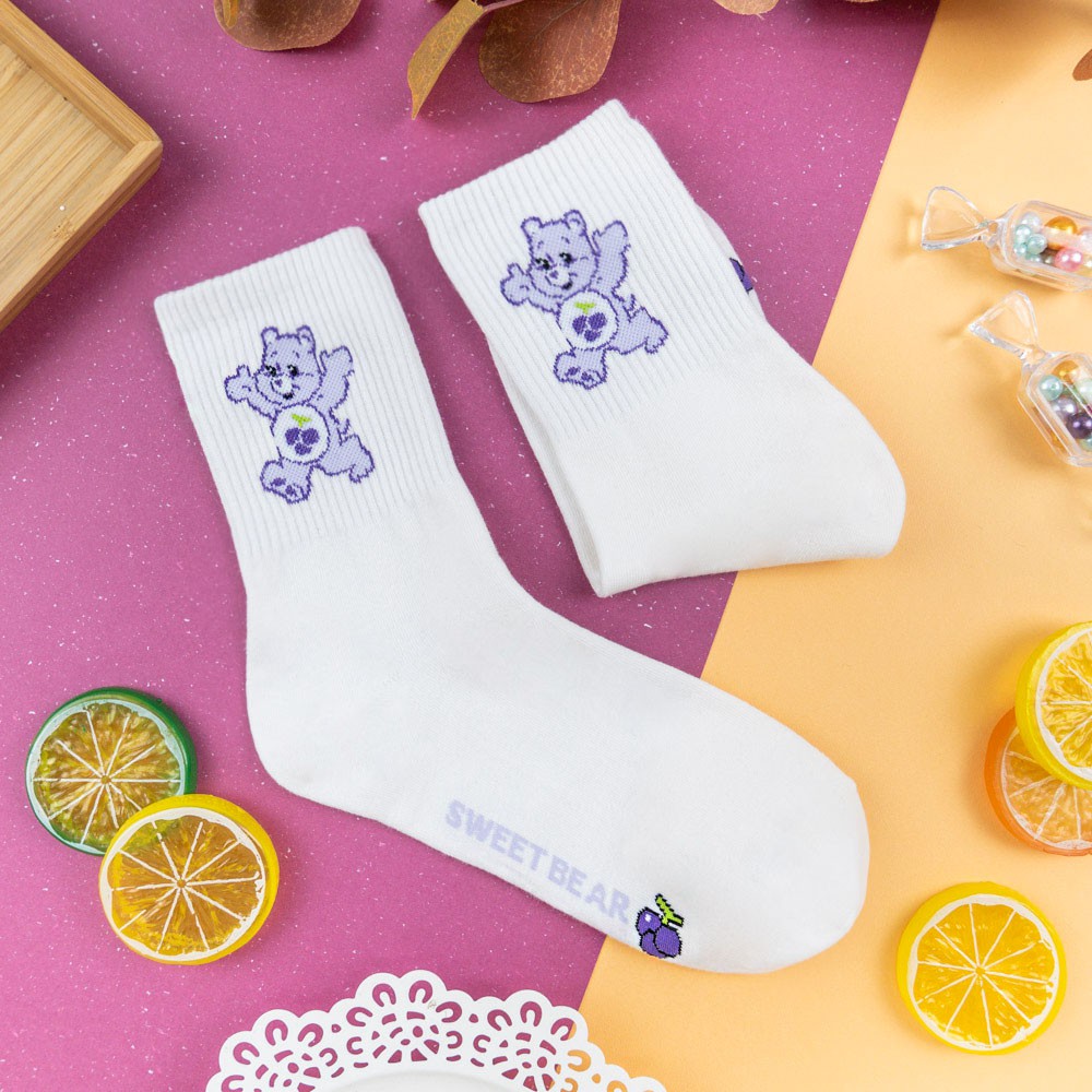阿華有事嗎AUHA 韓國襪子 白底可愛水果熊熊中筒襪 K0978 少女襪 韓妞必備長襪 百搭純棉襪