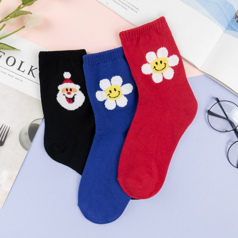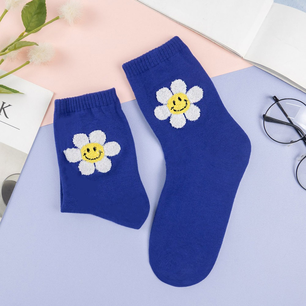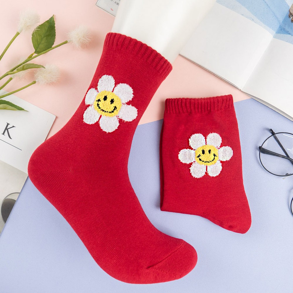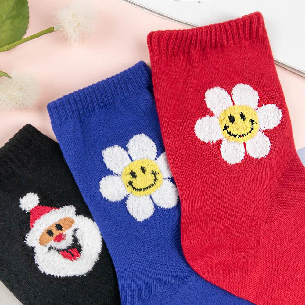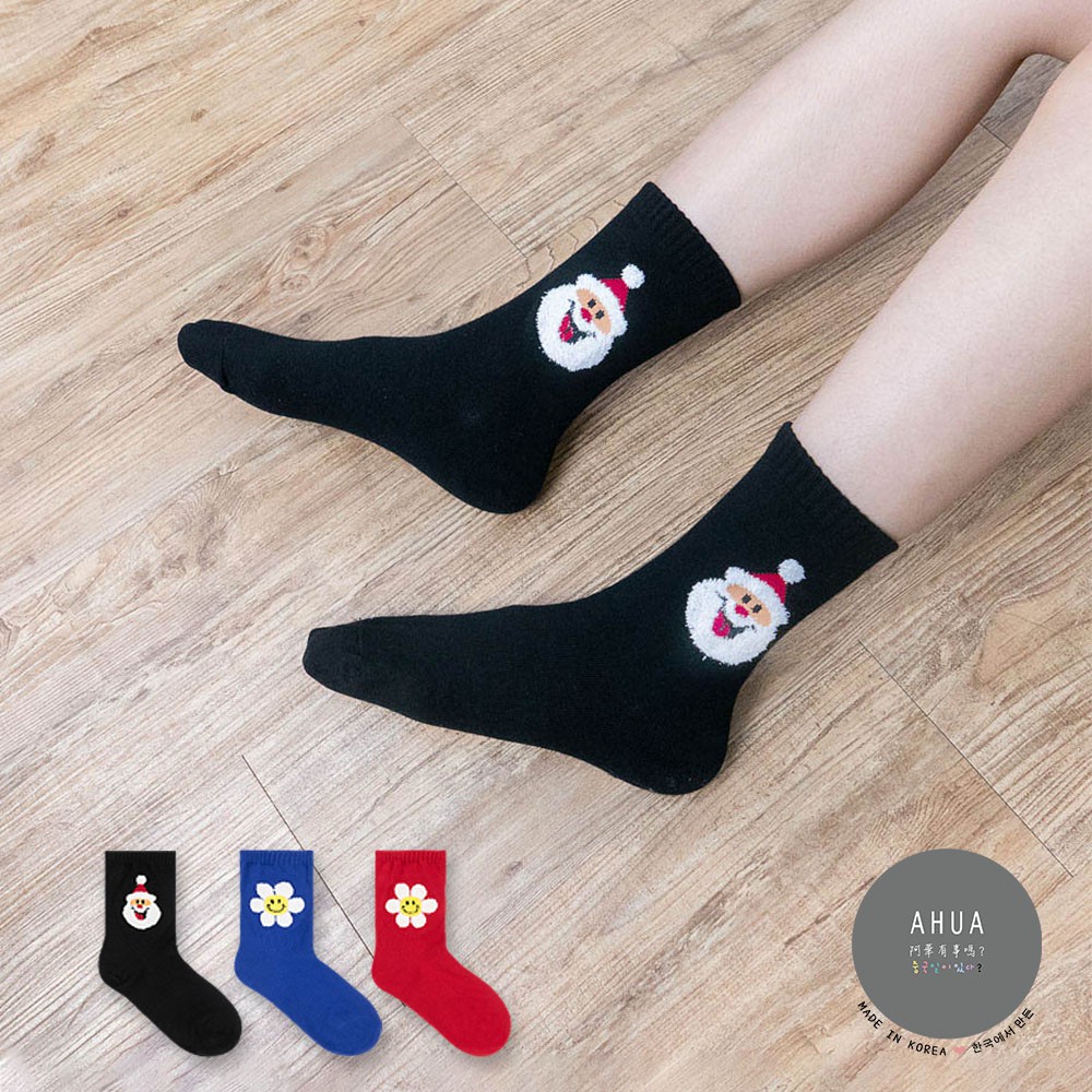 阿華有事嗎AUHA 韓國襪子 立體毛毛花兒笑臉中筒襪 K0984 少女襪 韓妞必備長襪 百搭純棉襪