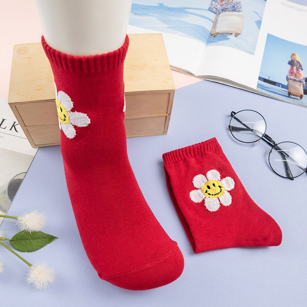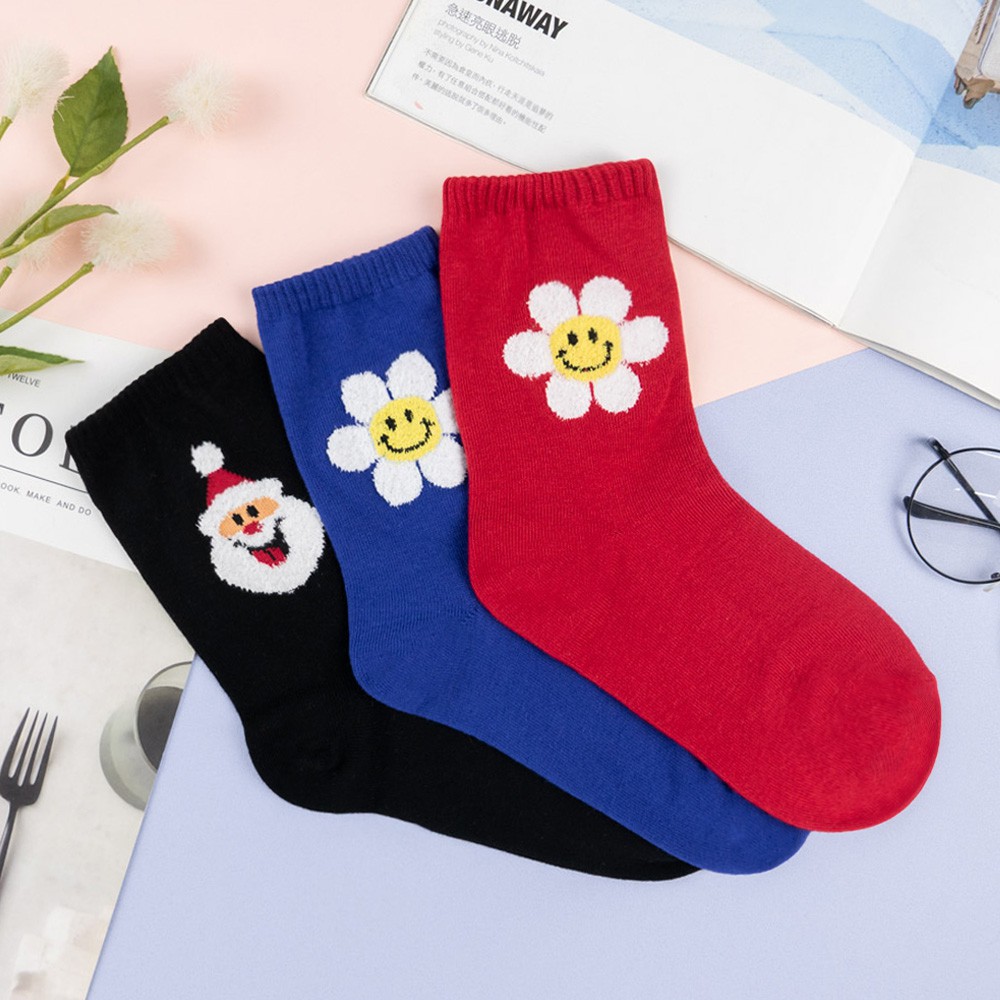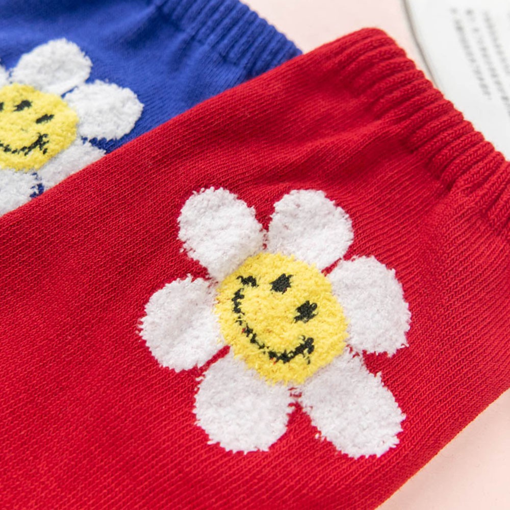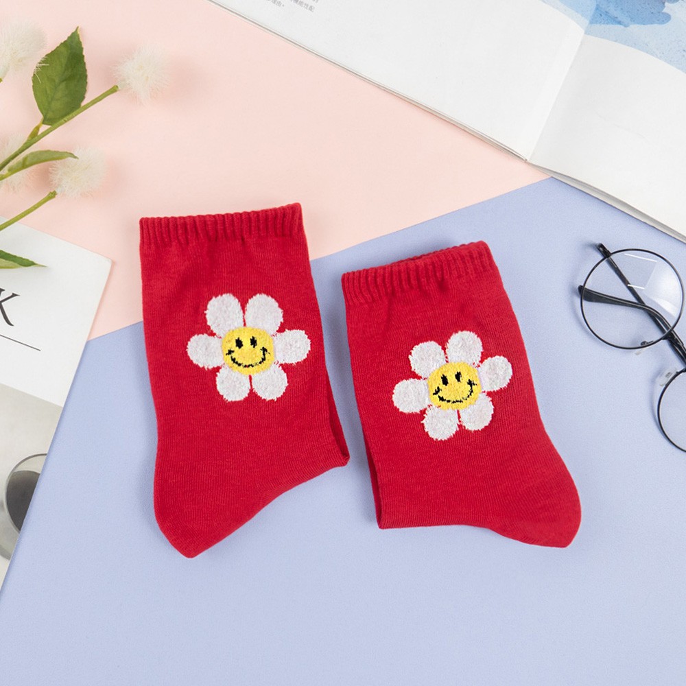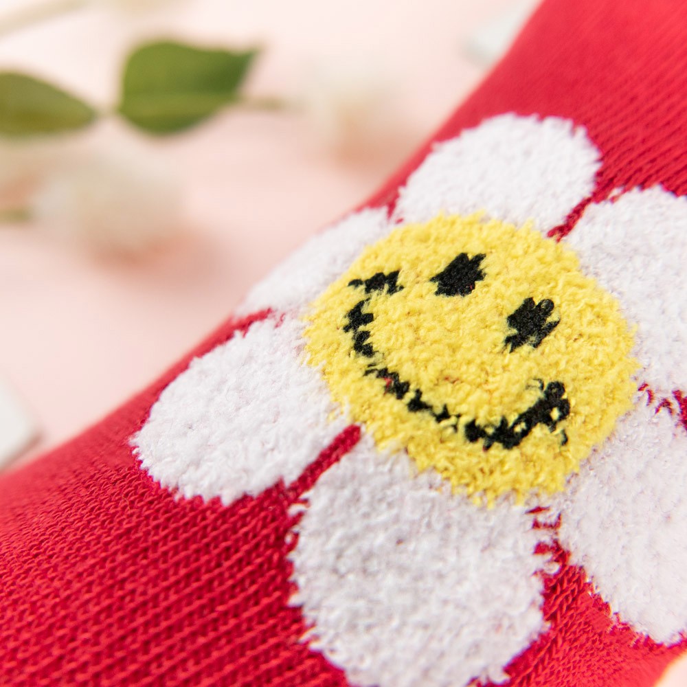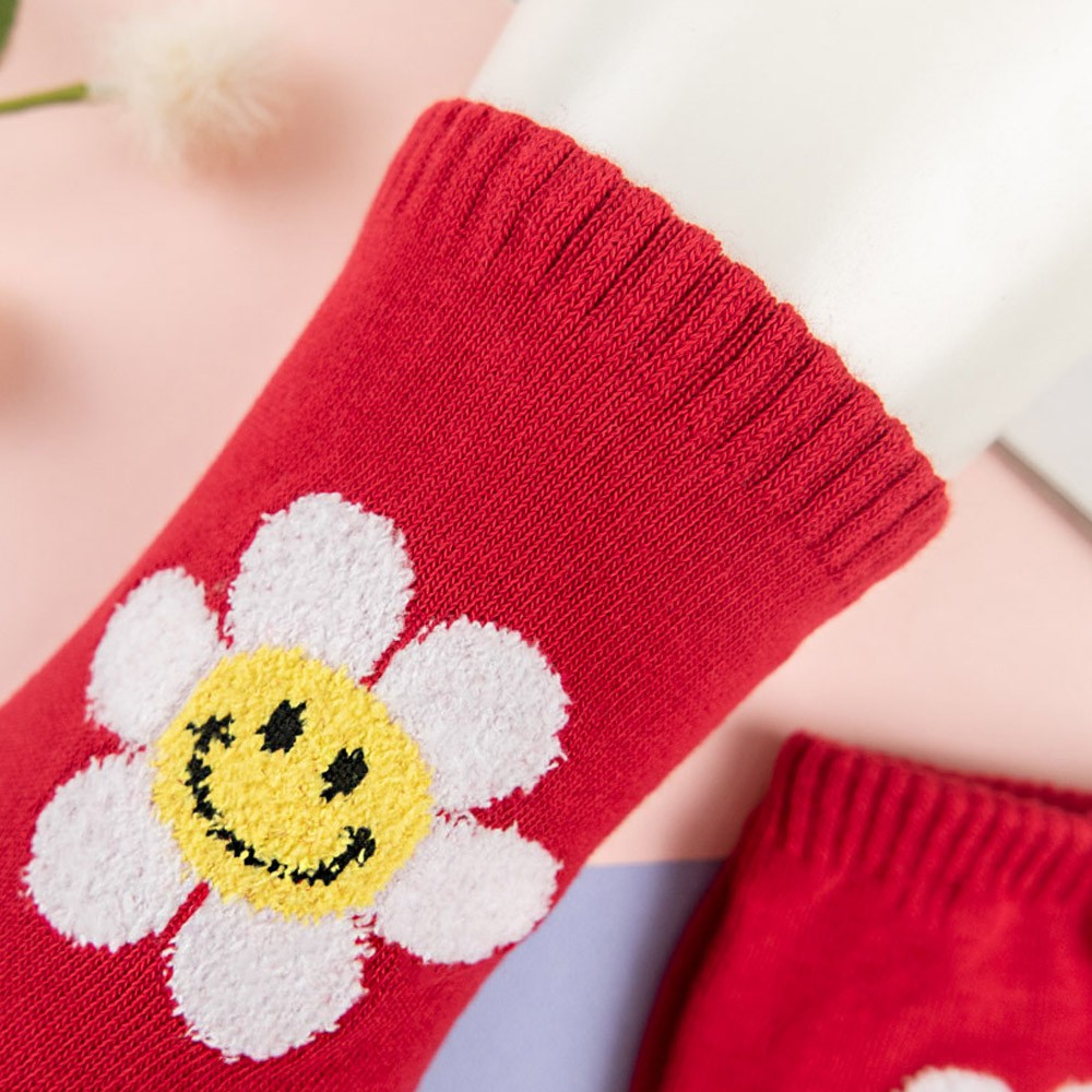 阿華有事嗎AUHA 韓國襪子 立體毛毛花兒笑臉中筒襪 K0984 少女襪 韓妞必備長襪 百搭純棉襪