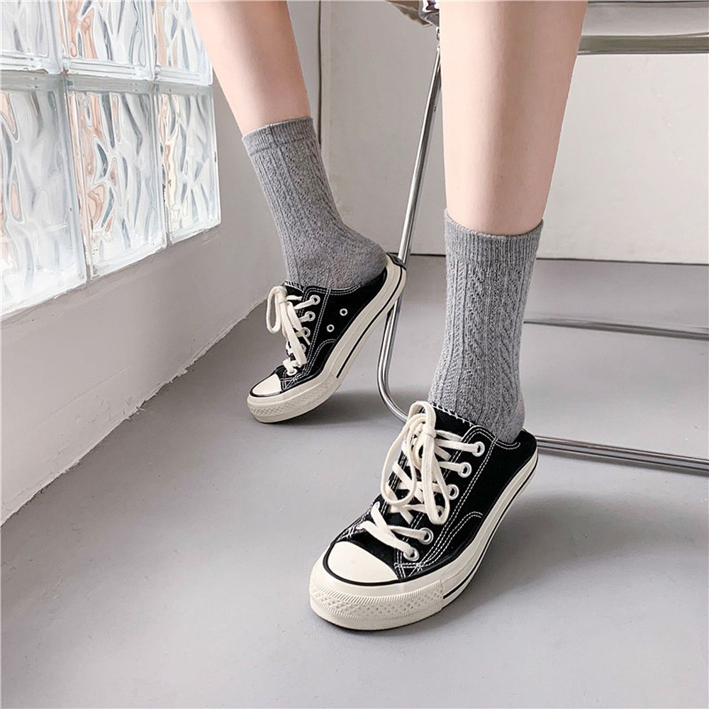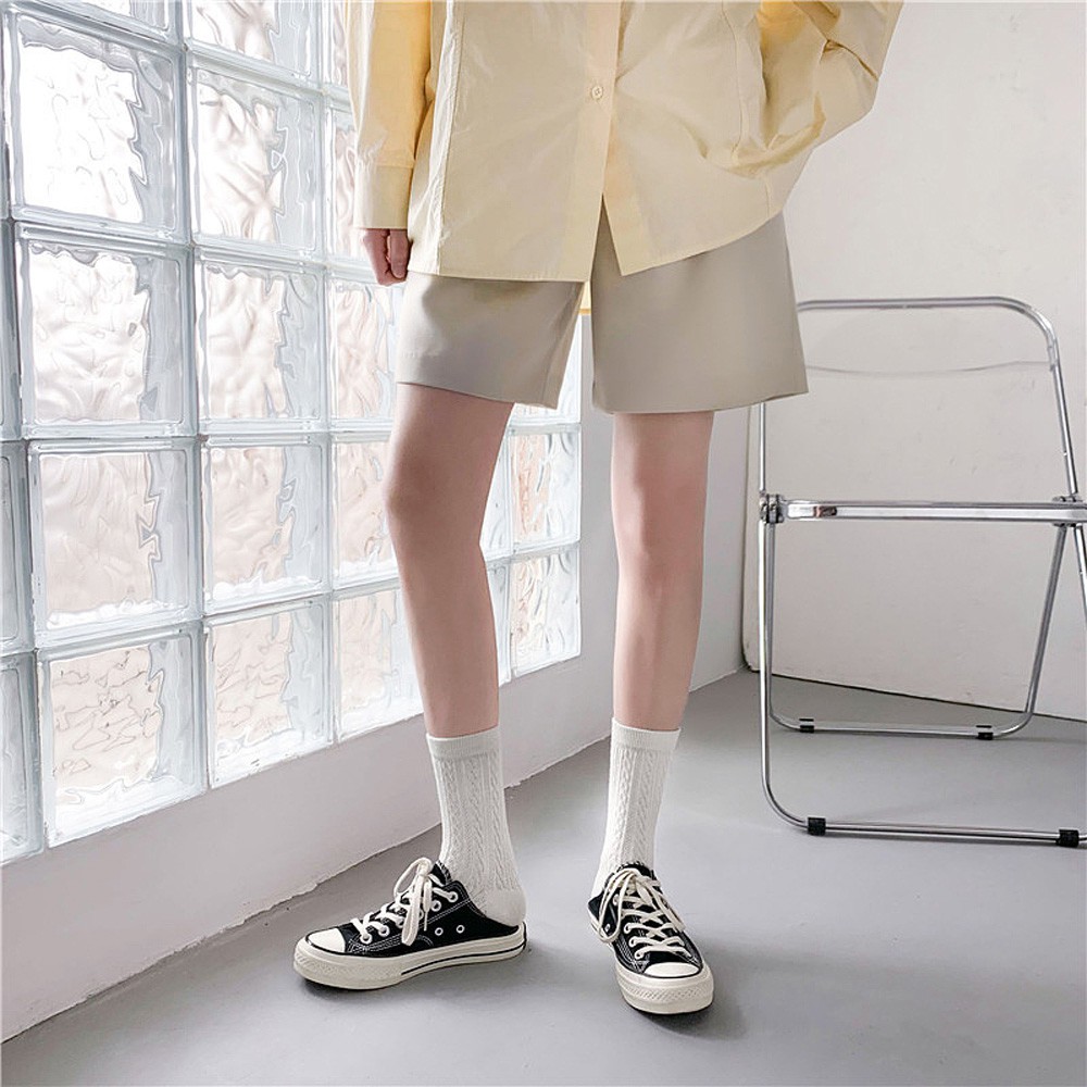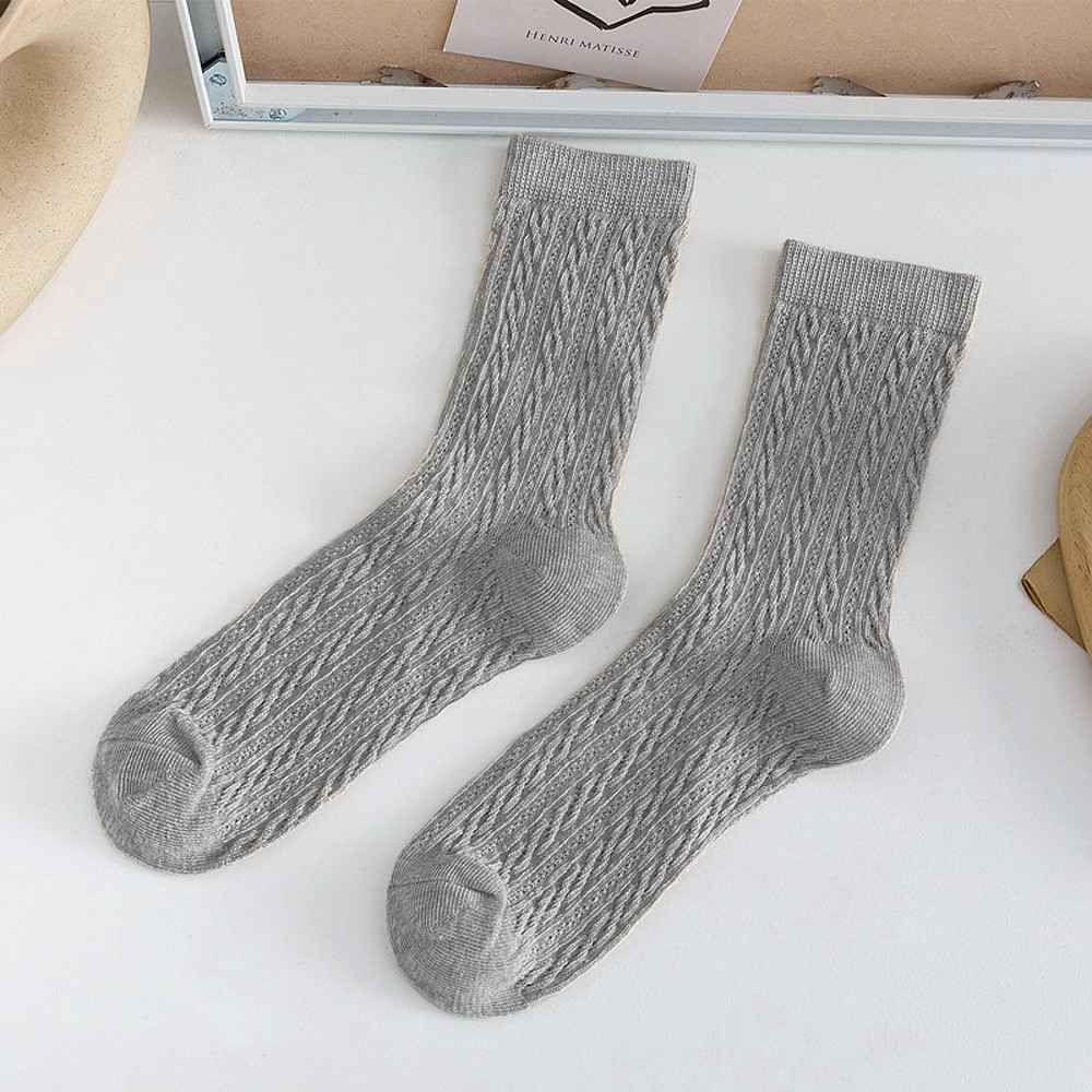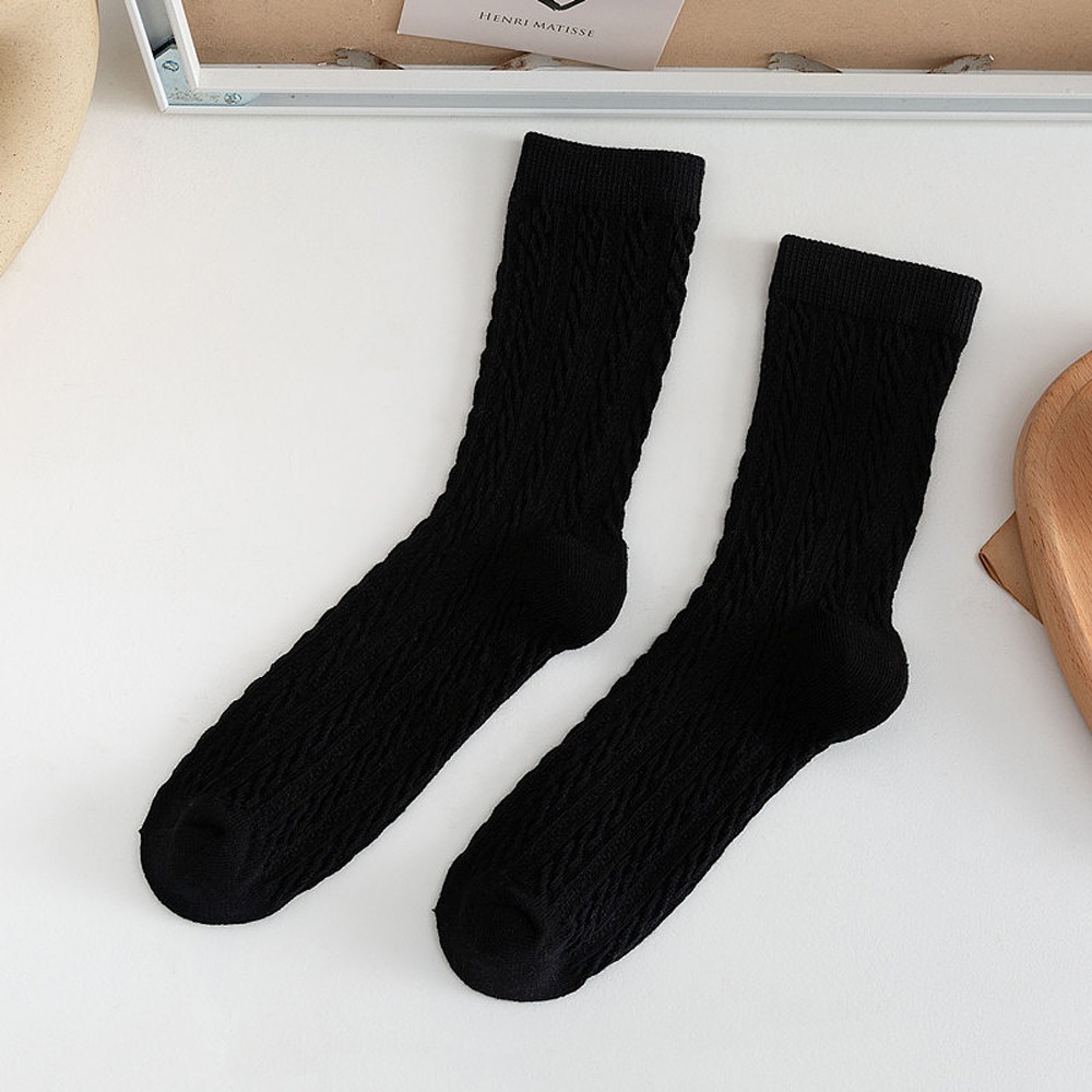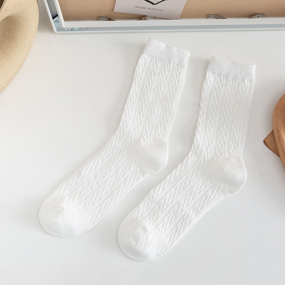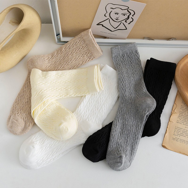 阿華有事嗎AUHA 日系襪子 立體紋路百搭純色中筒襪【S0384】少女襪 韓妞必備長襪 百搭純棉襪