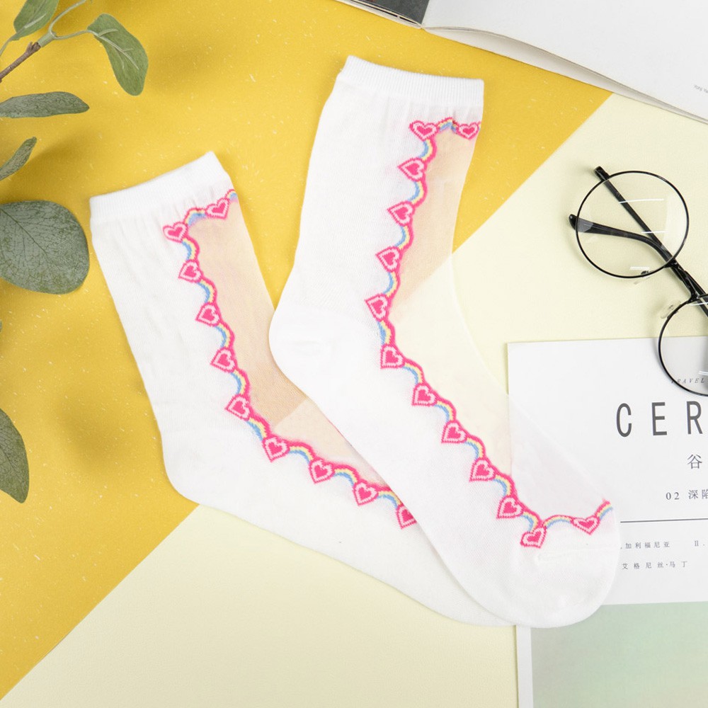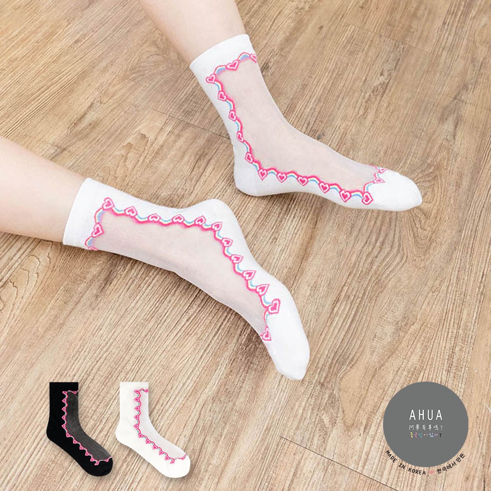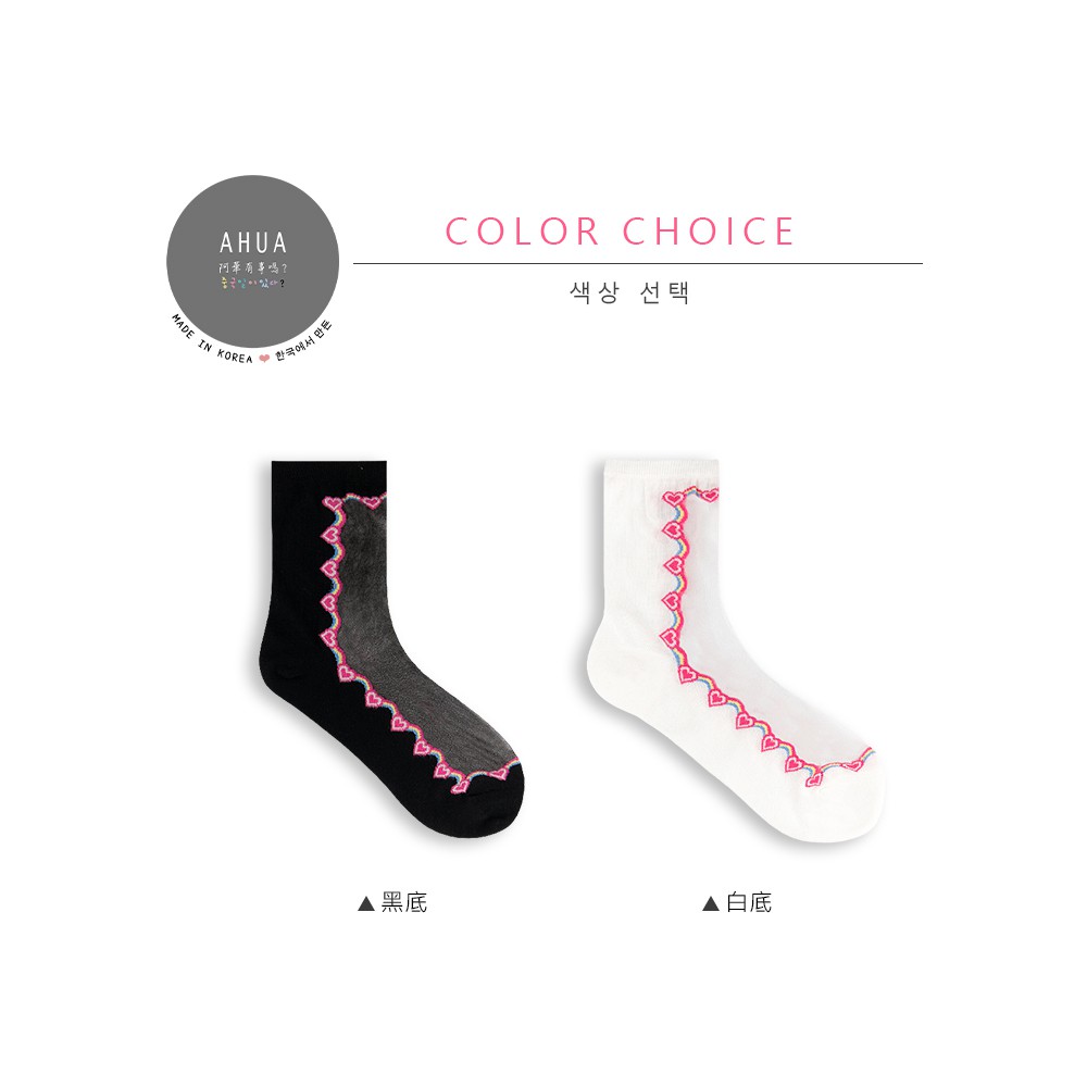 阿華有事嗎AUHA 韓國襪子 透膚愛心彩虹中筒襪 K1077 少女襪 韓妞必備長襪 百搭純棉襪