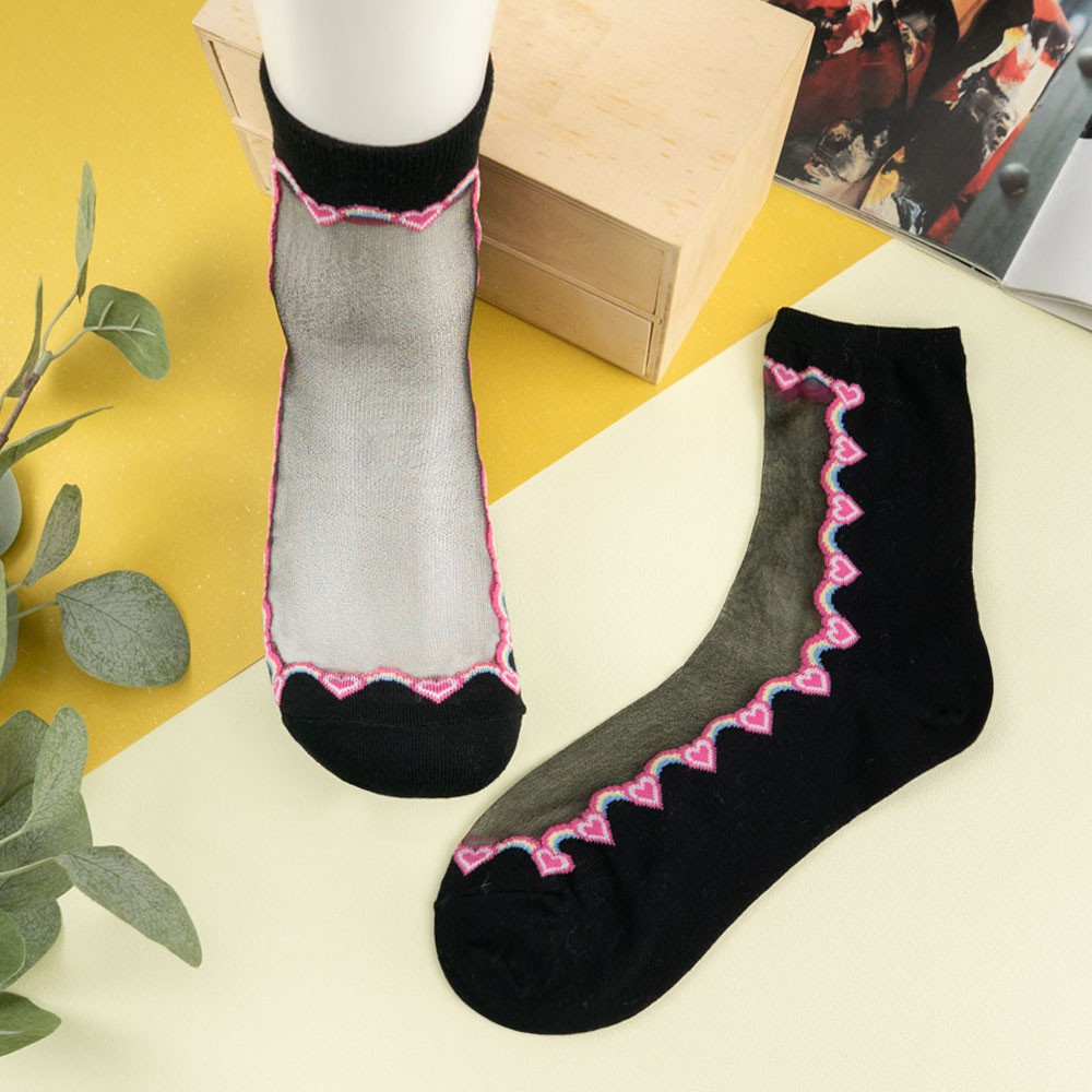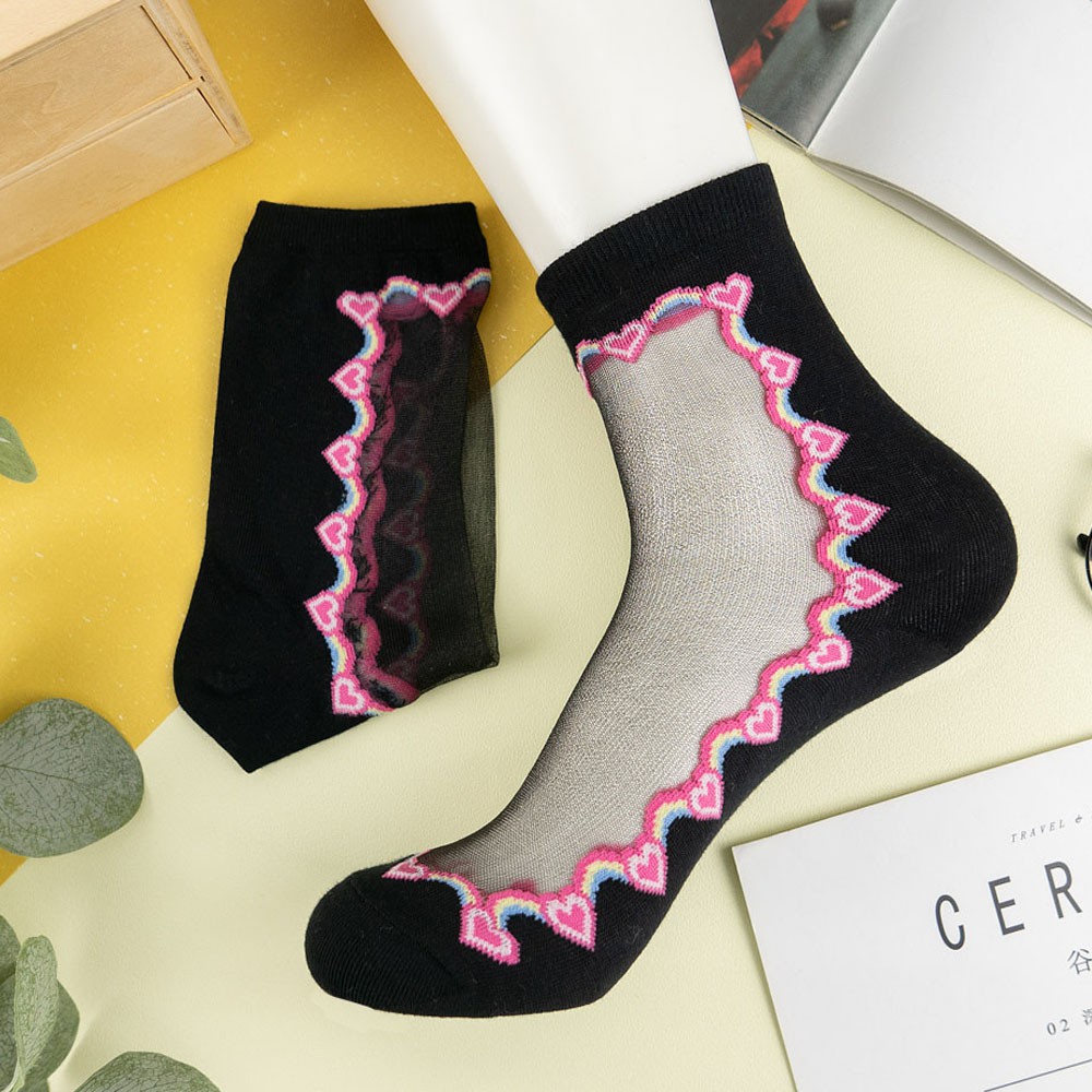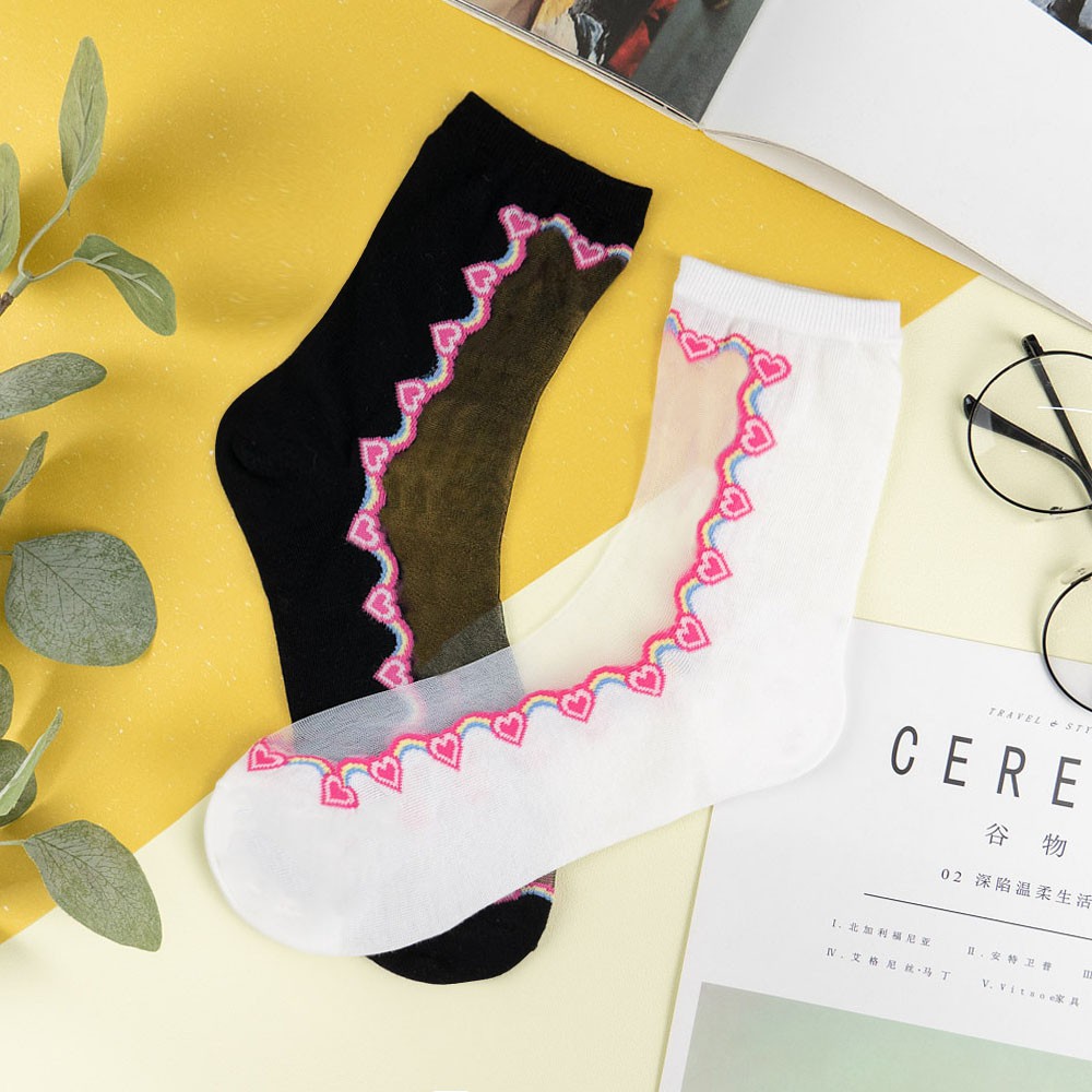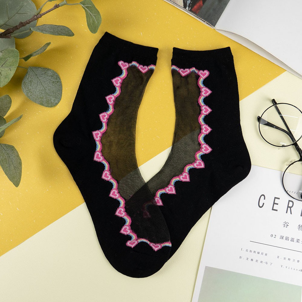 阿華有事嗎AUHA 韓國襪子 透膚愛心彩虹中筒襪 K1077 少女襪 韓妞必備長襪 百搭純棉襪