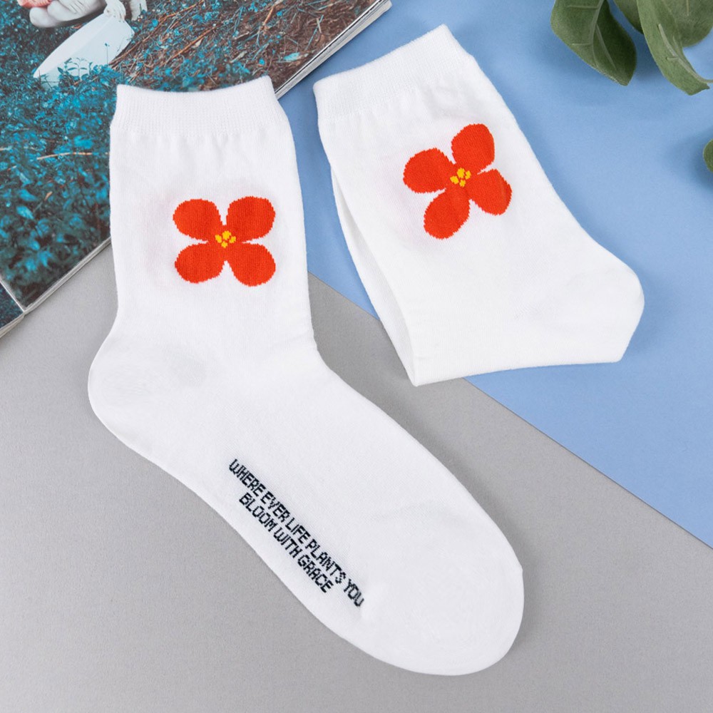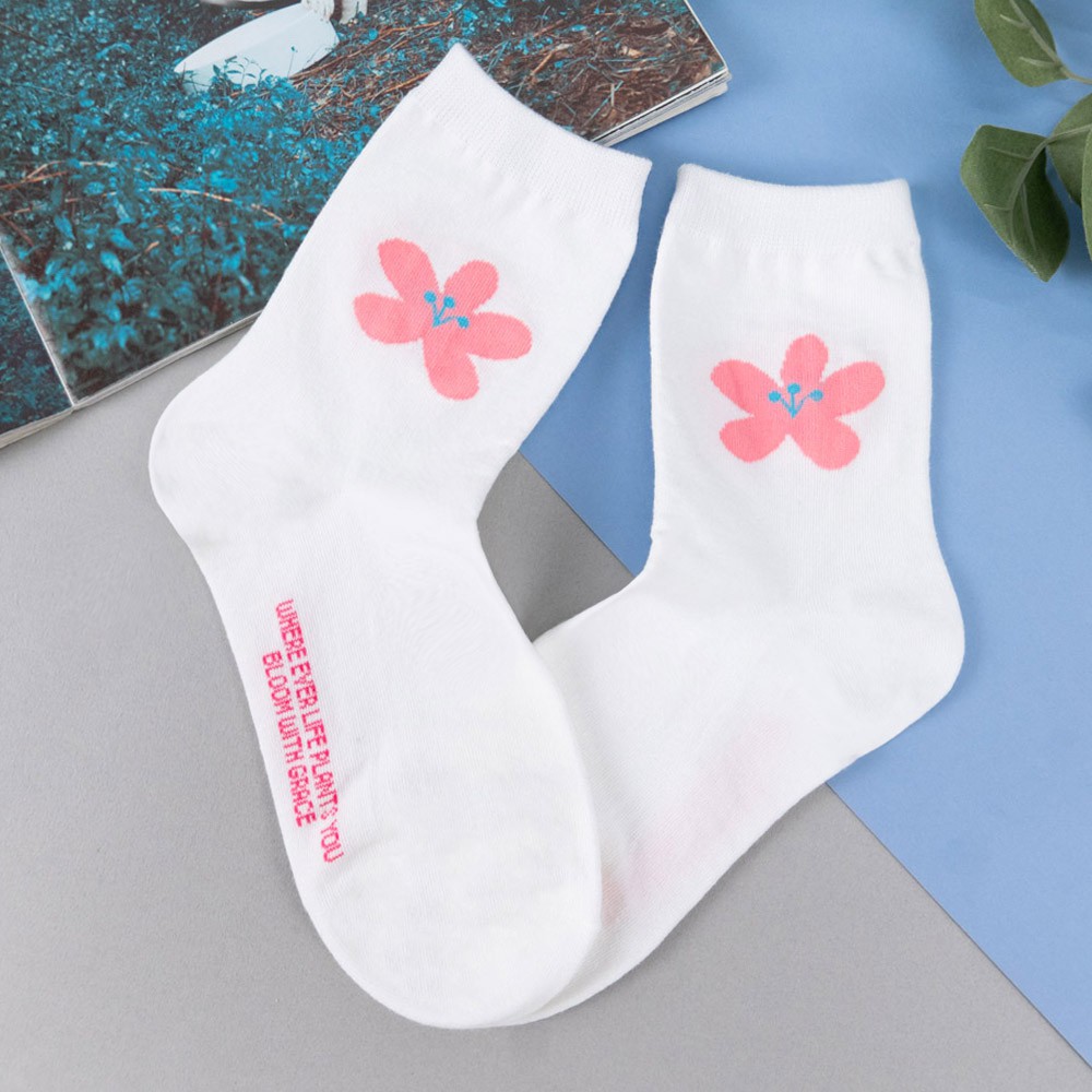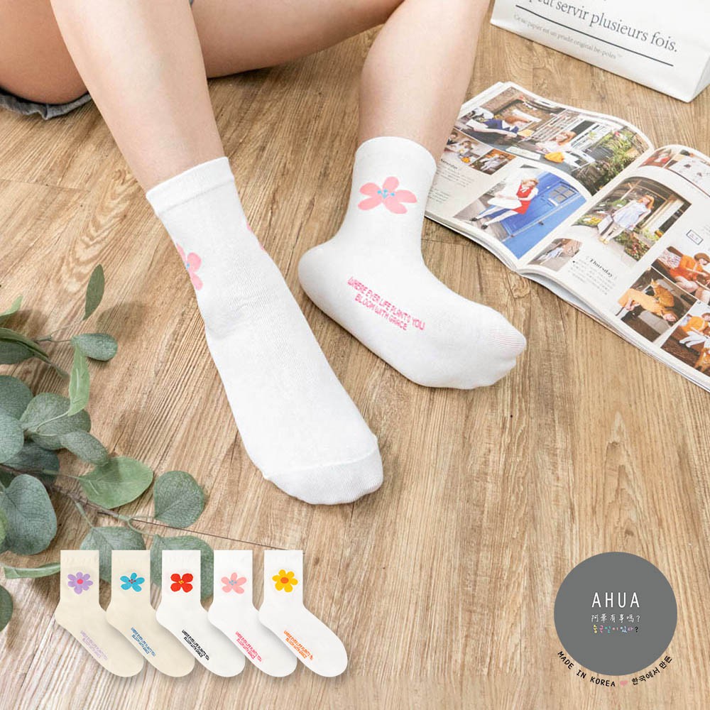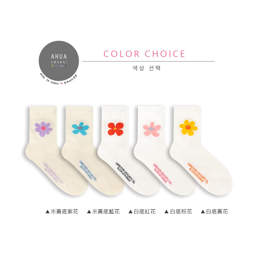 AUHA阿華有事嗎 韓國襪子 純色花朵中筒襪【K1202】少女襪 韓妞必備長襪 百搭純棉襪