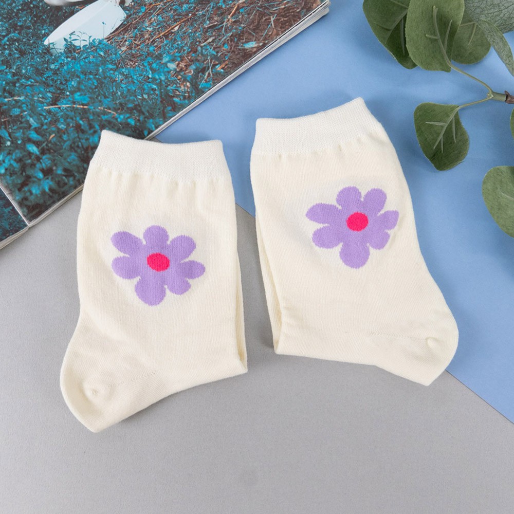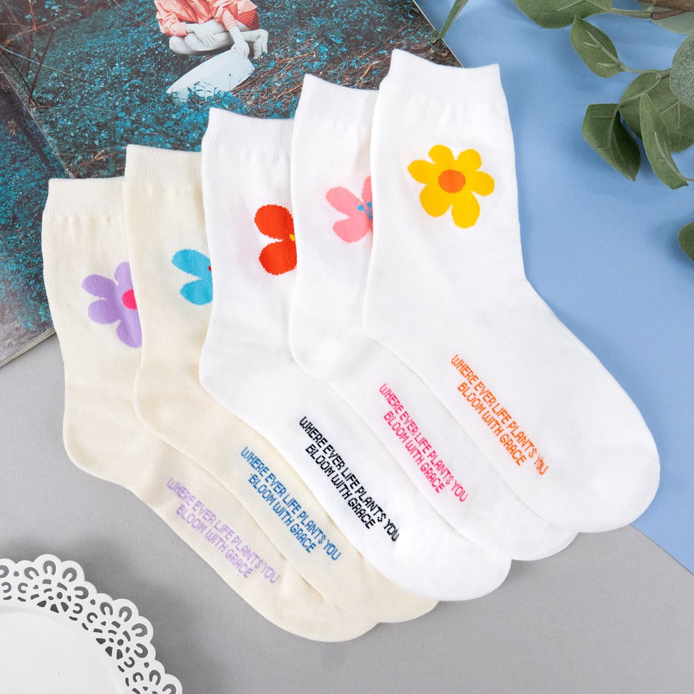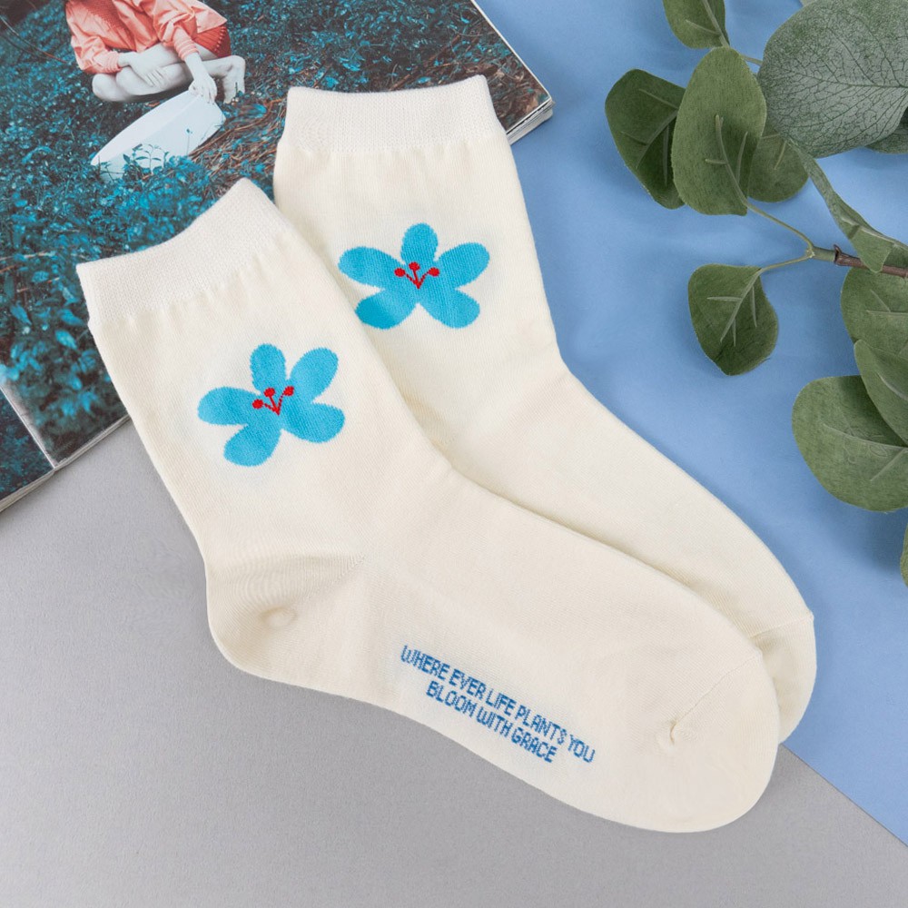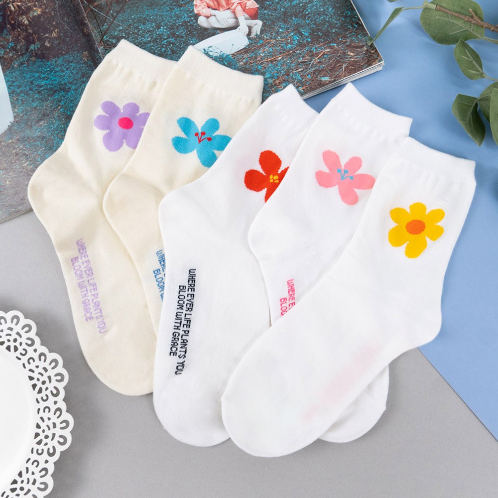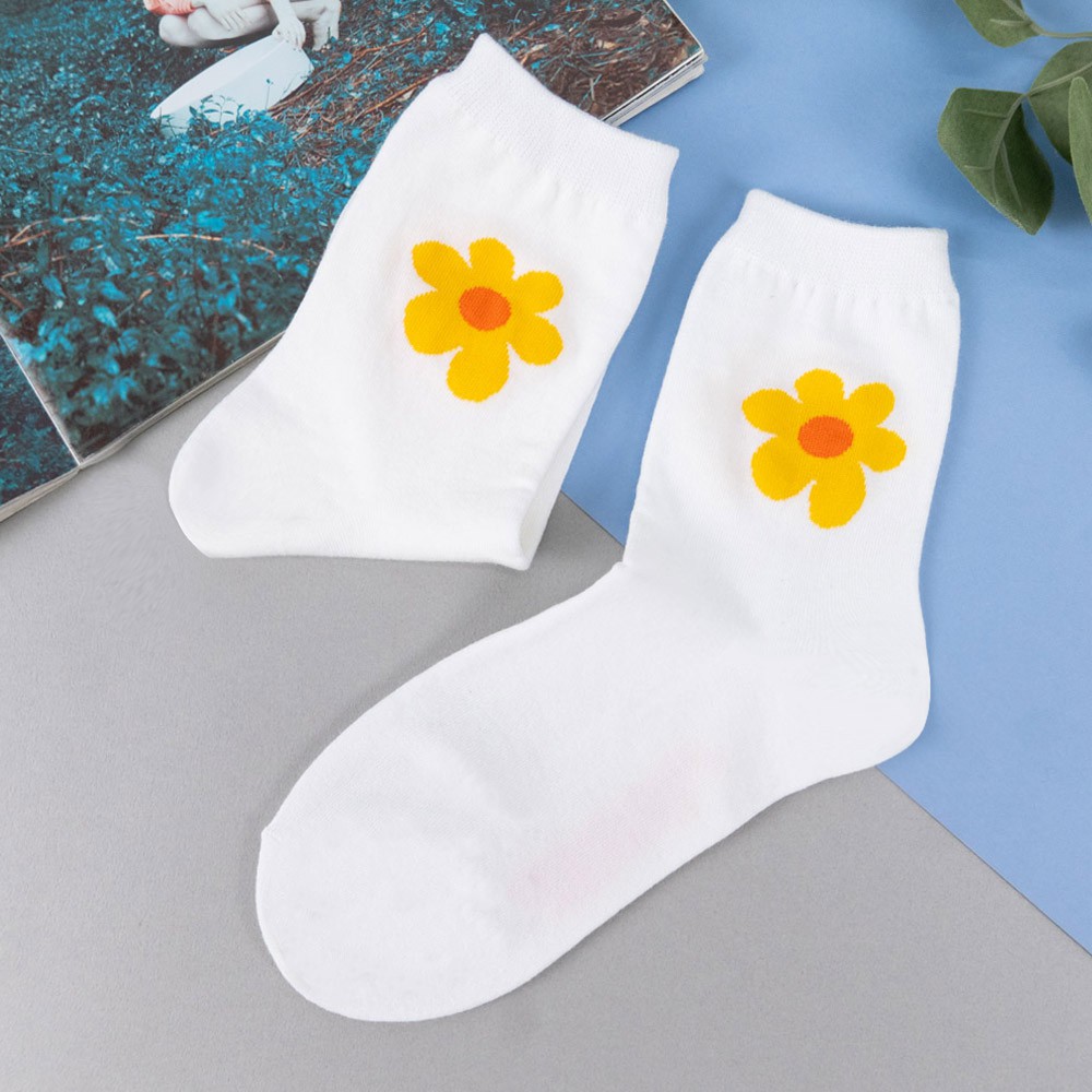 AUHA阿華有事嗎 韓國襪子 純色花朵中筒襪【K1202】少女襪 韓妞必備長襪 百搭純棉襪
