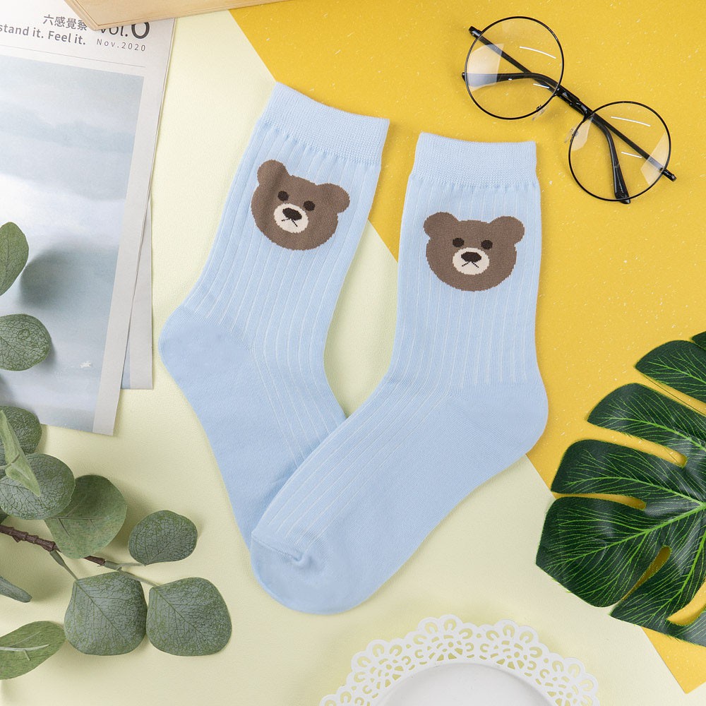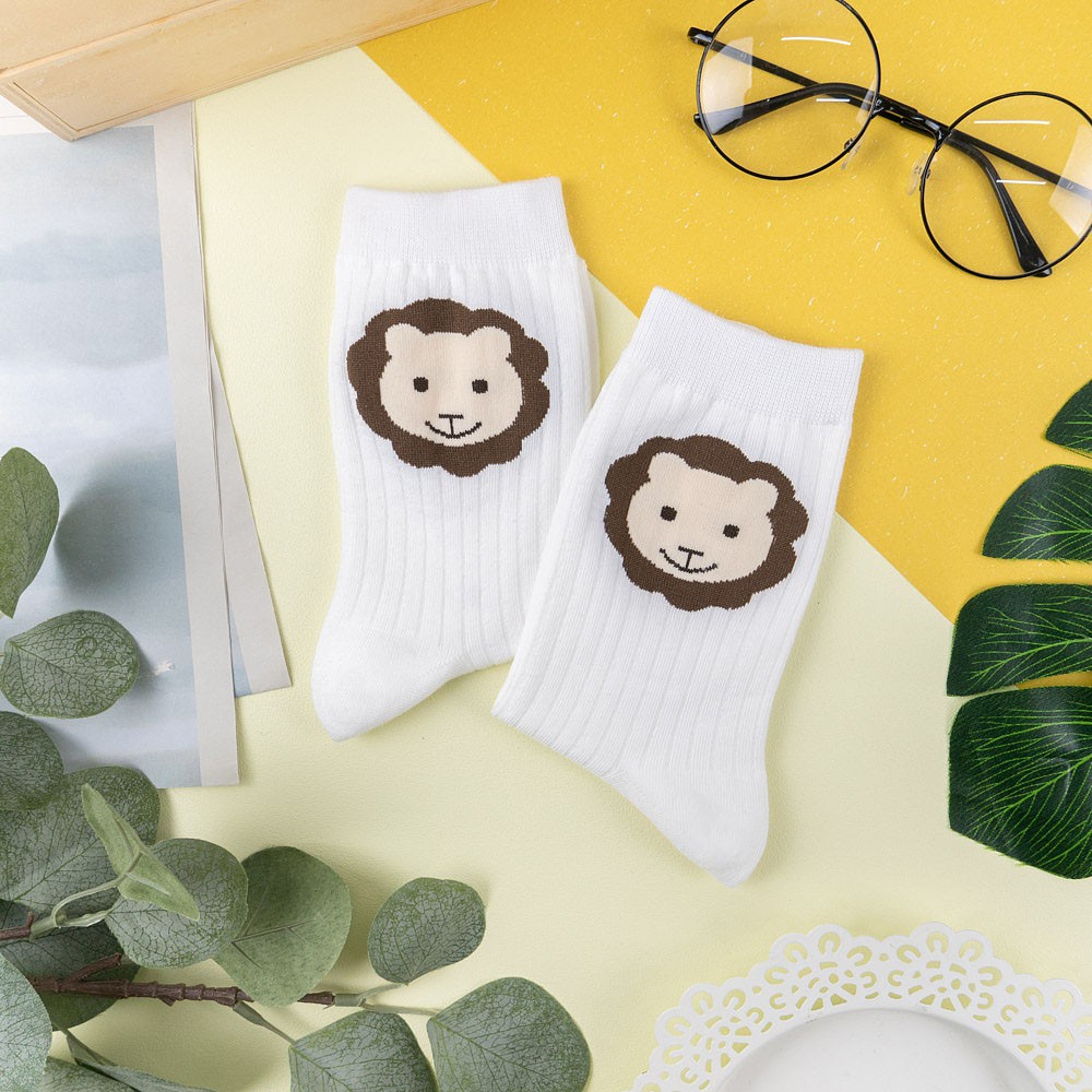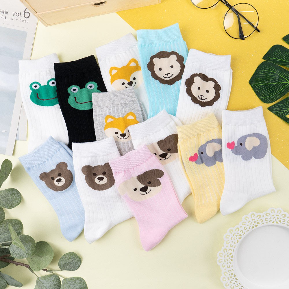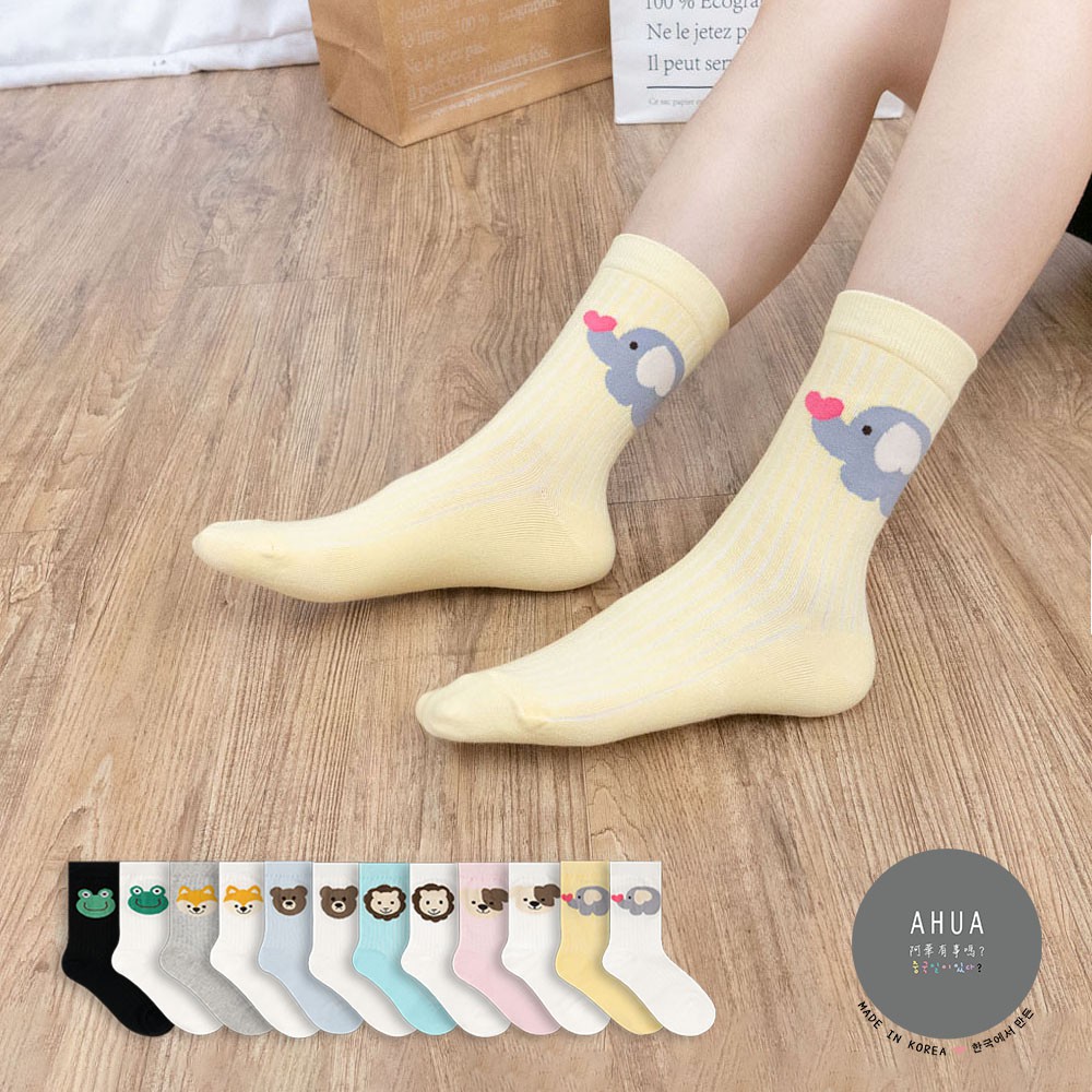 阿華有事嗎AUHA 韓國襪子 可愛動物純色條紋中筒襪 K1052 少女襪 韓妞必備長襪 百搭純棉襪