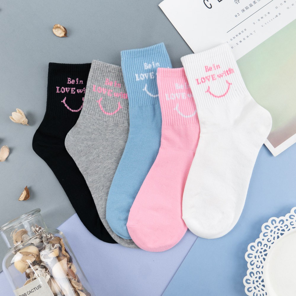 阿華有事嗎AUHA 韓國襪子 戀愛微笑中筒襪【K1175】 少女襪 韓妞必備長襪 百搭純棉襪