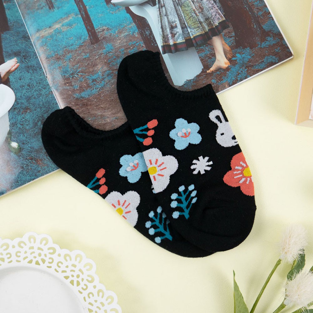 AUHA阿華有事嗎 韓國襪子 滿版可愛兔子花草船型襪【K1211】 船型襪 少女襪 韓妞必備 百搭純棉襪