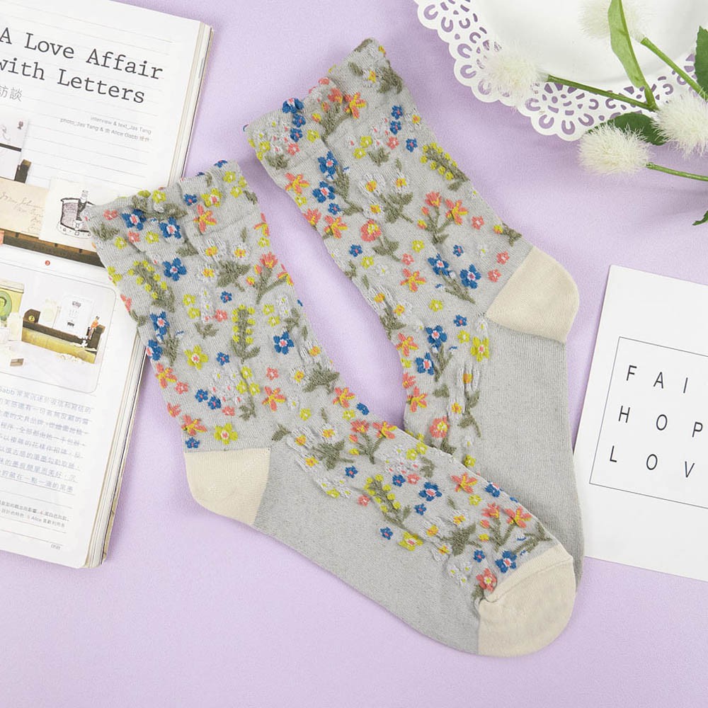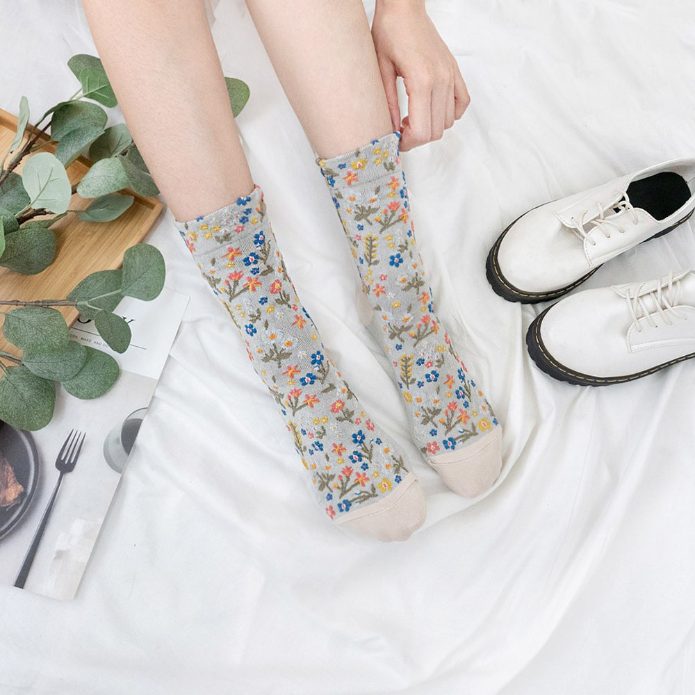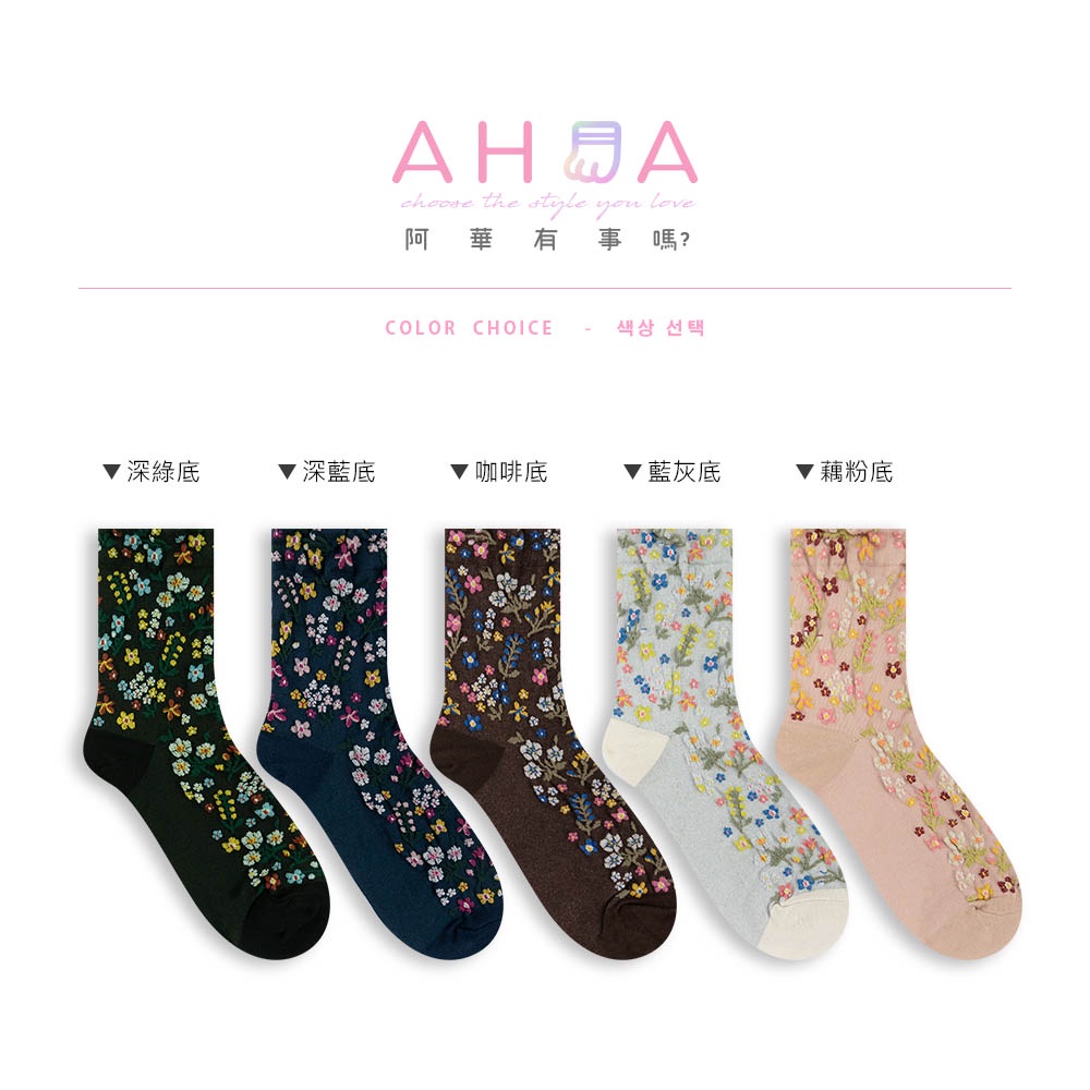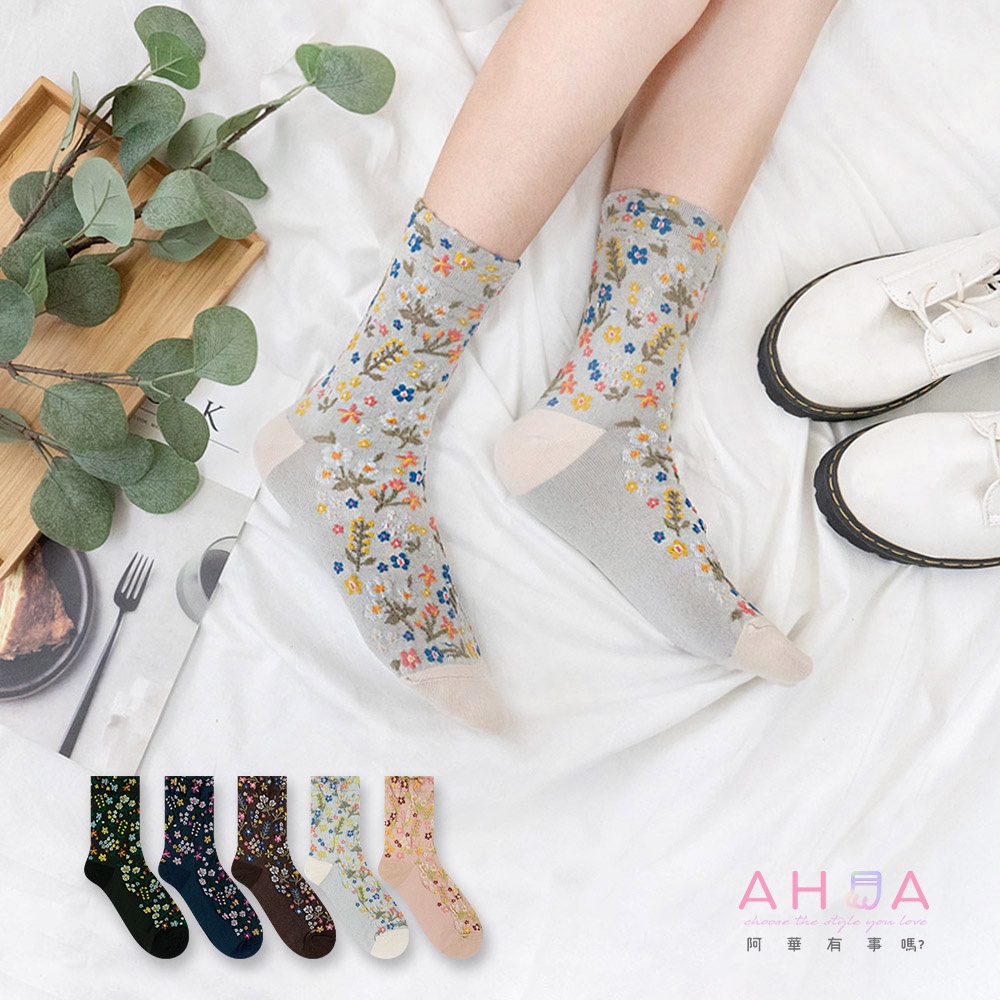 AHUA阿華有事嗎 韓國襪子 立體繽紛碎花中筒襪【K1313】少女襪 可愛 百搭 中筒 花朵 文青 純棉襪