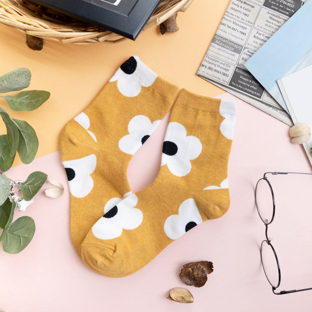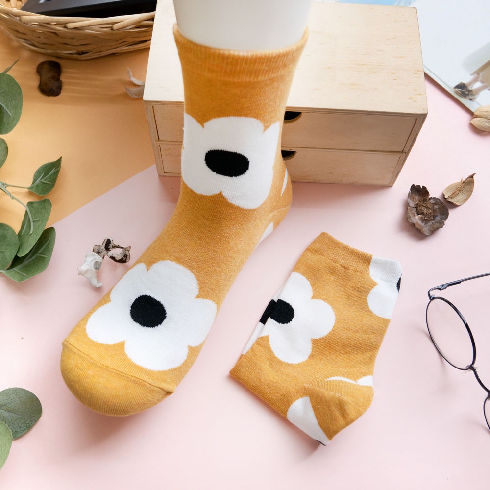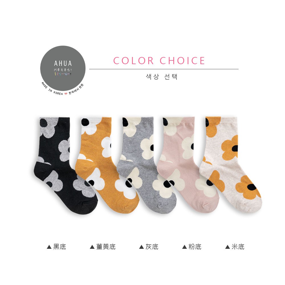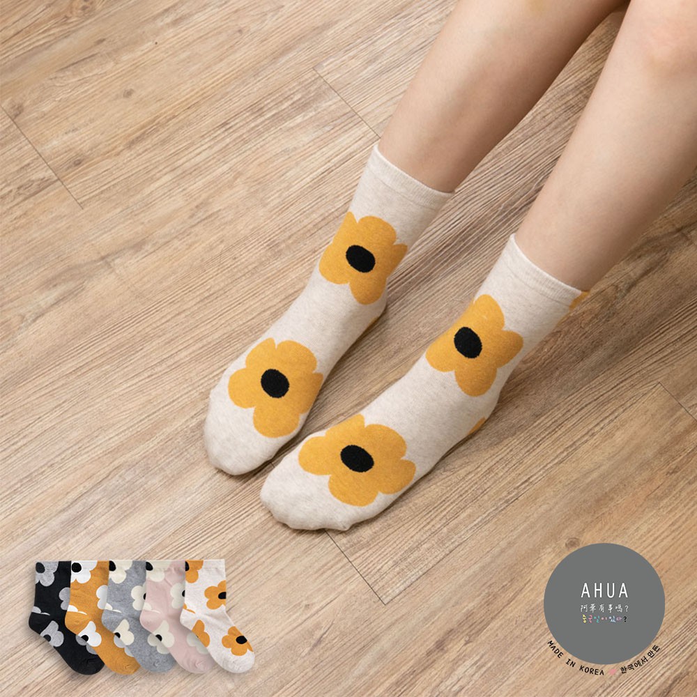 阿華有事嗎AUHA 韓國襪子 滿版大花朵中筒襪 K0907 少女襪 韓妞必備長襪 百搭純棉襪