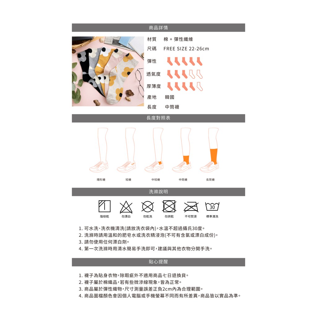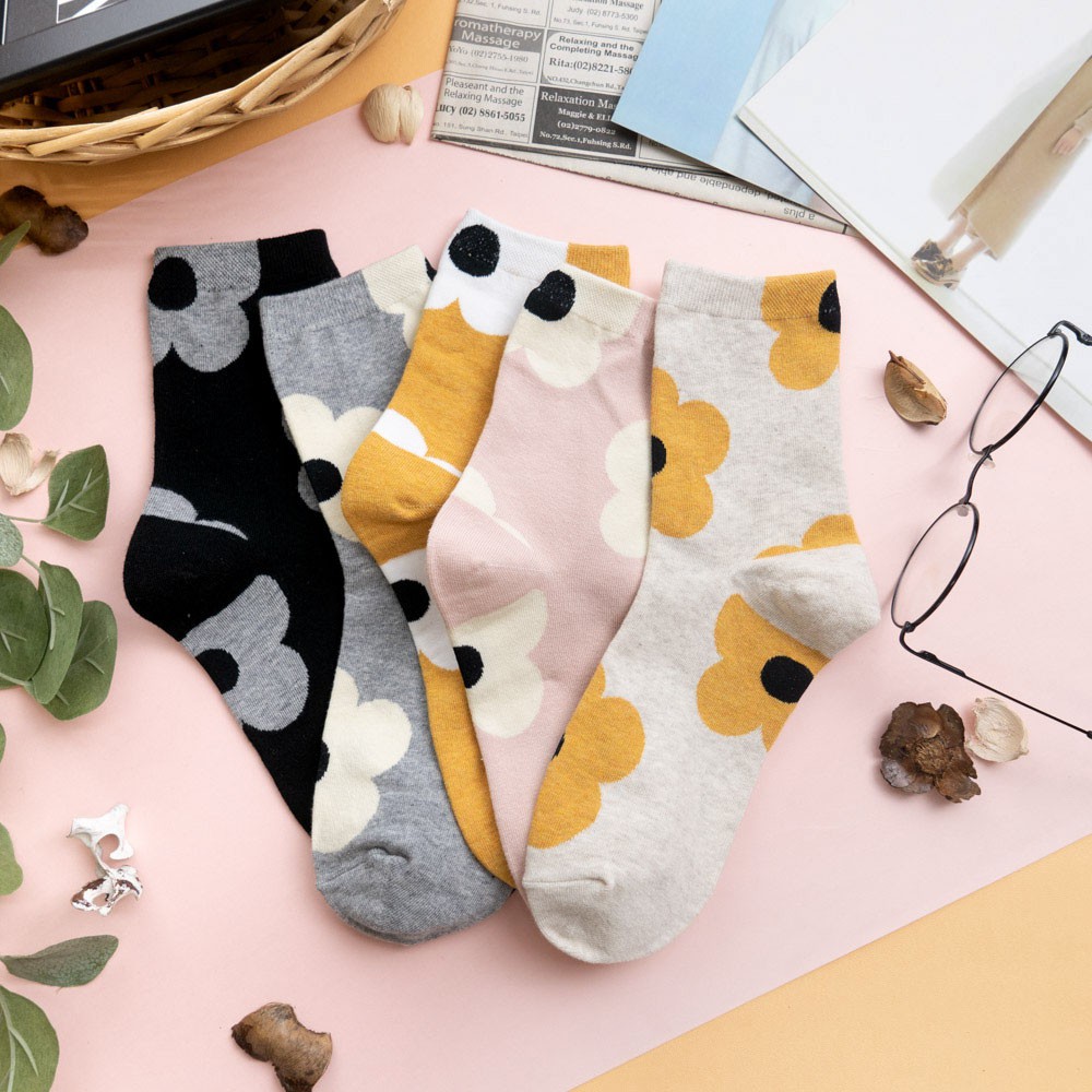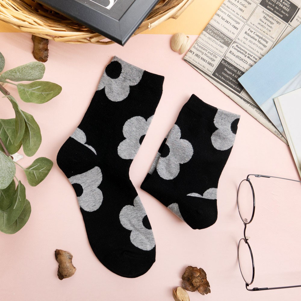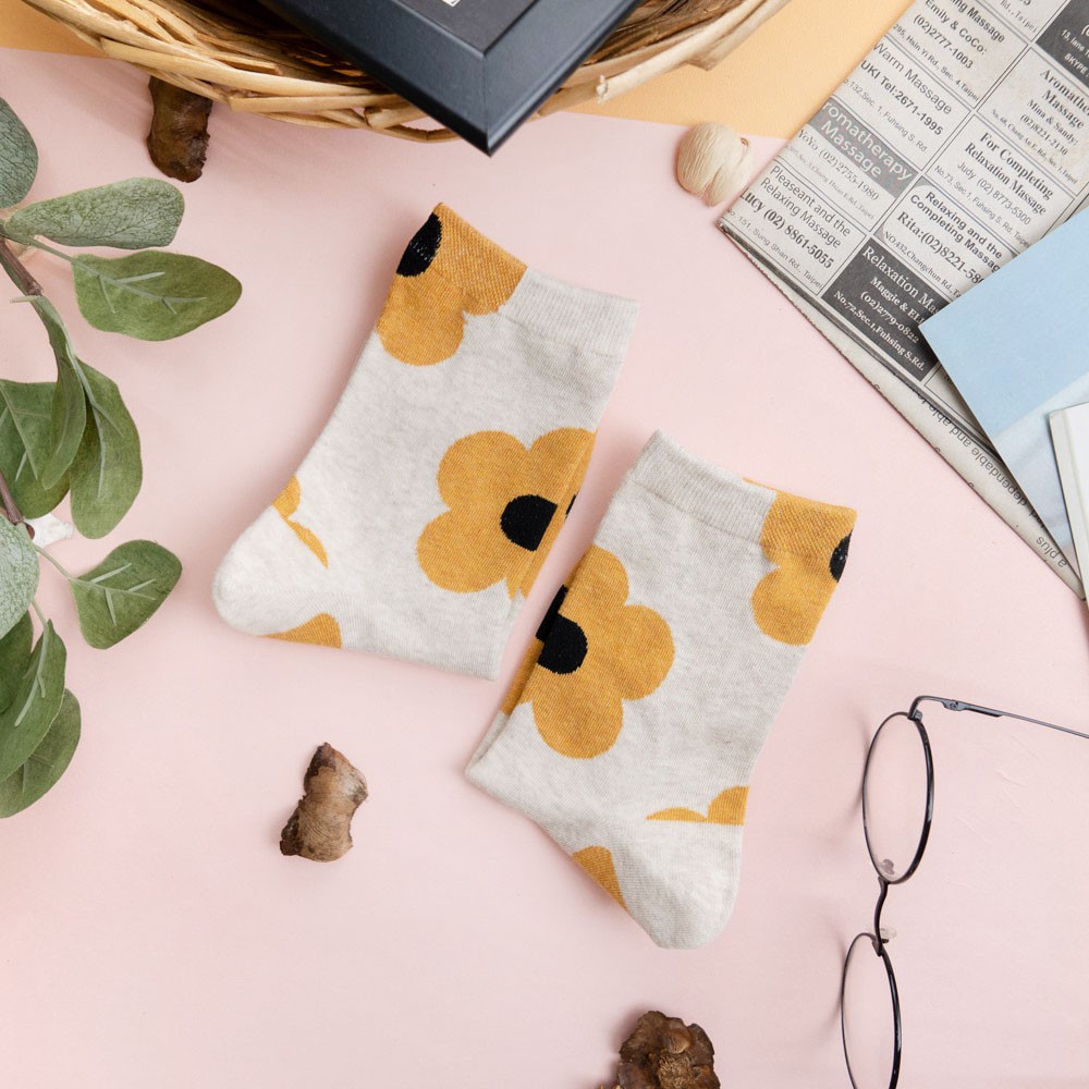 阿華有事嗎AUHA 韓國襪子 滿版大花朵中筒襪 K0907 少女襪 韓妞必備長襪 百搭純棉襪