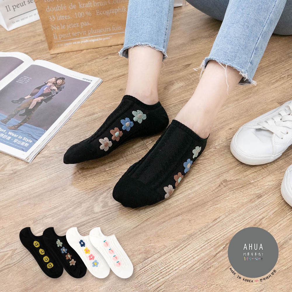 AUHA阿華有事嗎 韓國襪子 側邊直條小圖麻花紋船型襪【K1250】 百搭純棉襪