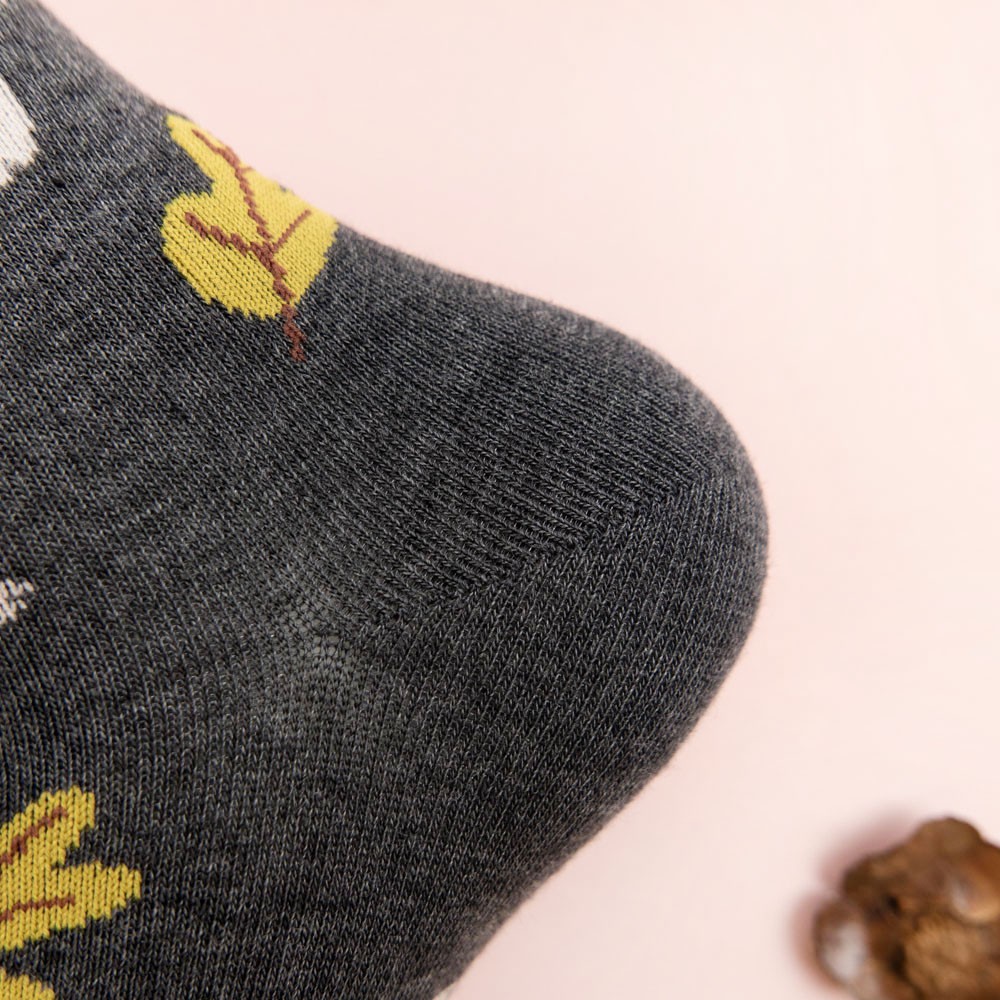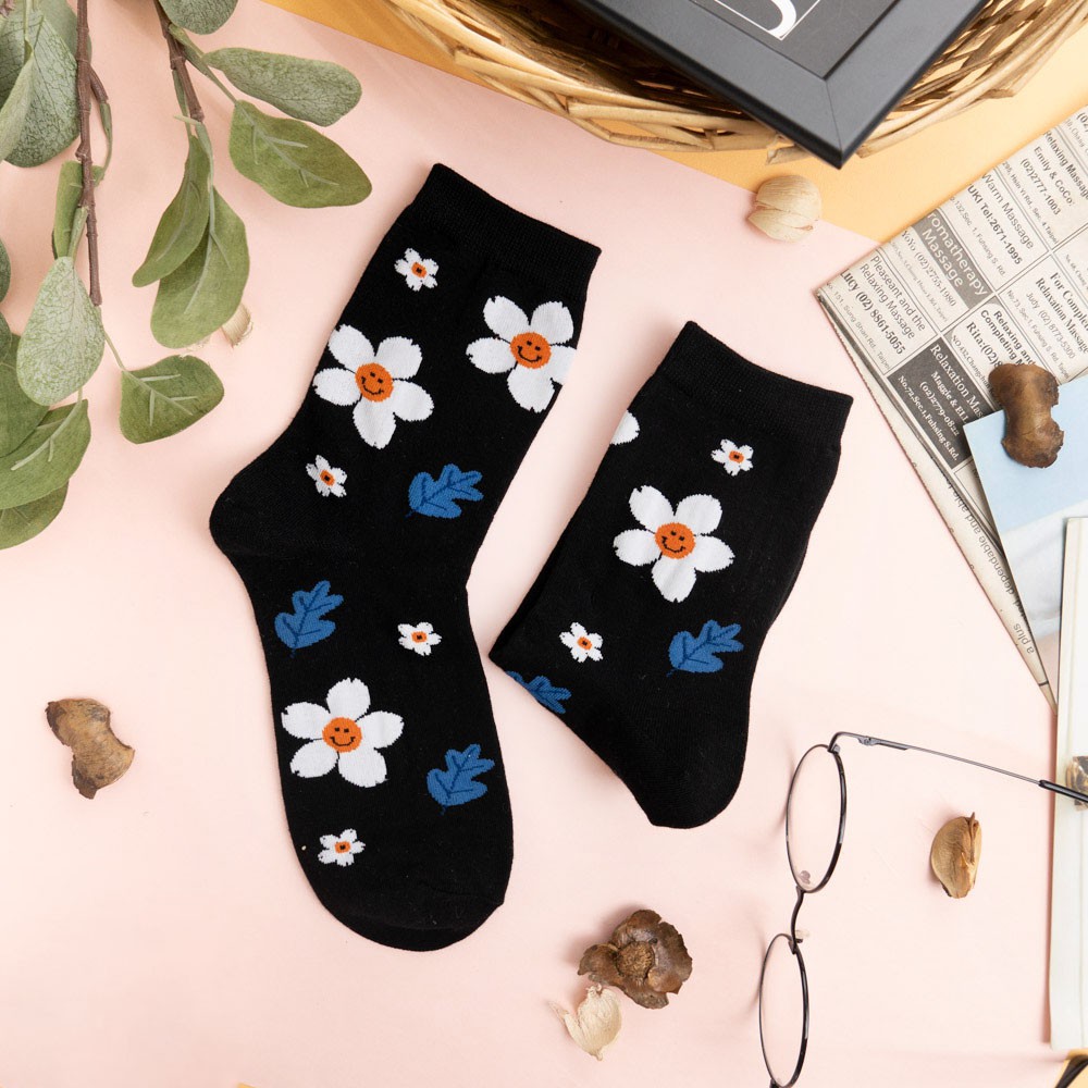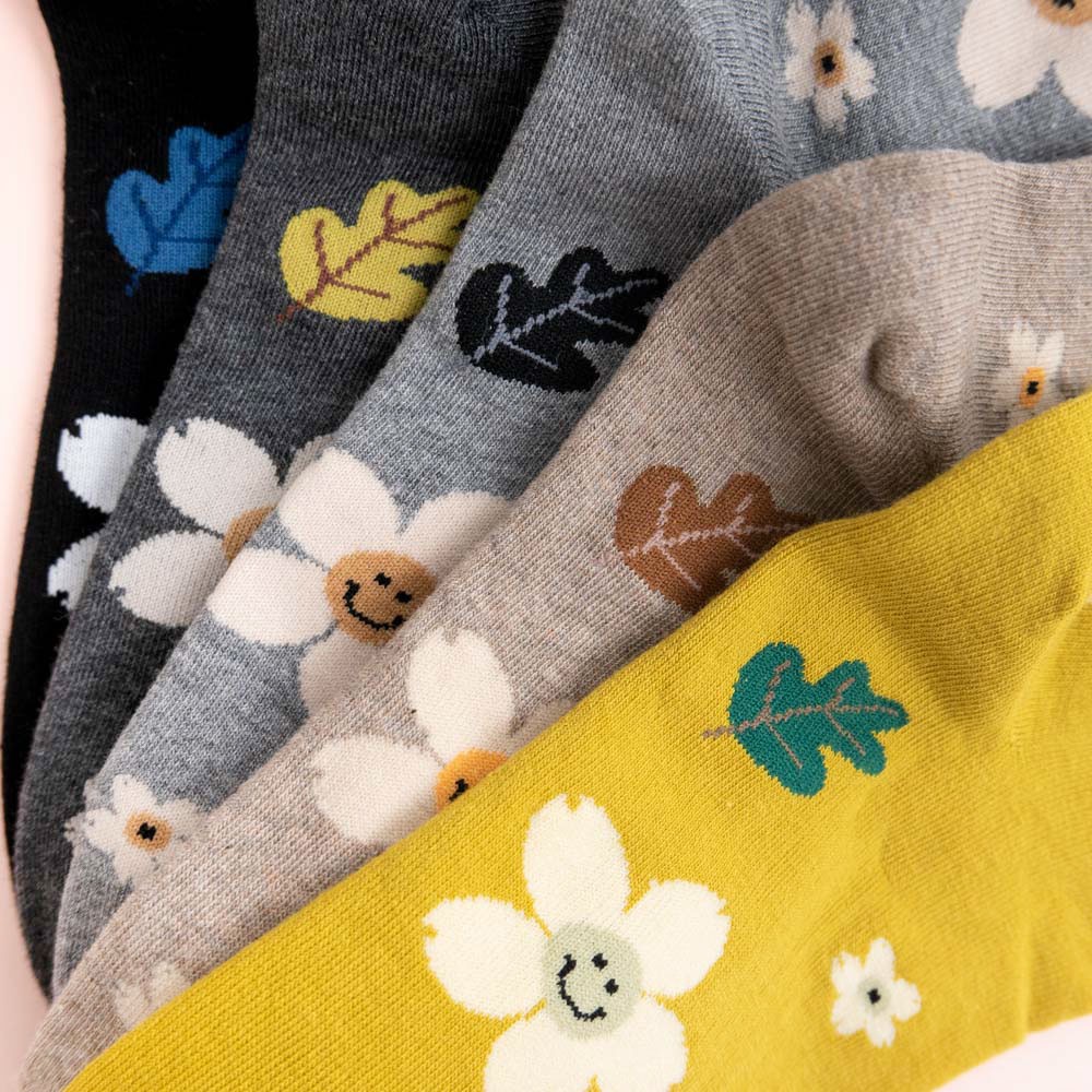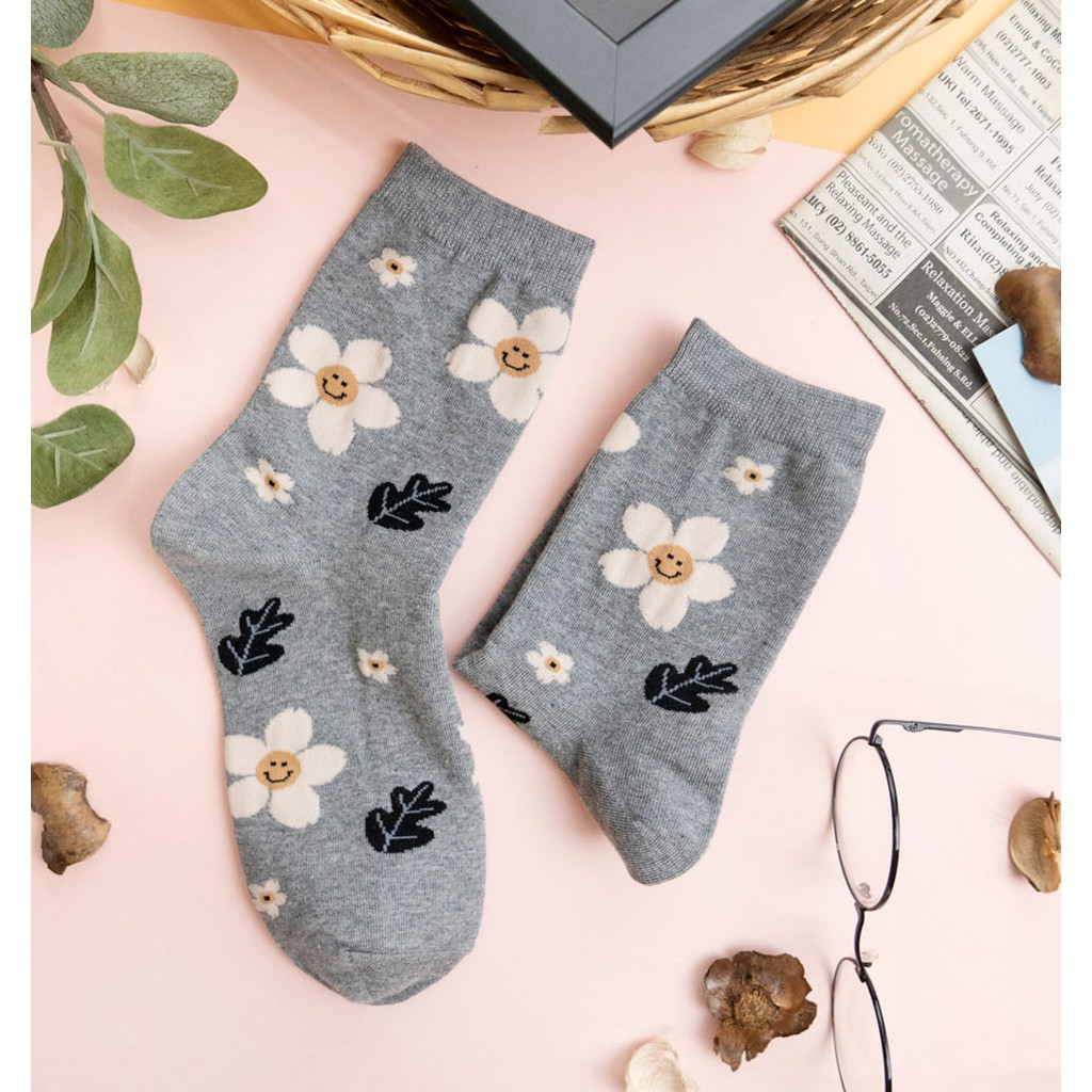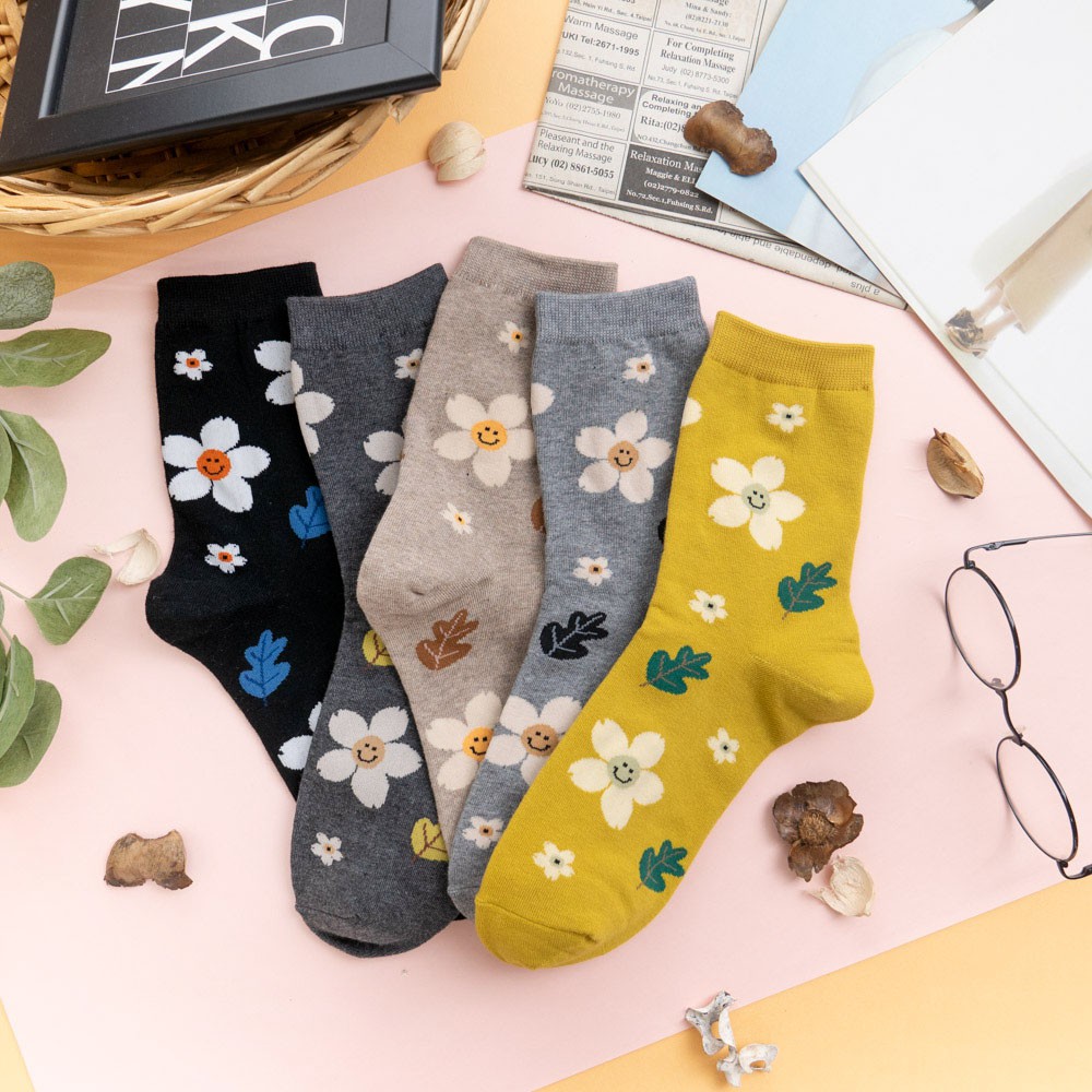 阿華有事嗎AUHA 韓國襪子 落葉笑臉花朵中筒襪 K0906 少女襪 韓妞必備長襪 百搭純棉襪