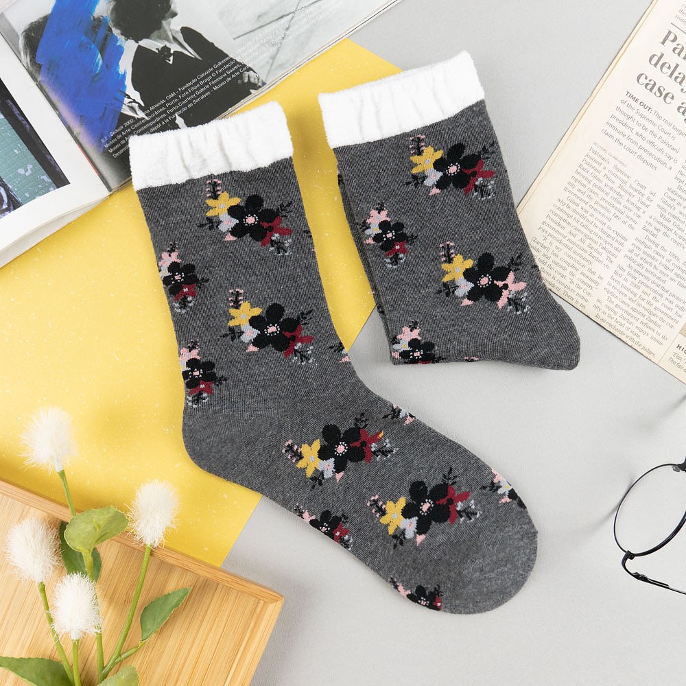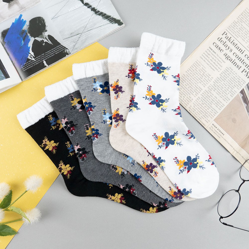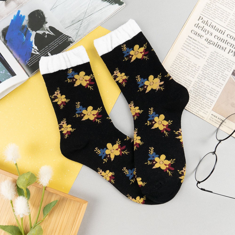 AHUA阿華有事嗎 韓國襪子 毛毛襪口滿版花朵中筒襪 K1010 少女襪 韓妞必備長襪 百搭純棉襪
