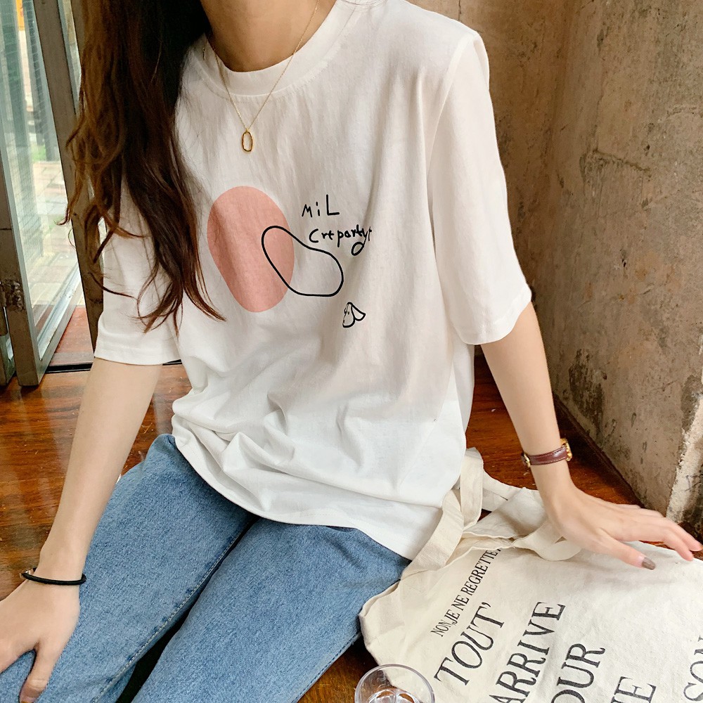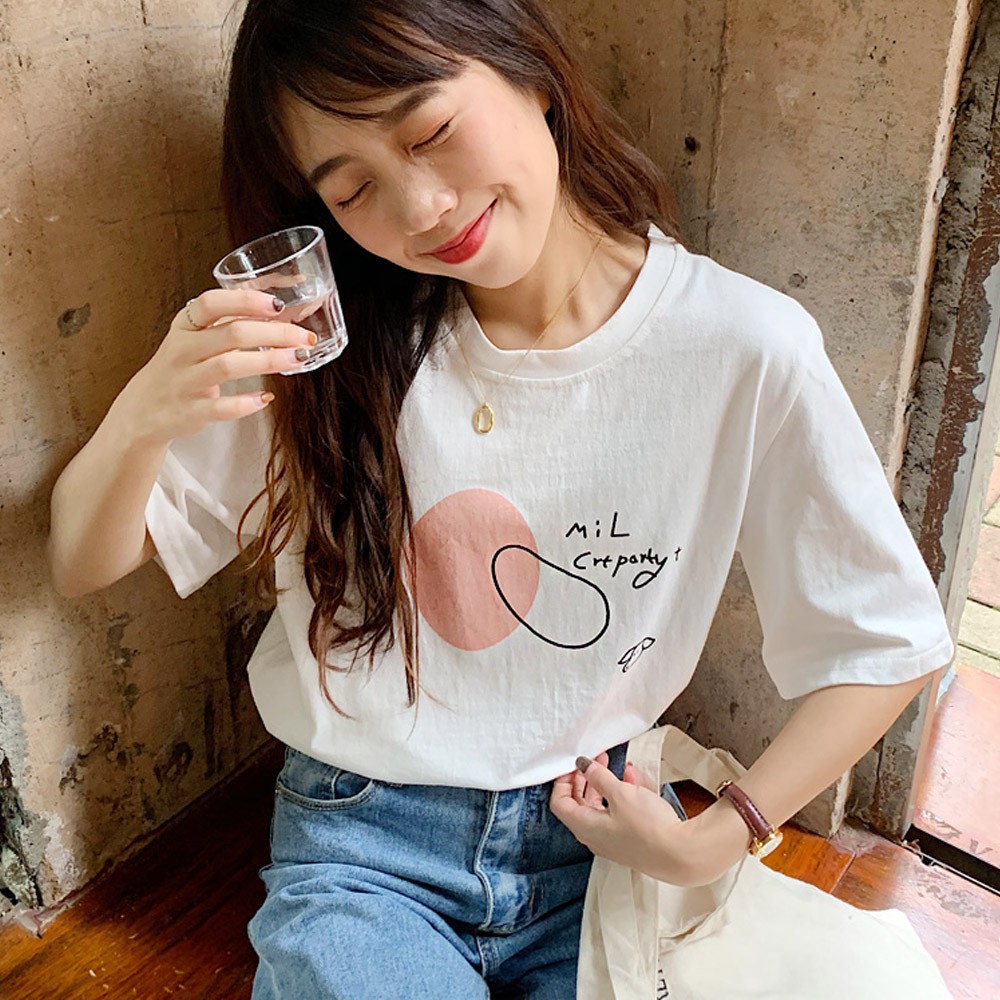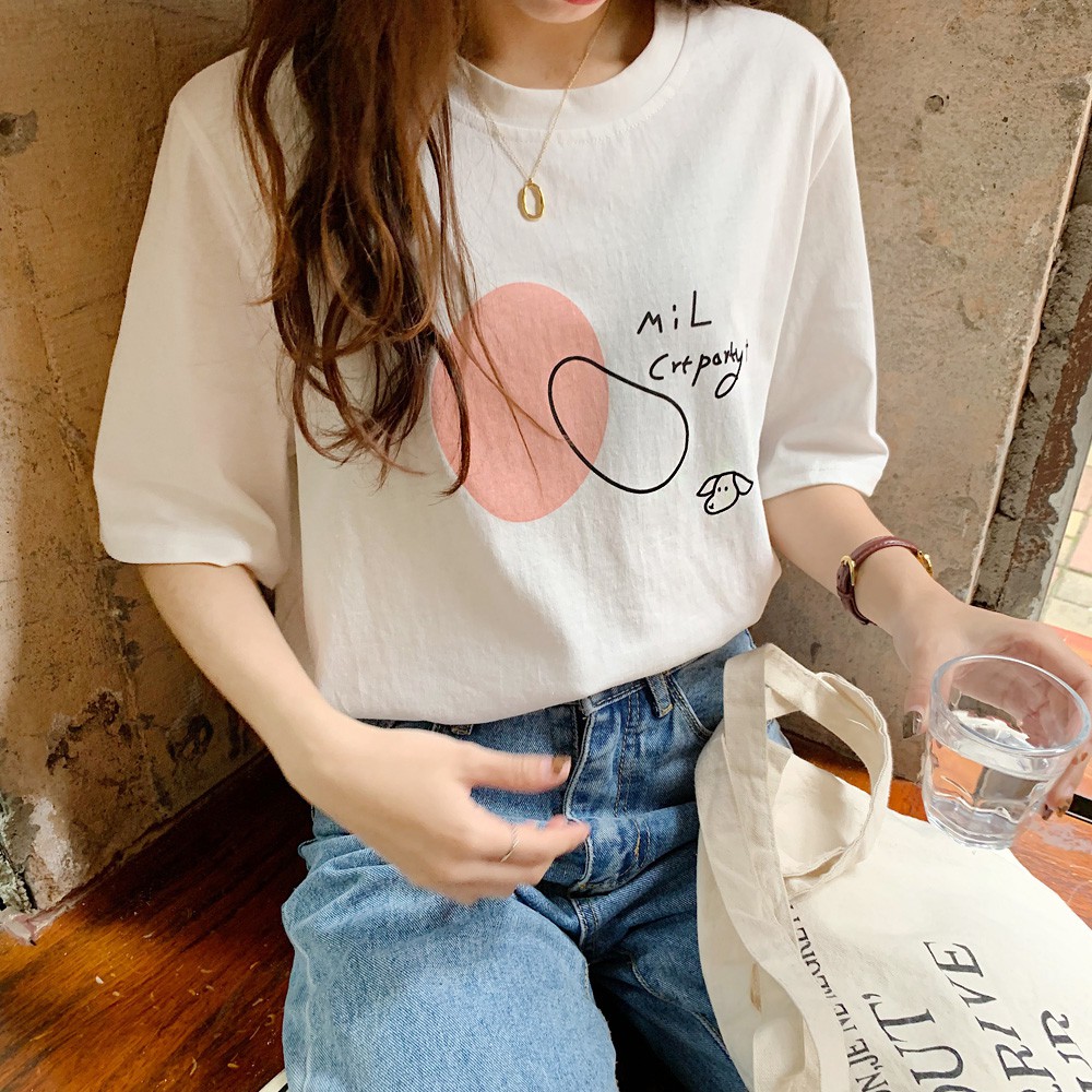 阿華有事嗎AHUA 韓系女裝 手繪小狗字母短袖T恤【C1855】 韓妞必備 百搭顯瘦基本款
