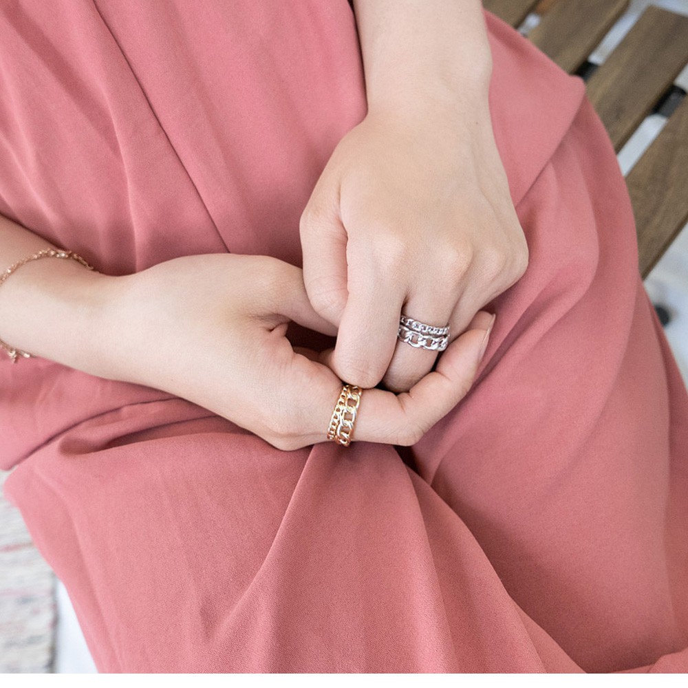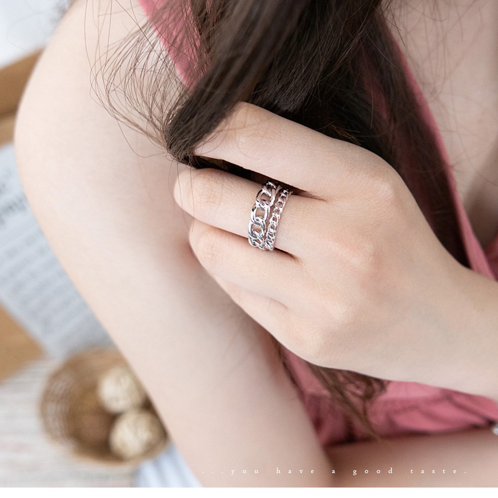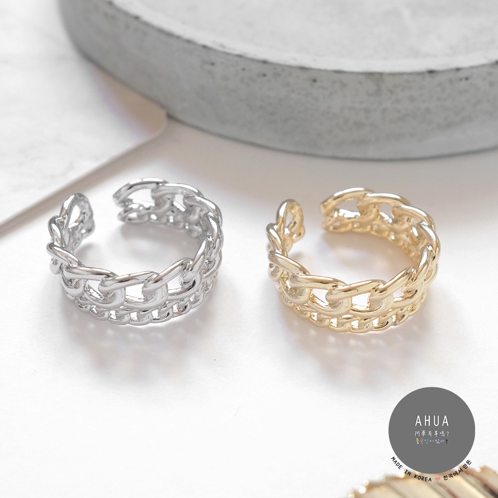 AUHA阿華有事嗎 韓國飾品 個性鍊條雙圈戒指【A0610】正韓 時尚 Ins風 氣質 簡約 百搭 韓妞必備 開口戒
