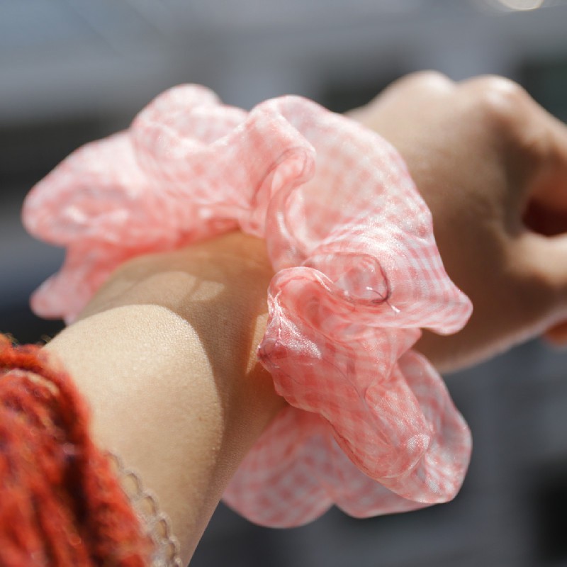 阿華有事嗎AUHA 韓系女裝配件 日系格紋雪紡髮圈 E0011 清新 可愛 韓妞必備 大腸圈 百搭 基本款 髮飾 頭飾