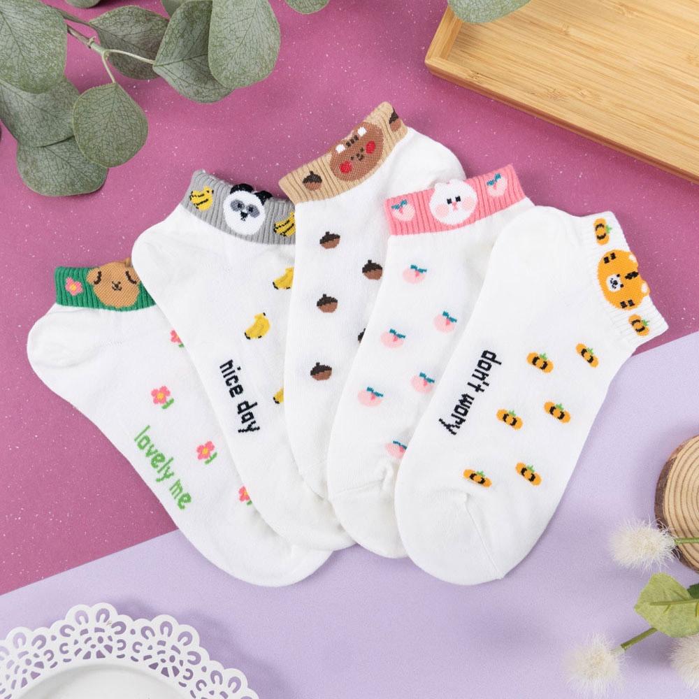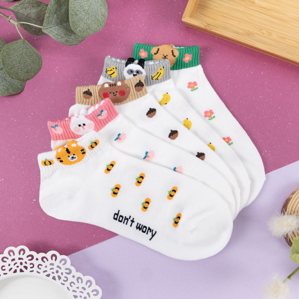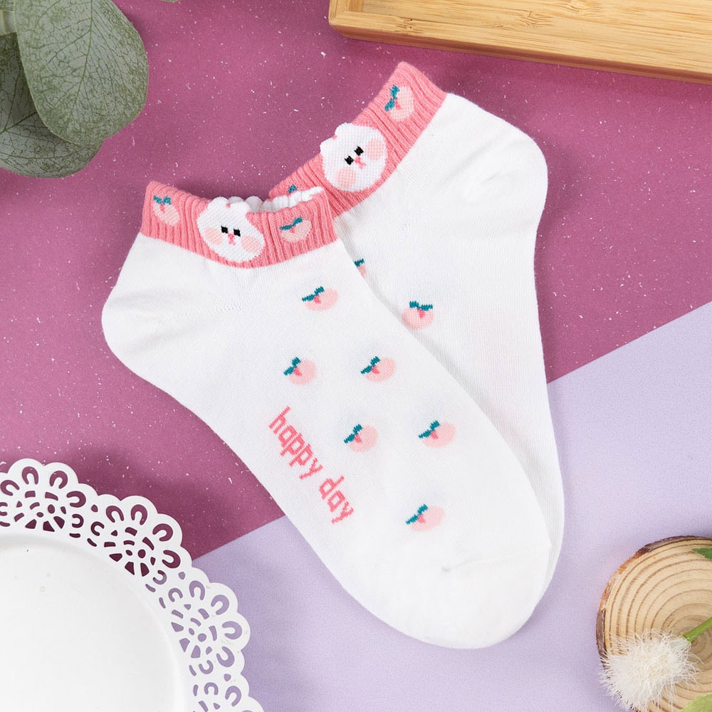 AUHA阿華有事嗎 韓國襪子 立體耳朵動物襪口拼色短襪【K1249】 百搭純棉襪