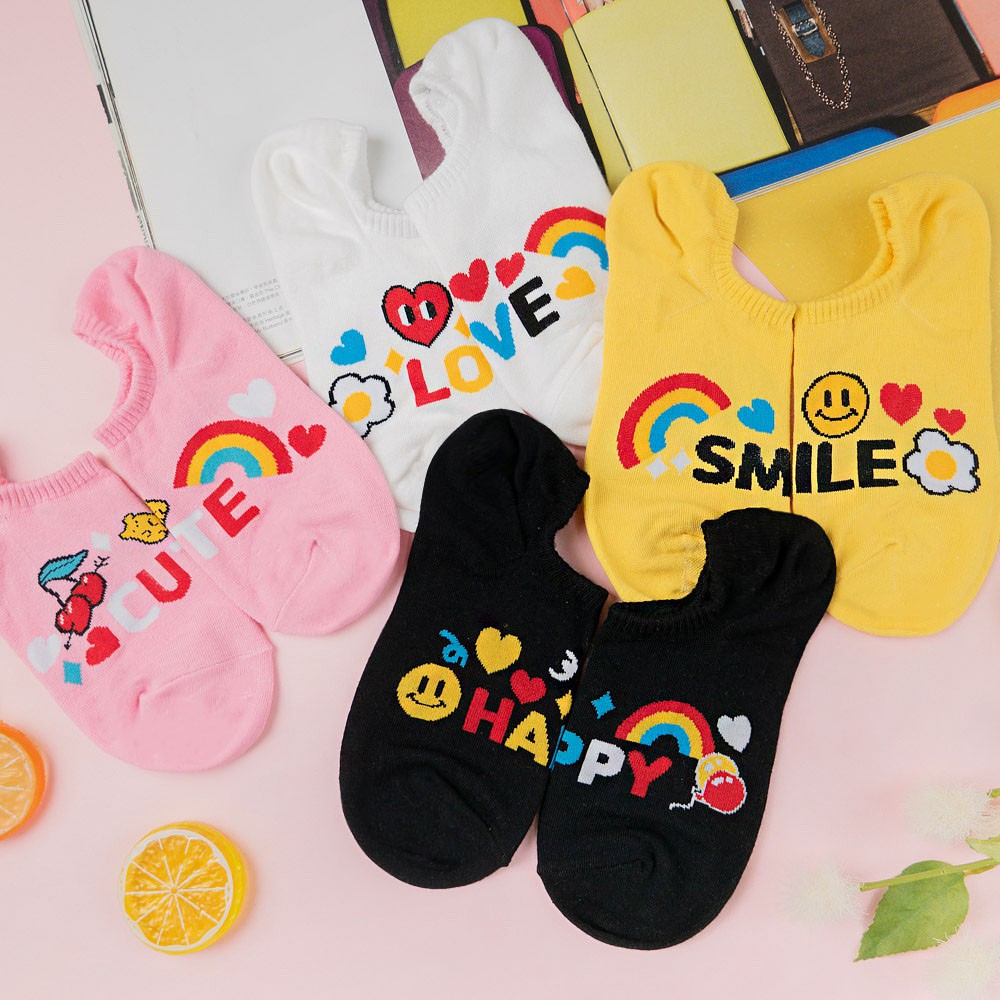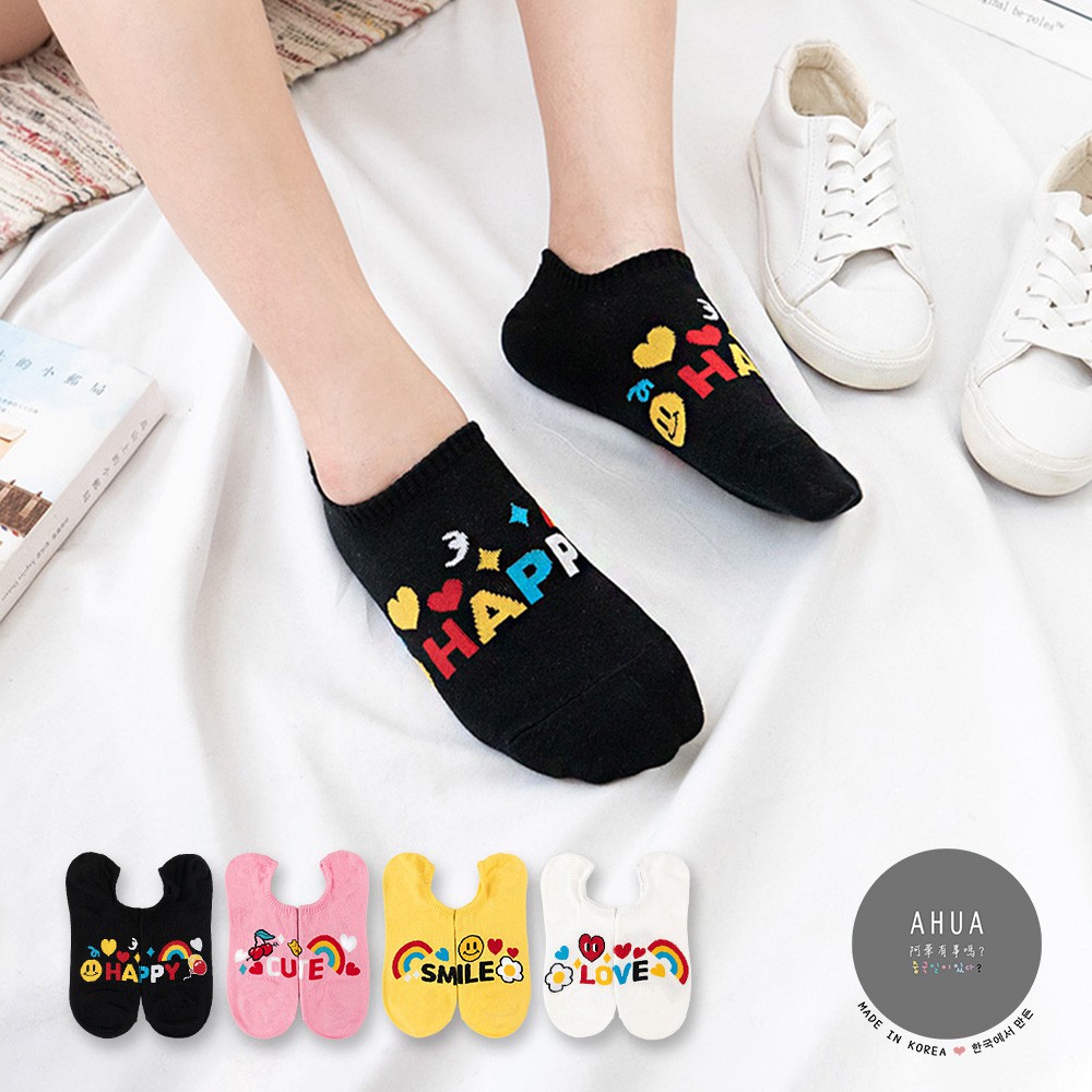 阿華有事嗎AUHA 韓國襪子 繽紛英文插圖船型襪【K1166】少女襪 韓妞必備長襪 百搭純棉襪