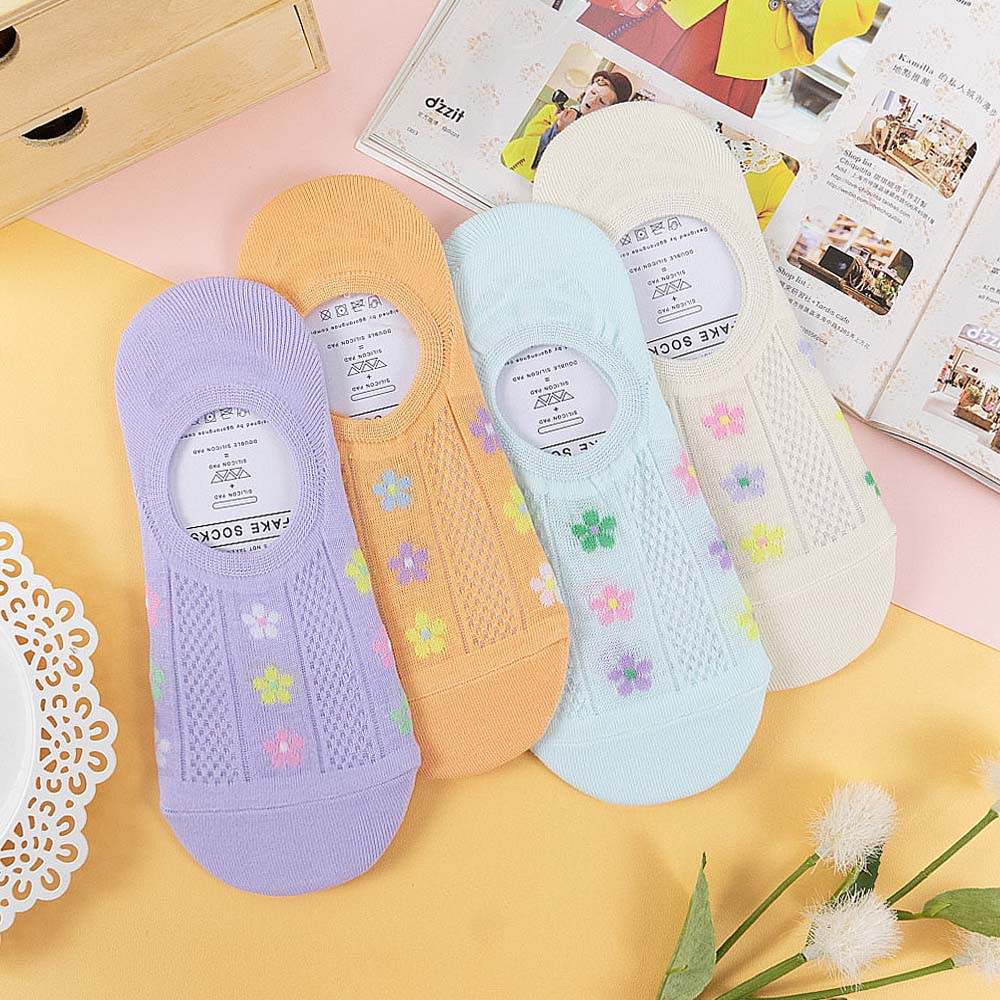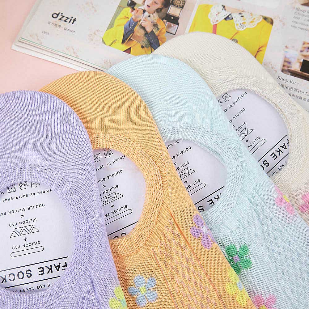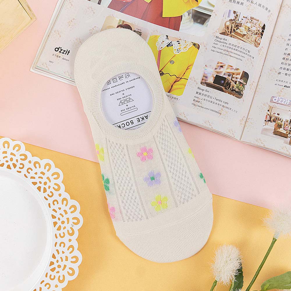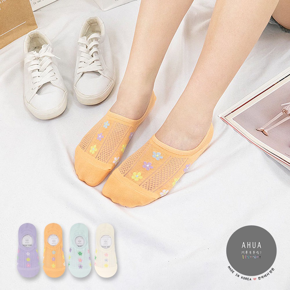 阿華有事嗎AUHA 韓國襪子 直條小花朵網眼隱形襪【K1195】 少女襪 韓妞必備長襪 百搭純棉襪