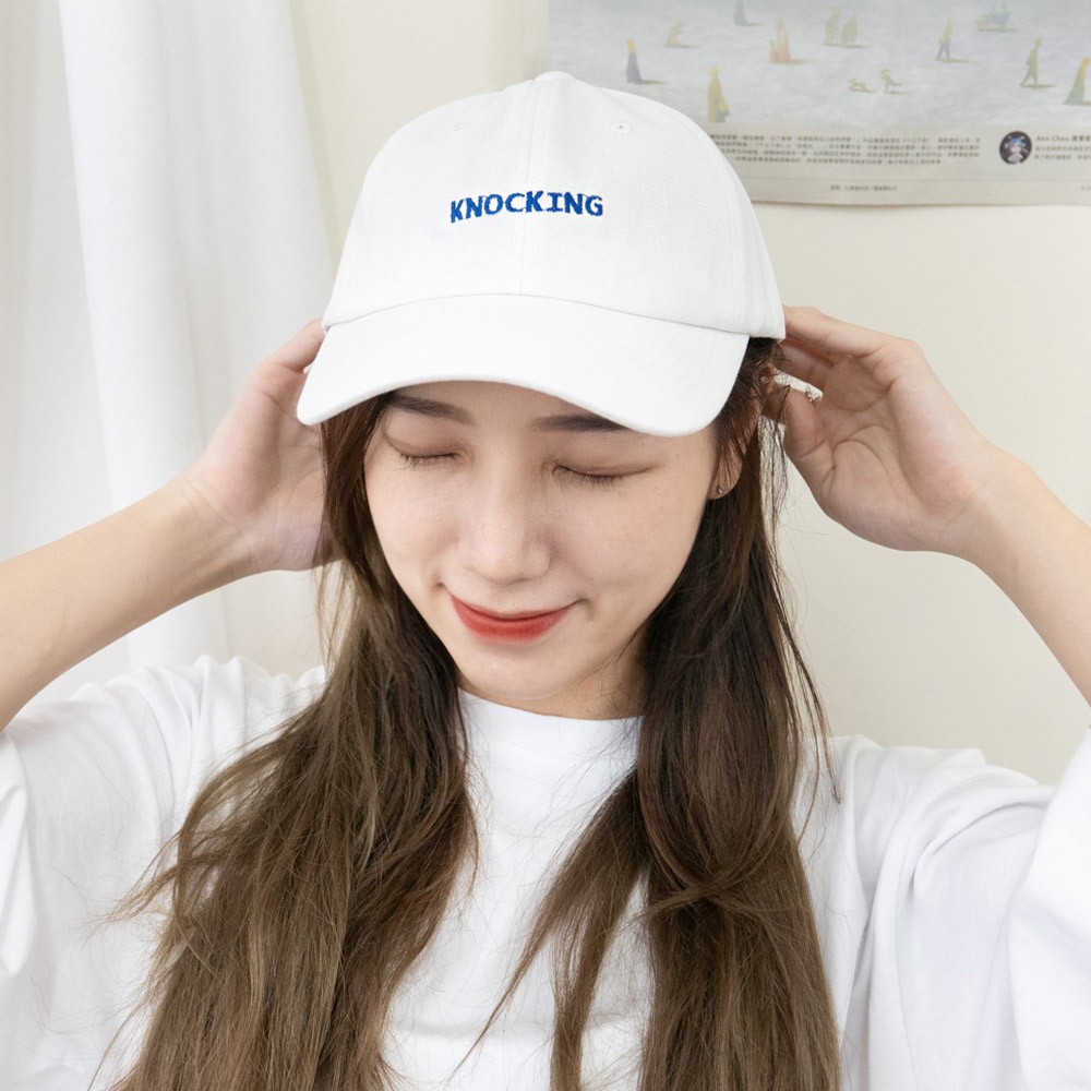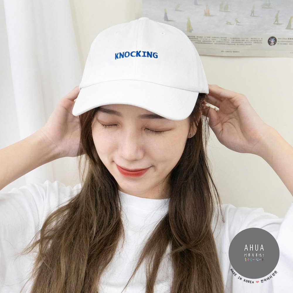 AUHA阿華有事嗎 韓系女裝配件 KNOCKING刺繡可調式棒球帽【H0018】棒球帽 韓妞必備 百搭顯瘦基本款