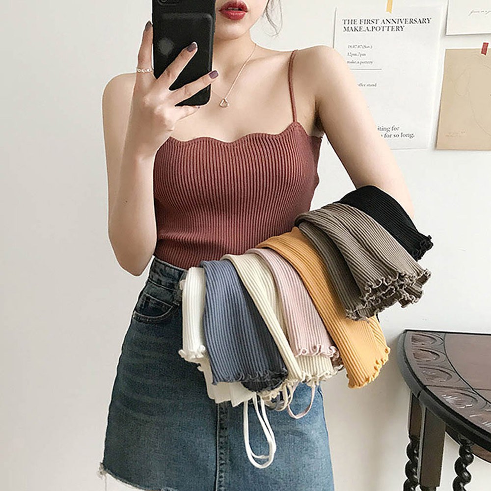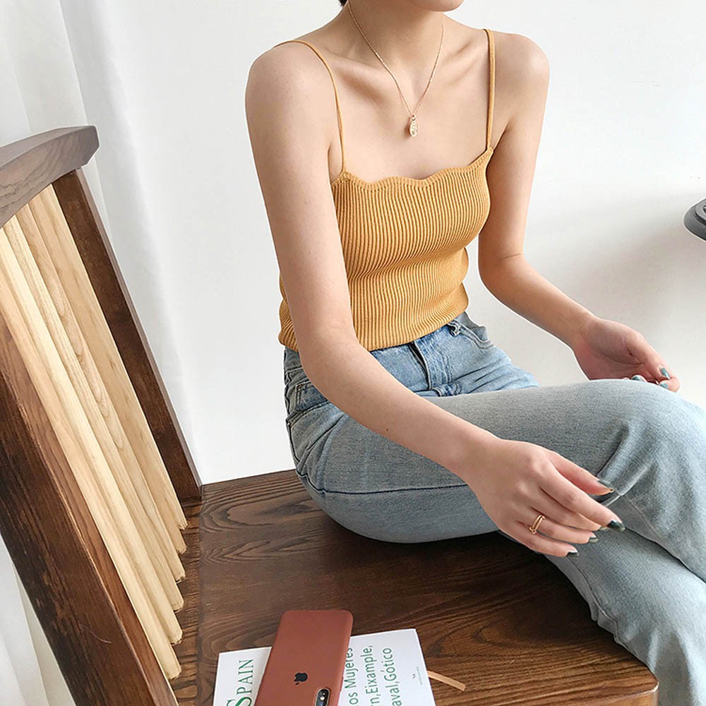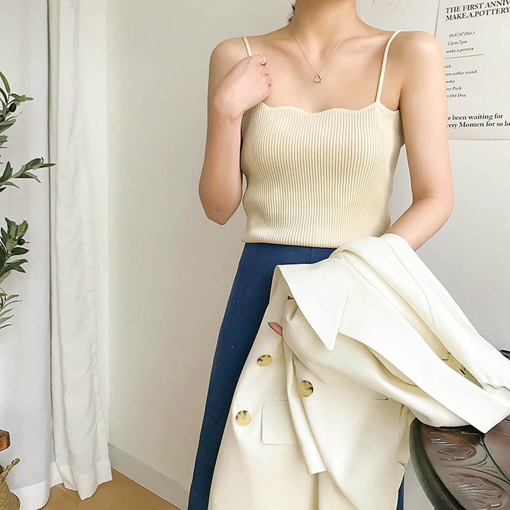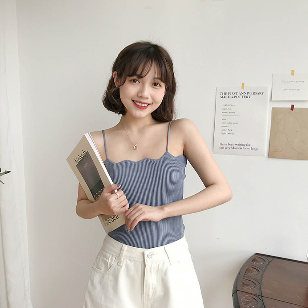 AHUA阿華有事嗎 波浪純色坑條細肩帶小背心 居家內搭小可愛【C1845】韓系女裝 韓妞必備 百搭顯瘦基本款