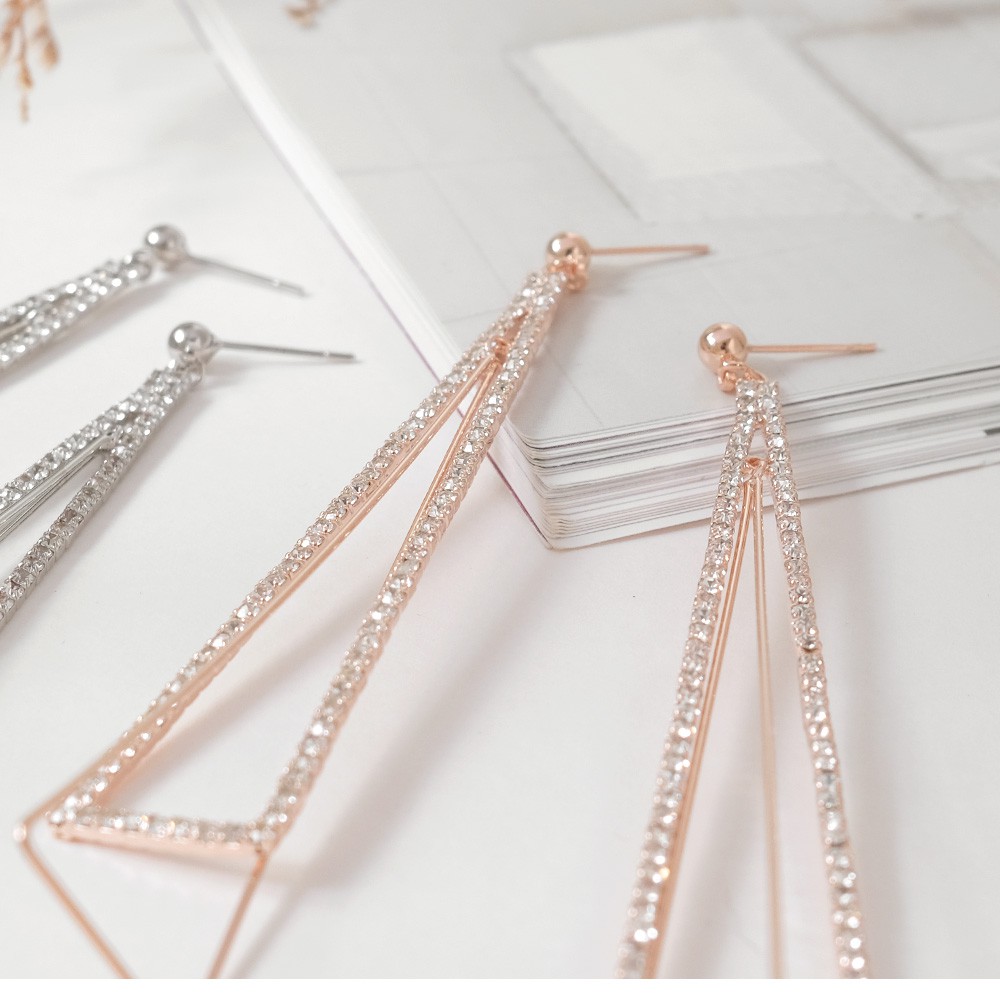 AUHA阿華有事嗎 韓國飾品 鑲鑽三角垂墜耳環【A0628】正韓 Ins風 氣質 百搭 水鑽 浪漫 墜式 耳針 韓妞必備