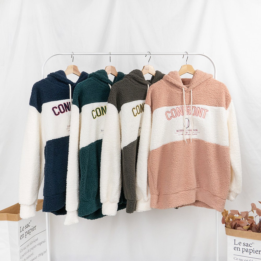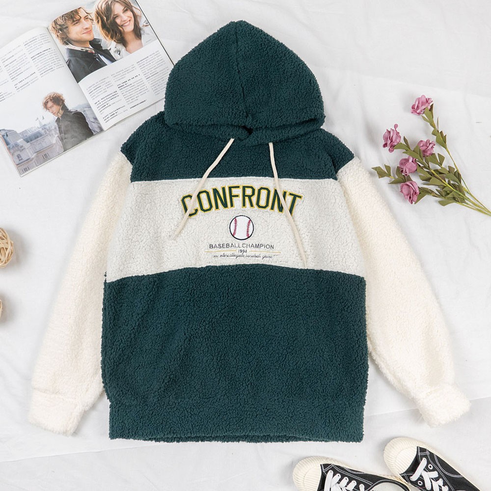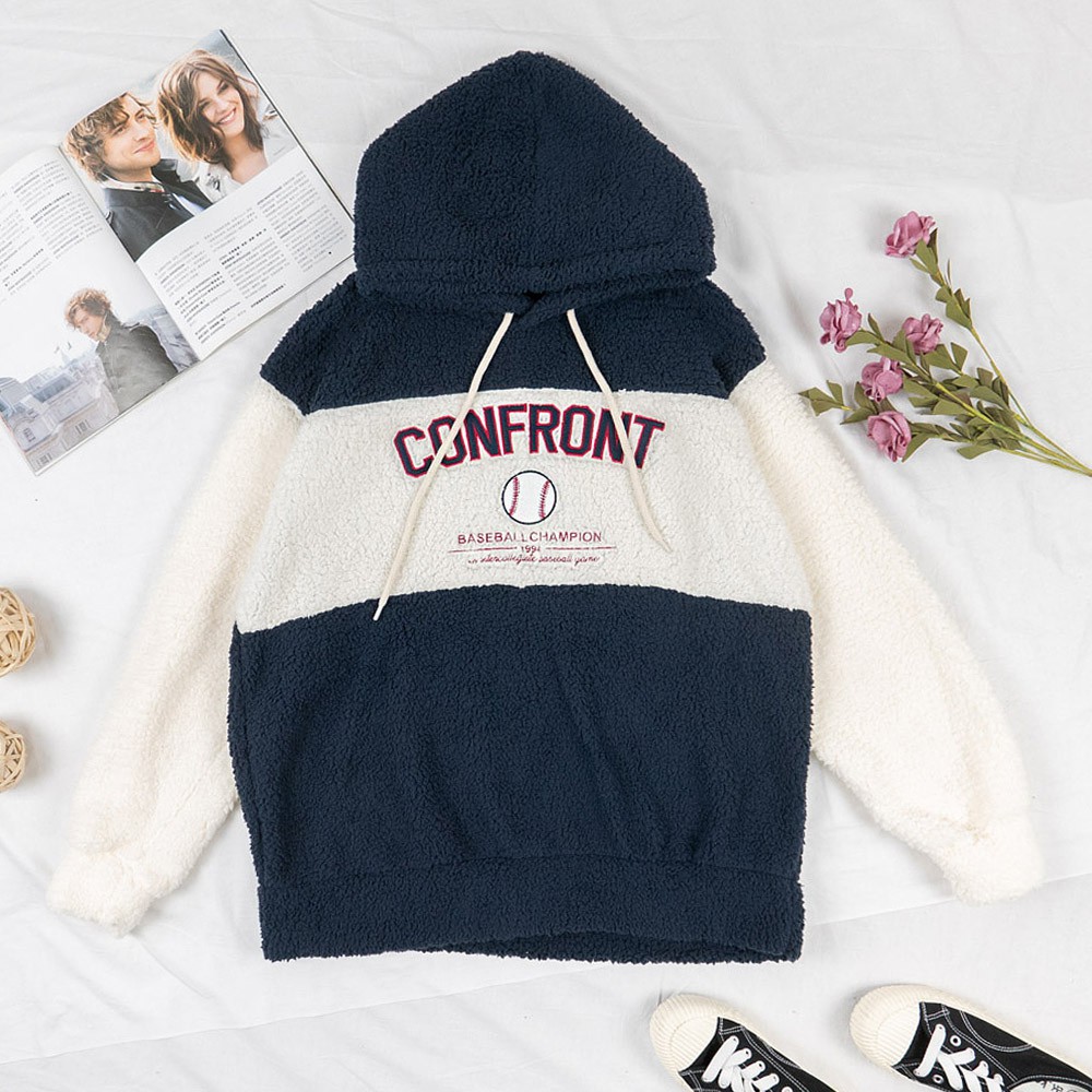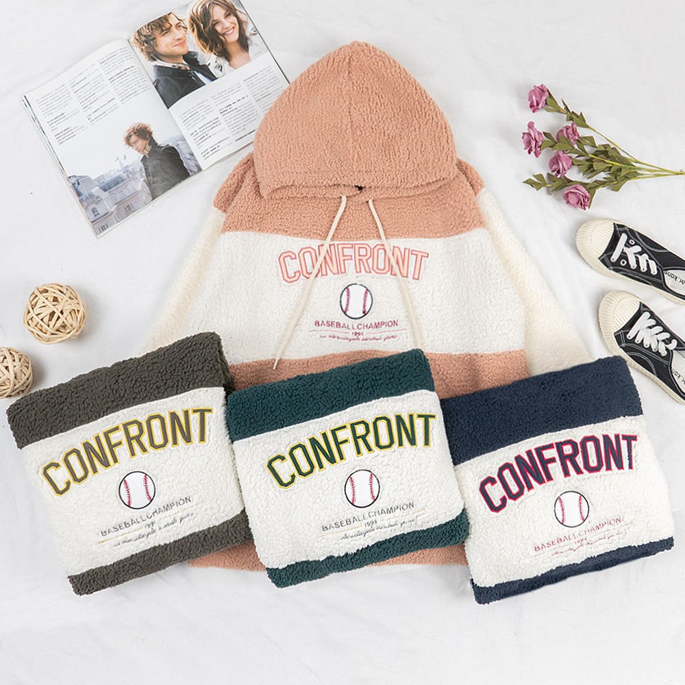 AHUA阿華有事嗎 正韓女裝 毛茸茸棒球刺繡連帽長袖上衣 C1612 韓妞必備 百搭顯瘦基本款