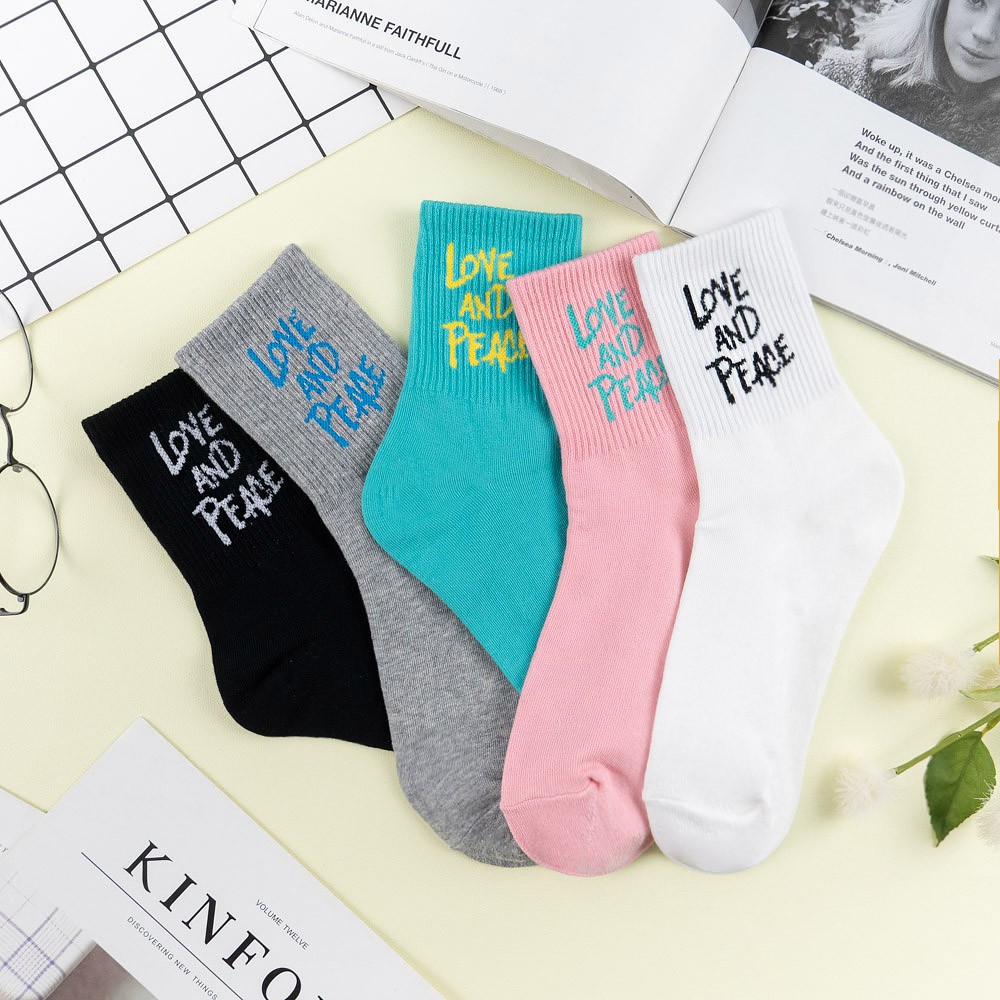 AHUA阿華有事嗎 韓國襪子 愛與和平中筒襪 K1015 少女襪 韓妞必備長襪 百搭純棉襪