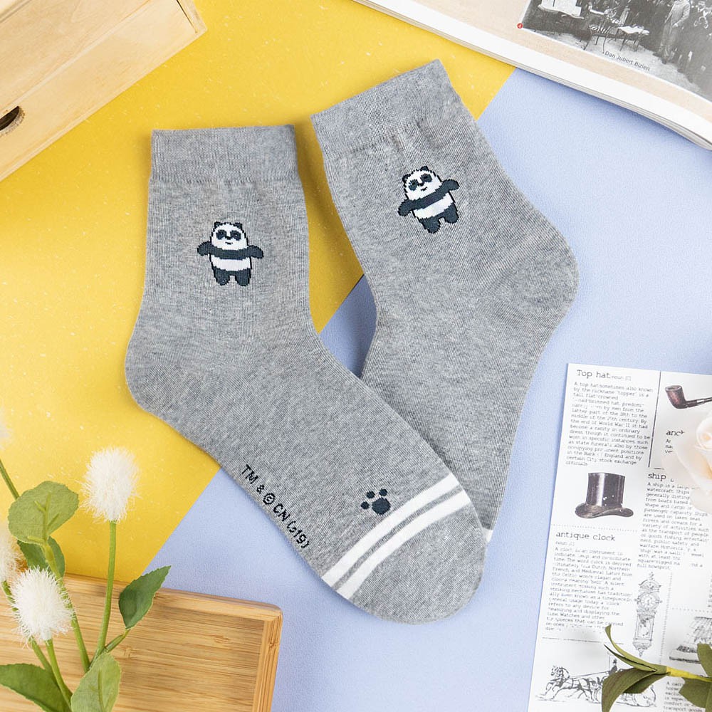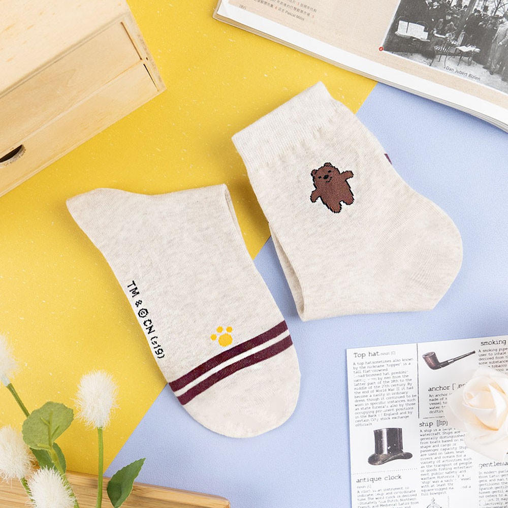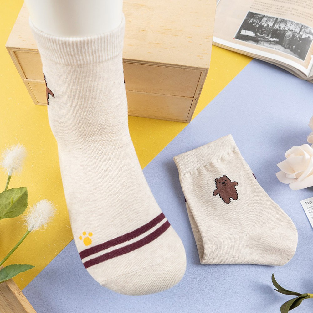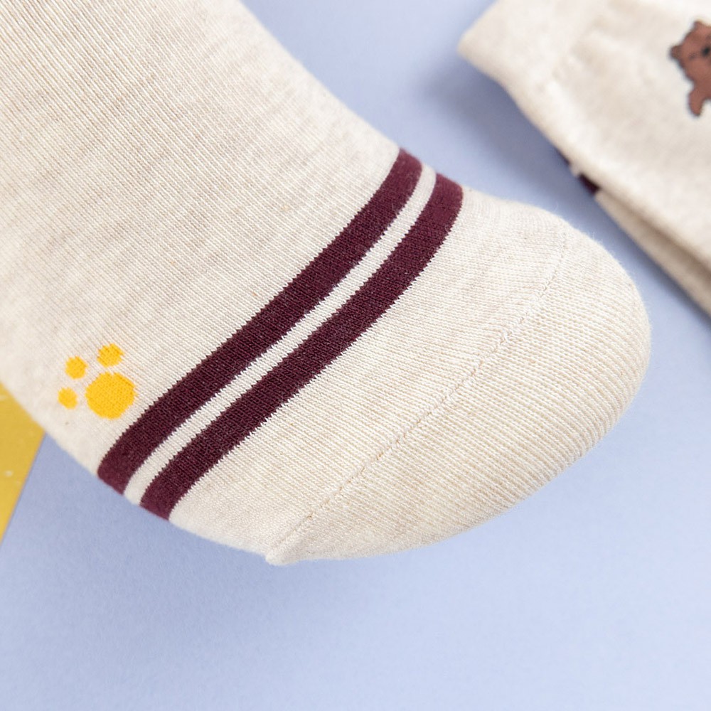 AHUA阿華有事嗎 韓國襪子 熊熊三兄弟全身小圖雙條紋中筒襪 K1019 少女襪 韓妞必備長襪 百搭純棉襪