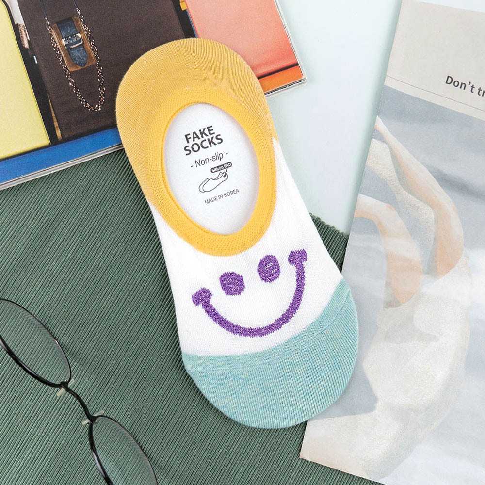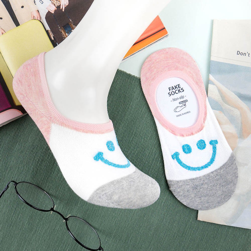 阿華有事嗎AUHA 韓國襪子 拼色金蔥微笑隱形襪【K1113】少女襪 韓妞必備長襪 百搭純棉襪