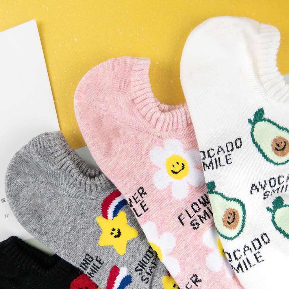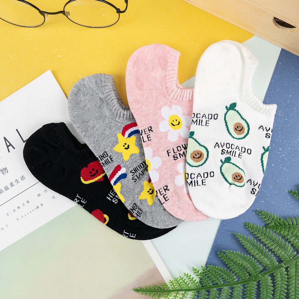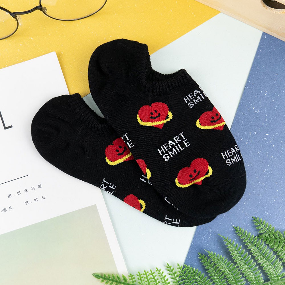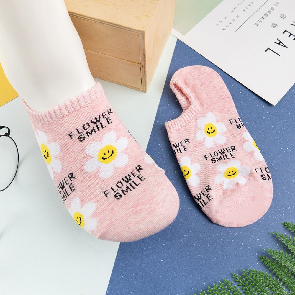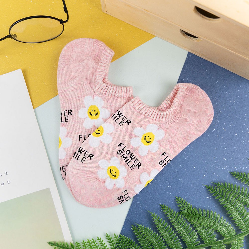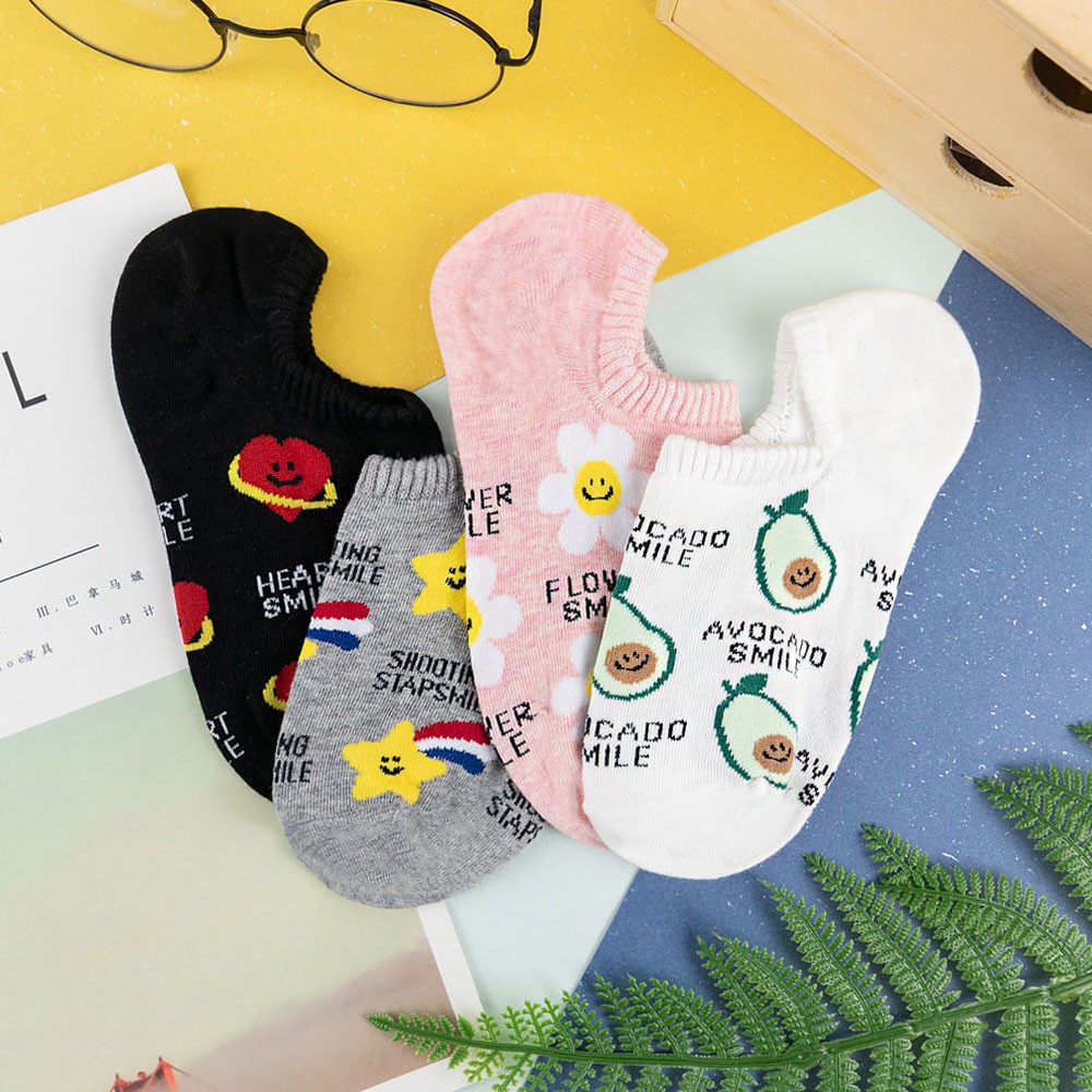 阿華有事嗎AUHA 韓國襪子 滿版微笑圖案英文船型襪 K1074 少女襪 韓妞必備長襪 百搭純棉襪