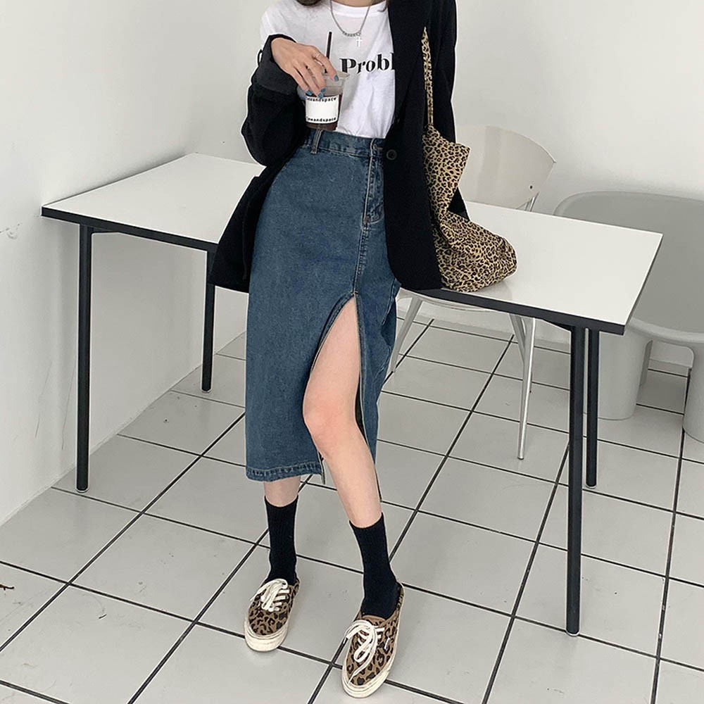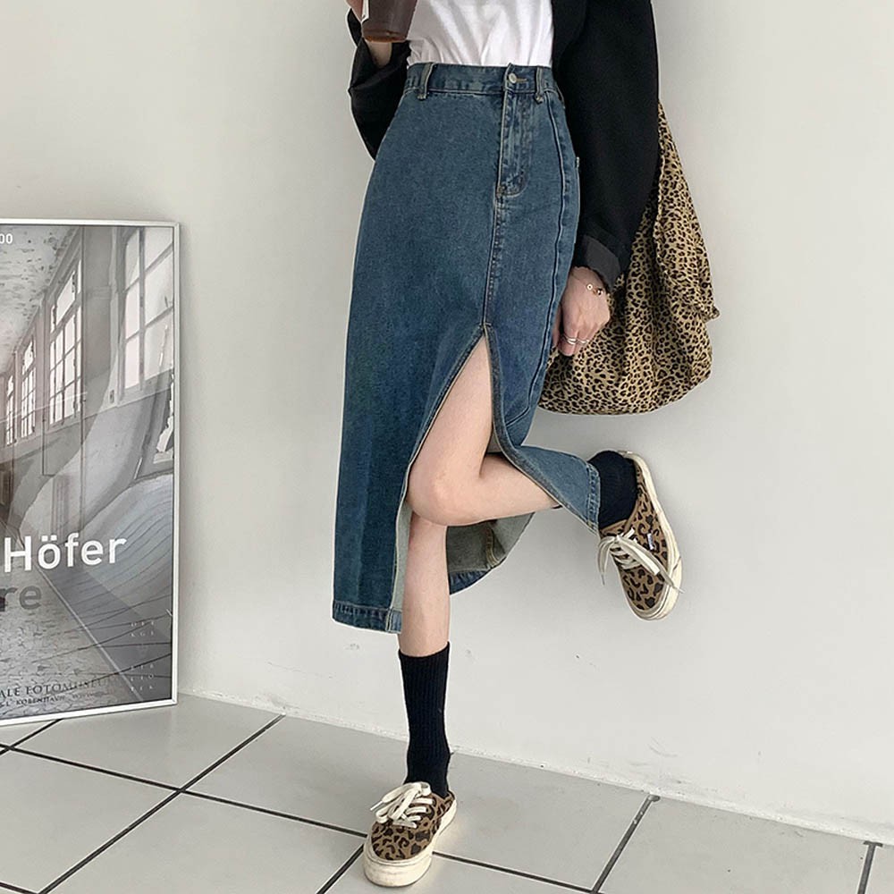 阿華有事嗎AHUA 韓系女裝 側開岔高腰牛仔長裙【C1841】 韓妞必備 百搭顯瘦基本款