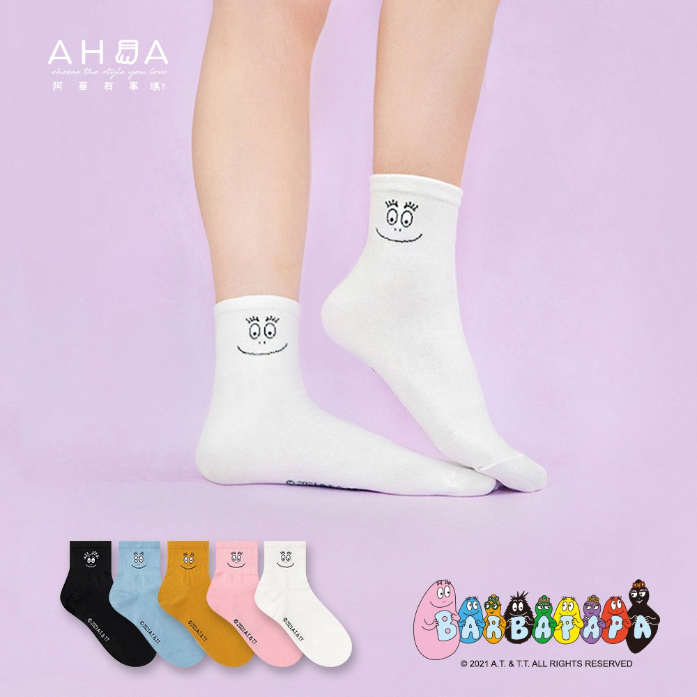 AHUA 阿華有事嗎 BARBAPAPA 泡泡先生全版大臉中筒襪 【R0004】 MIT台灣製造 正版授權