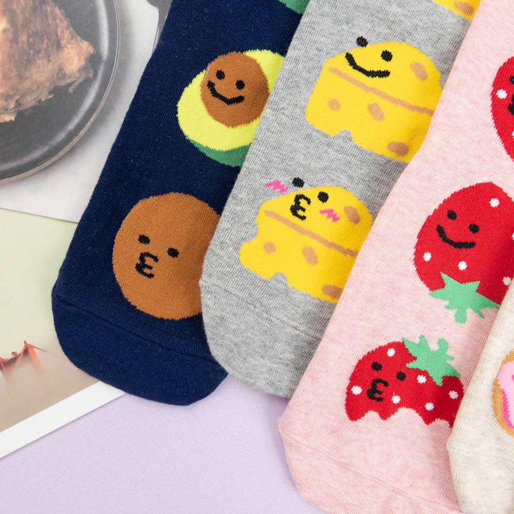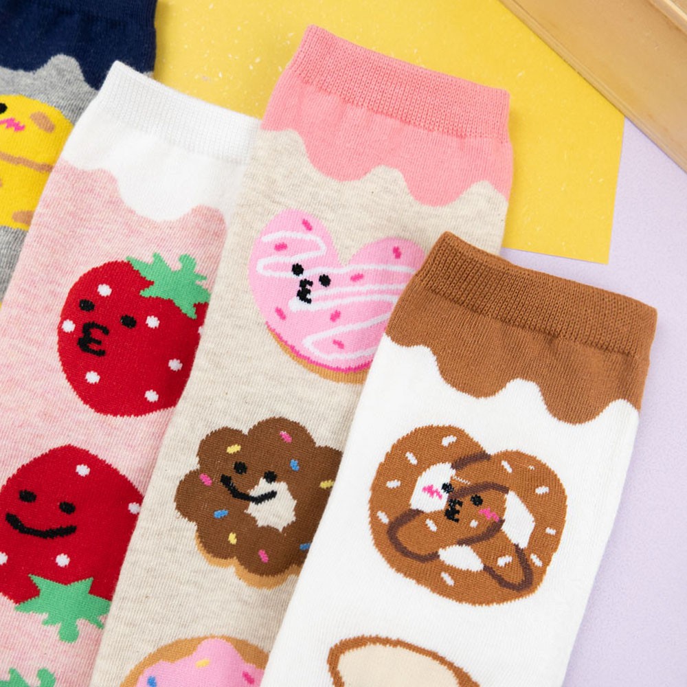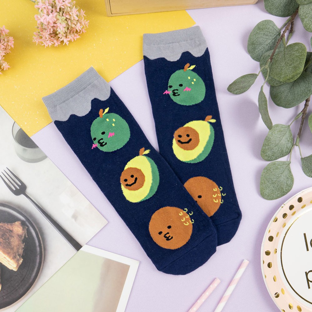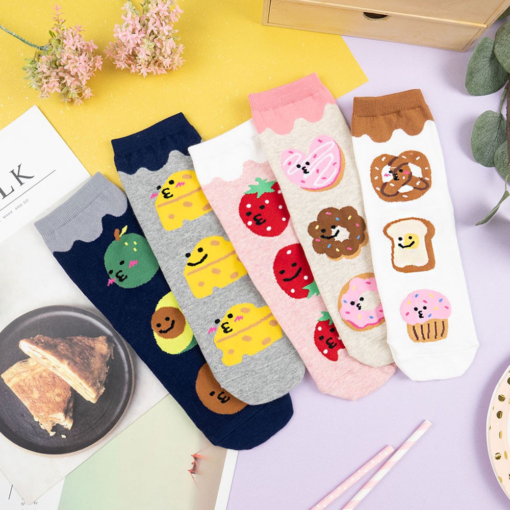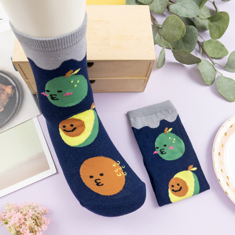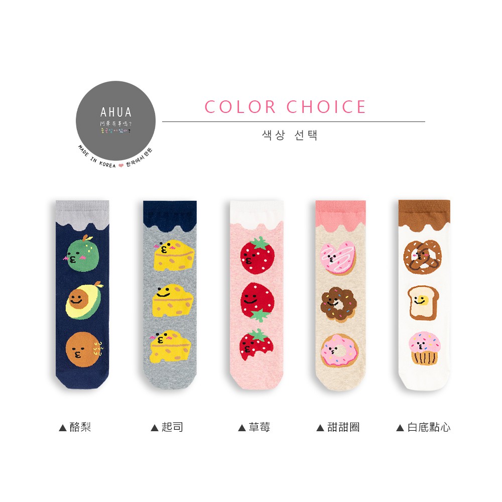 AHUA阿華有事嗎 韓國襪子 三個嘟嘟嘴食物大圖中筒襪 K0998 少女襪 韓妞必備長襪 百搭純棉襪