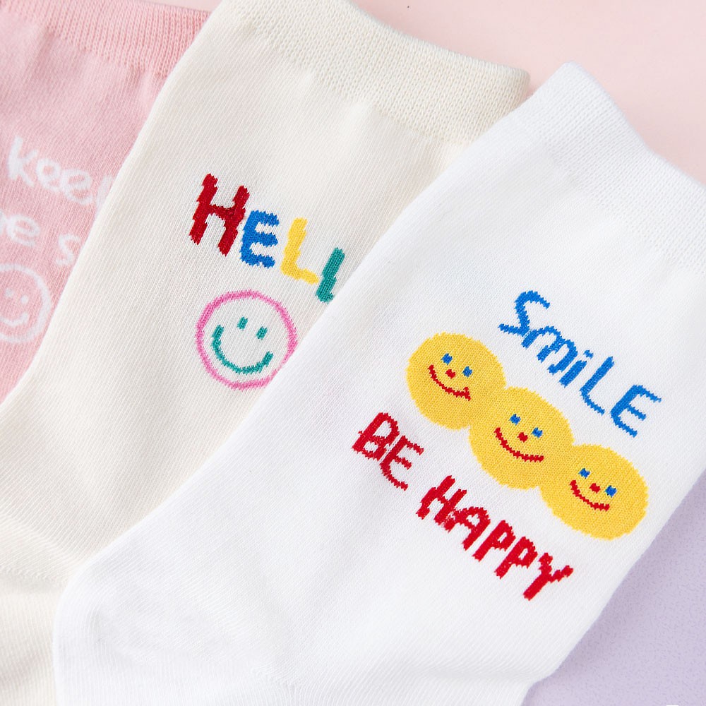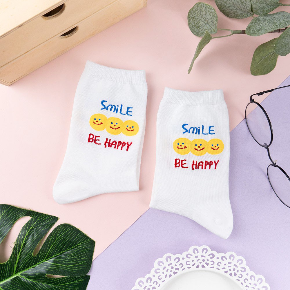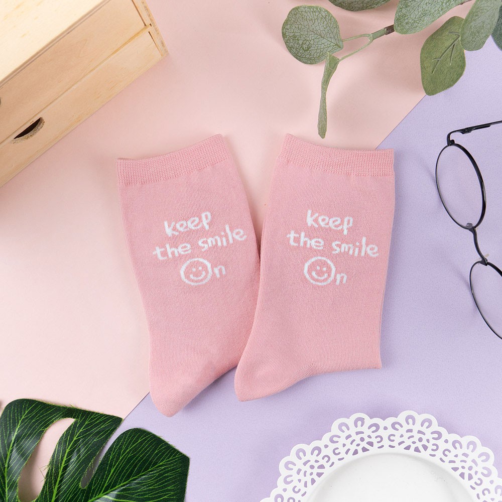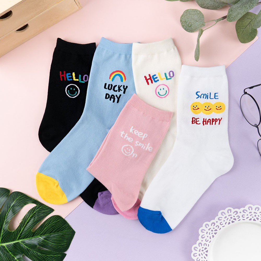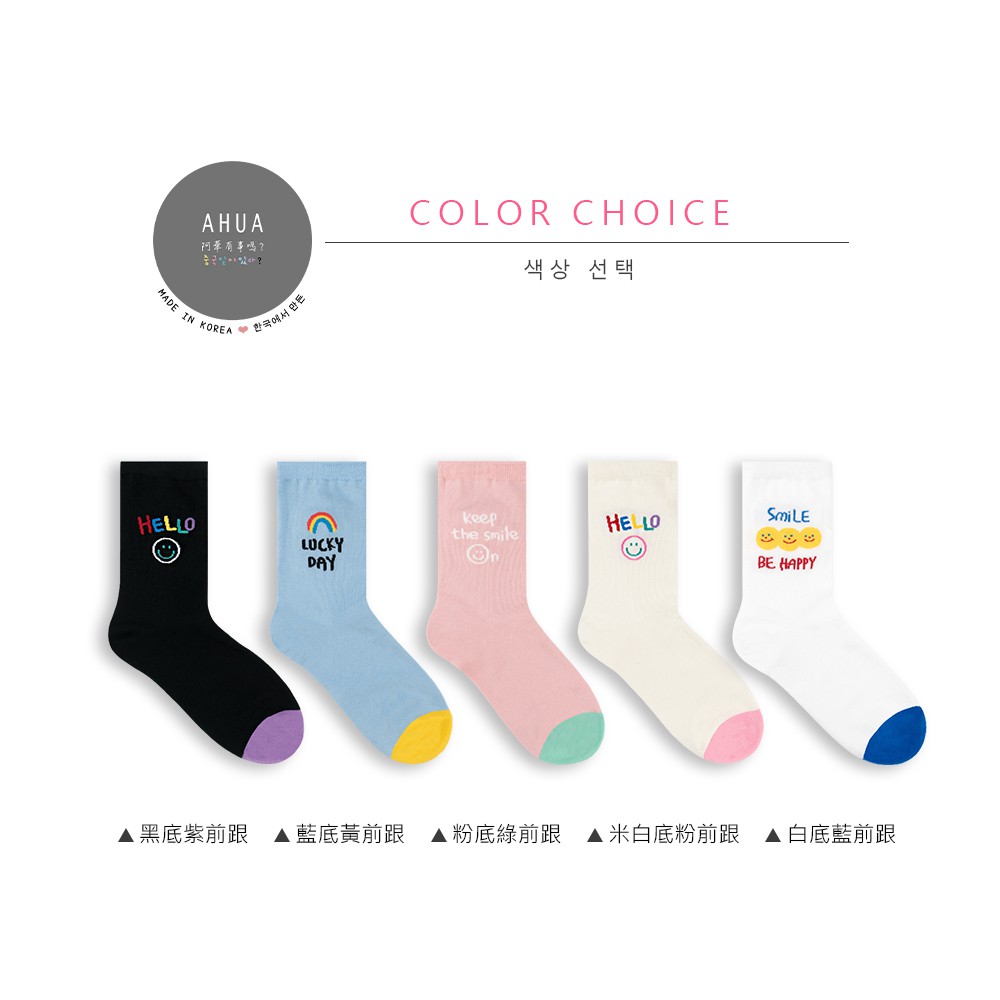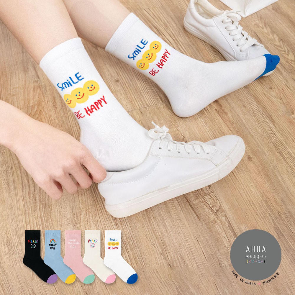 阿華有事嗎AUHA 韓國襪子 彩色微笑英文中筒襪 K1049 少女襪 韓妞必備長襪 百搭純棉襪