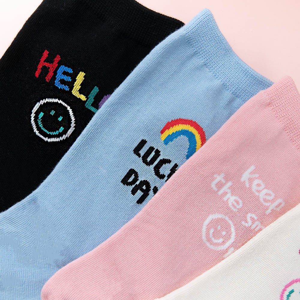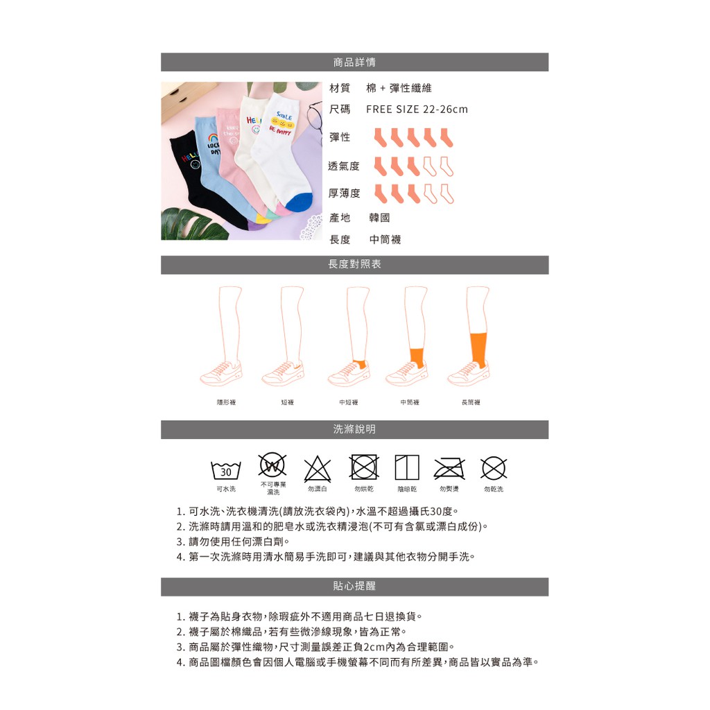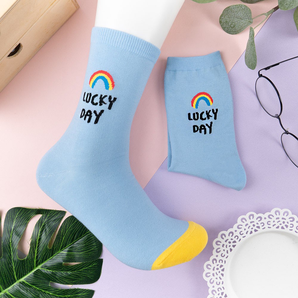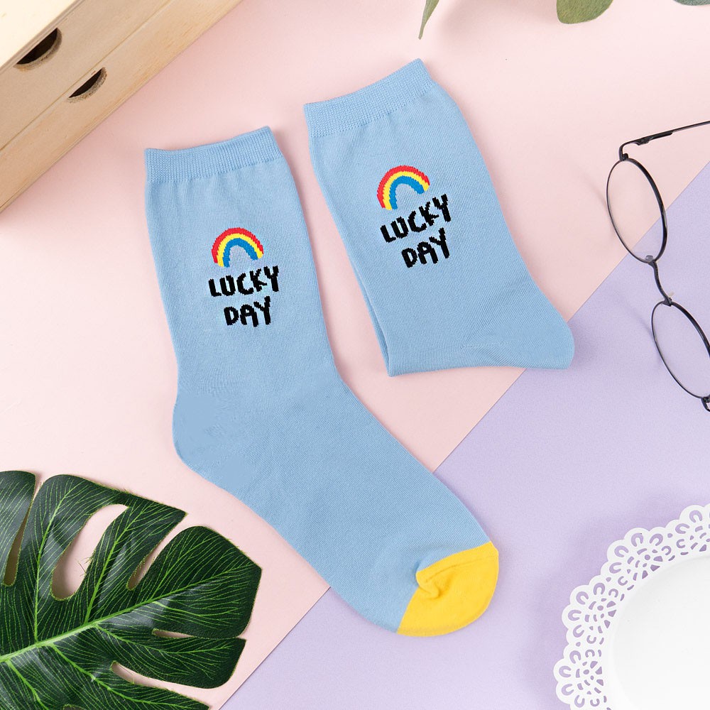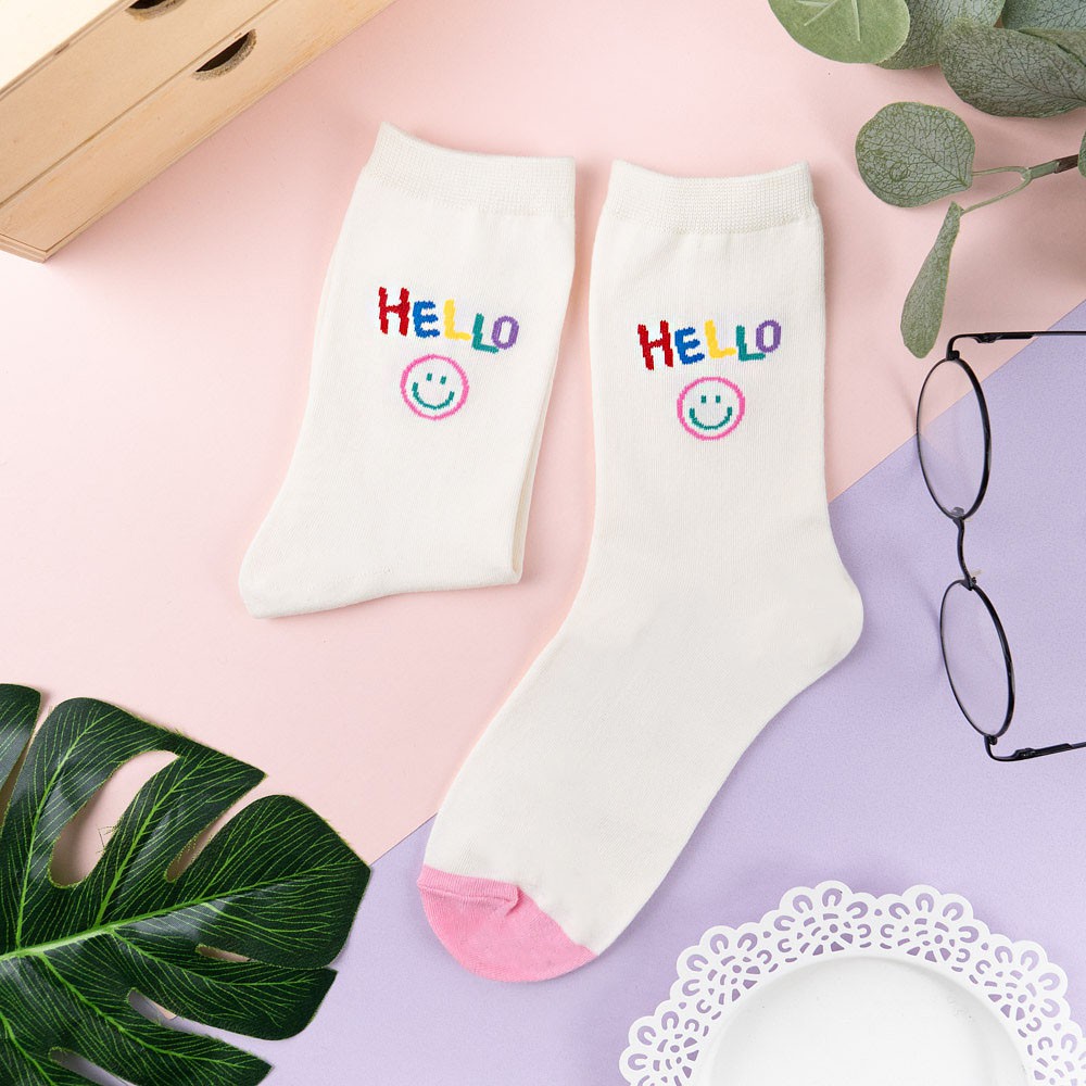 阿華有事嗎AUHA 韓國襪子 彩色微笑英文中筒襪 K1049 少女襪 韓妞必備長襪 百搭純棉襪