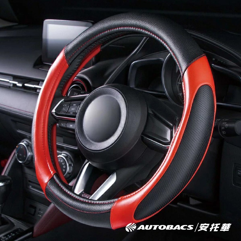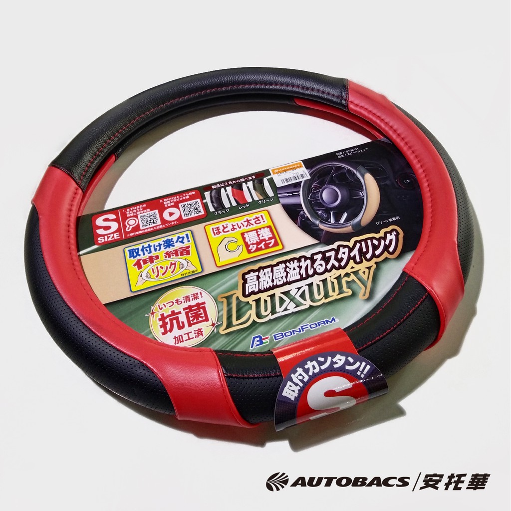 BONFORM 抗菌除臭方向盤套 拼接黑紅色 S號 45752