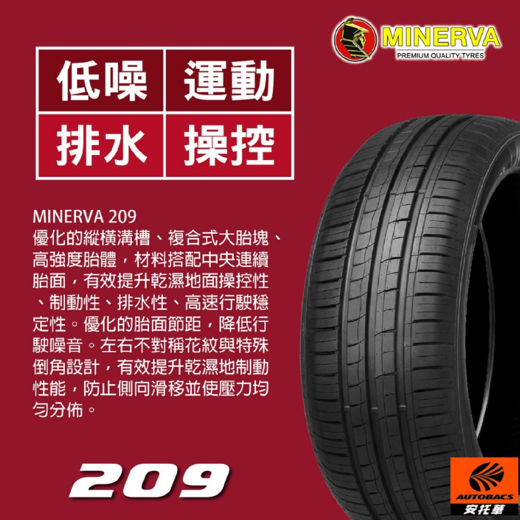 MINERVA 米納瓦輪胎 F209 - 195/50/16 低噪/排水/運動/操控/轎車胎
